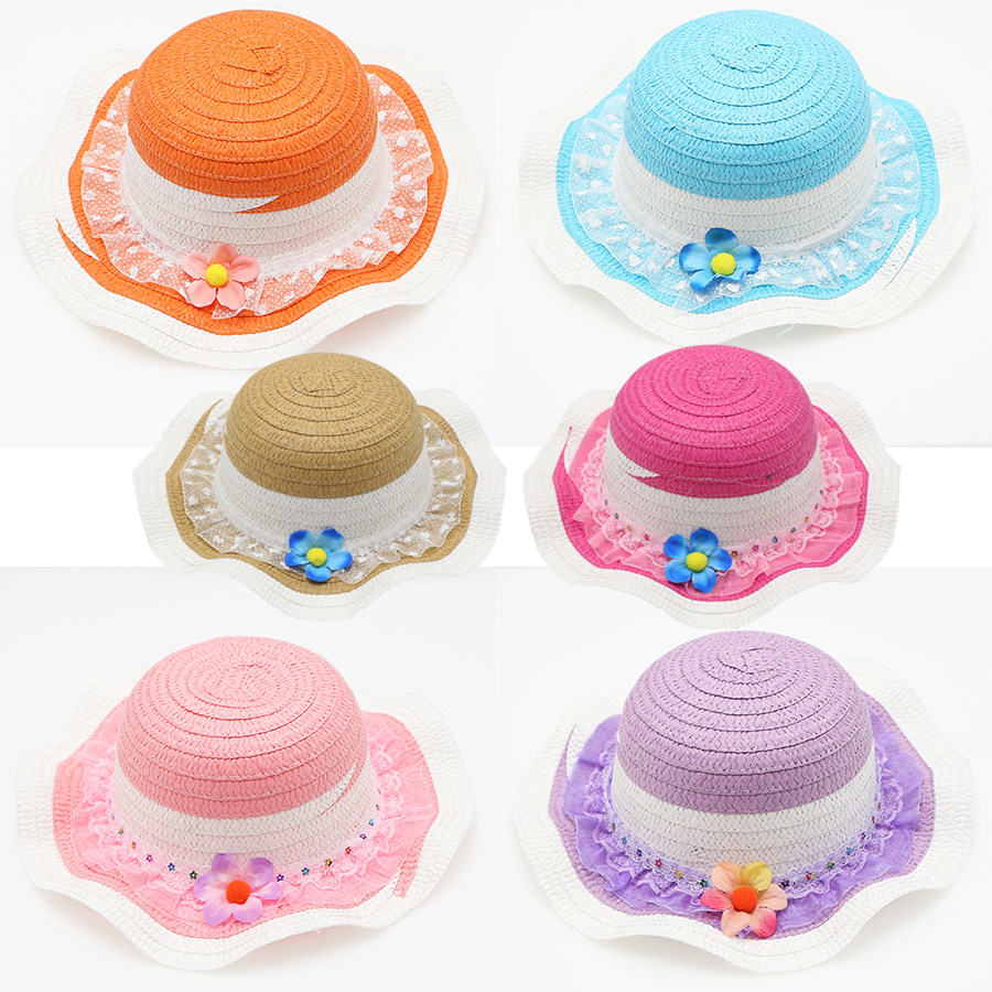 儿童草帽女宝宝公主出游户外遮阳帽沙滩帽幼儿夏季防晒太阳帽折叠