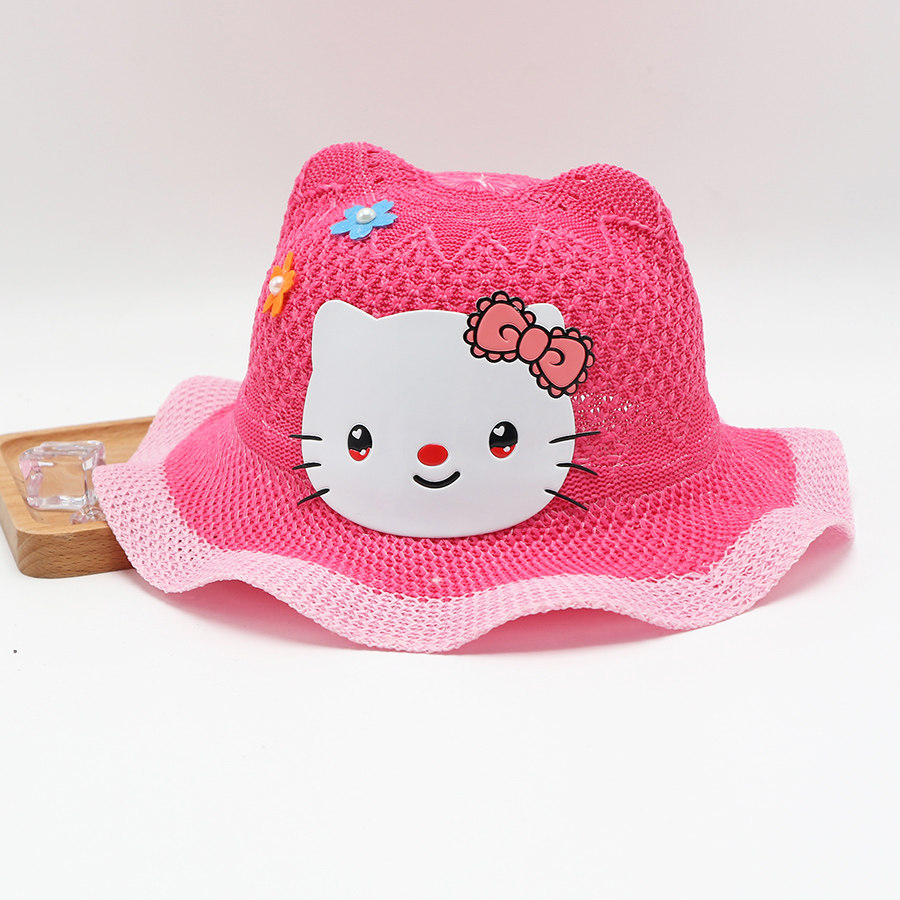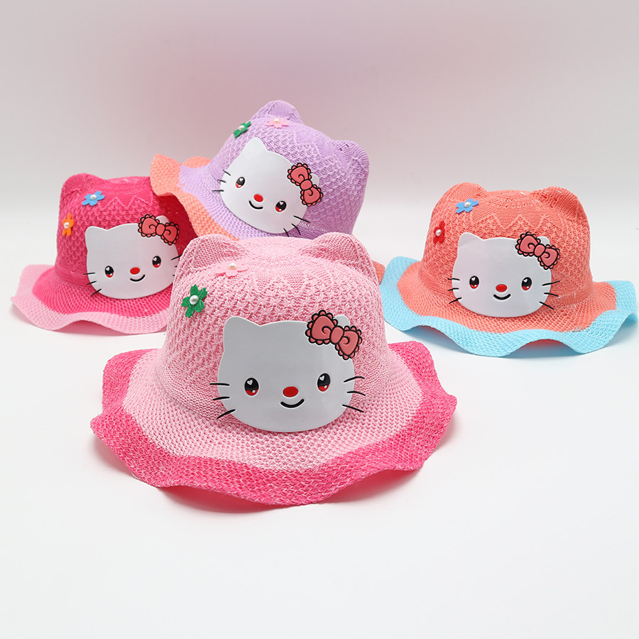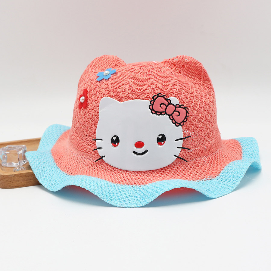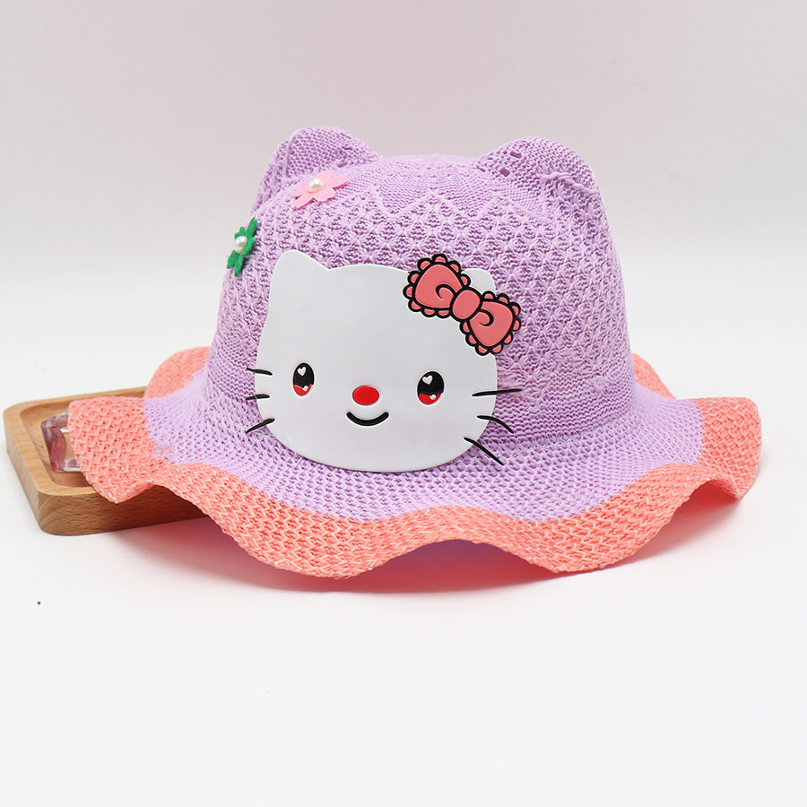 儿童草帽女童可爱猫咪宝宝户外遮阳防晒出游小孩宝宝凉帽渔夫帽