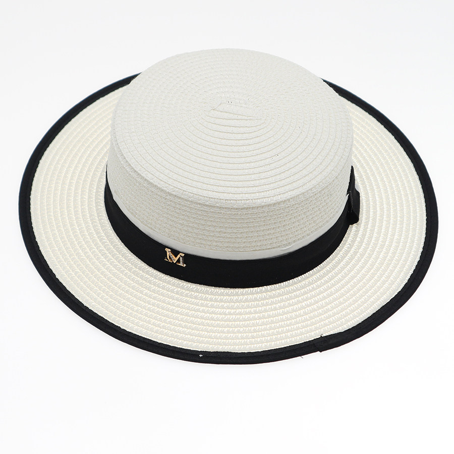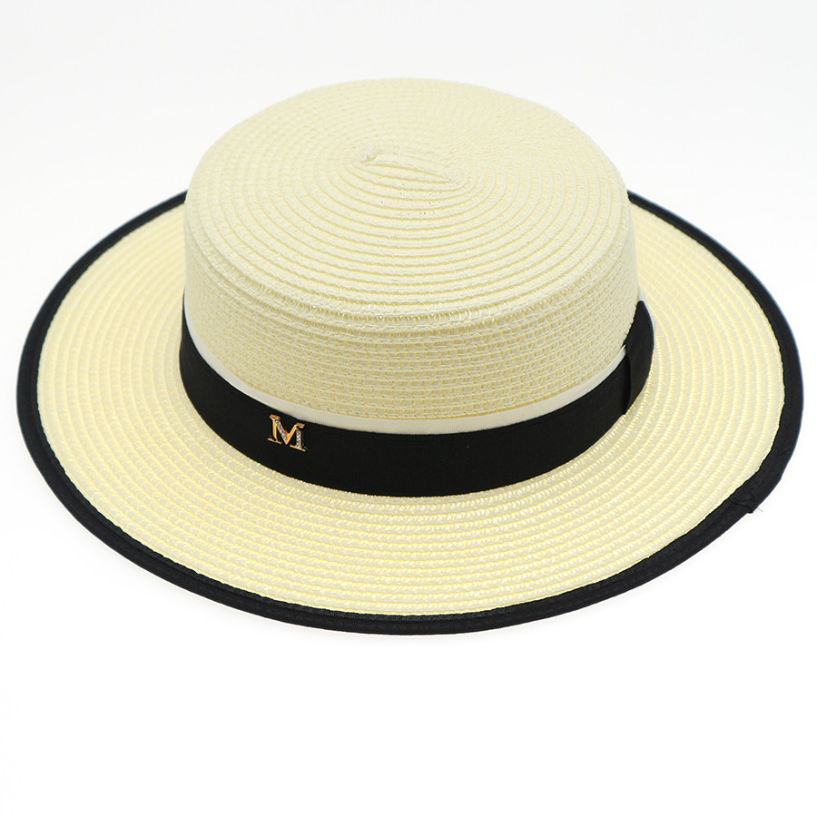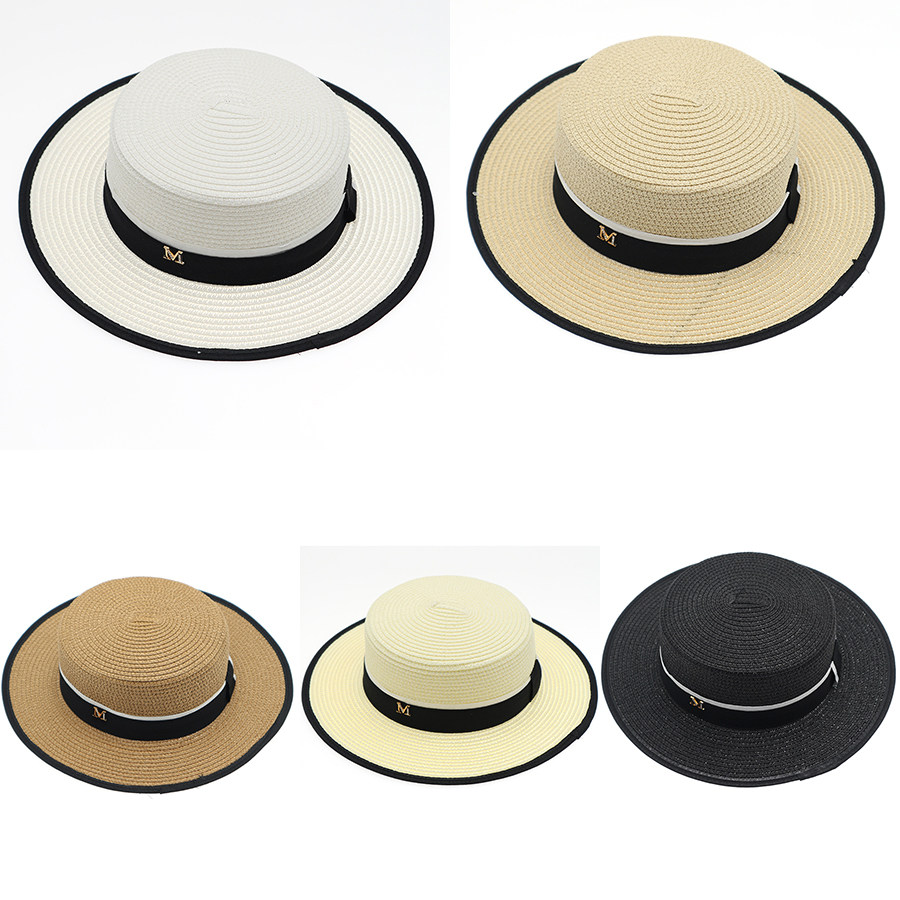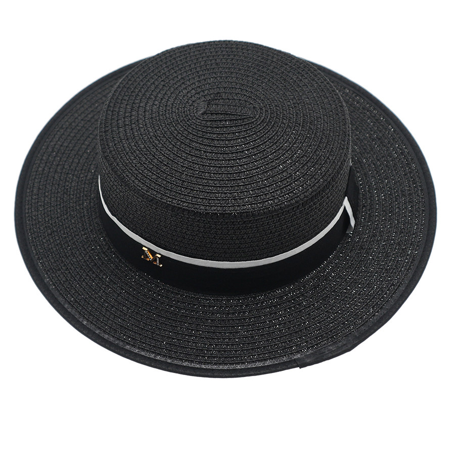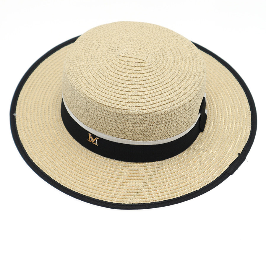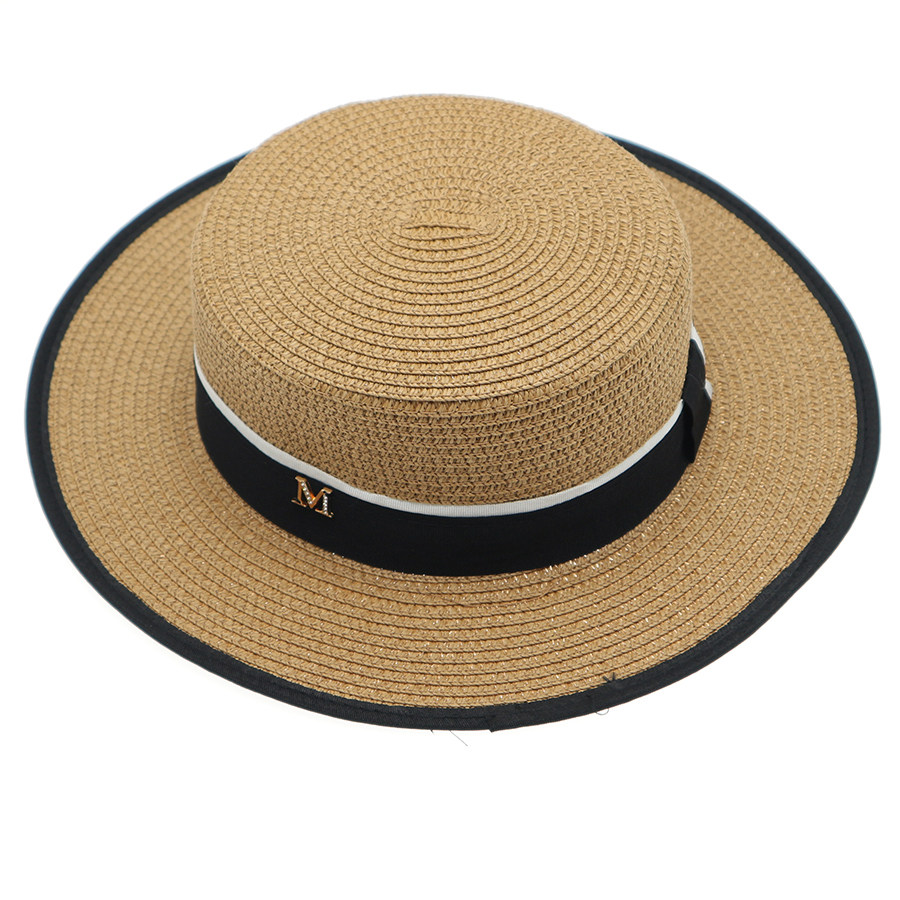 新款平顶草帽女帽子夏天凉帽平沿礼帽M标户外帽子遮阳防晒太阳帽