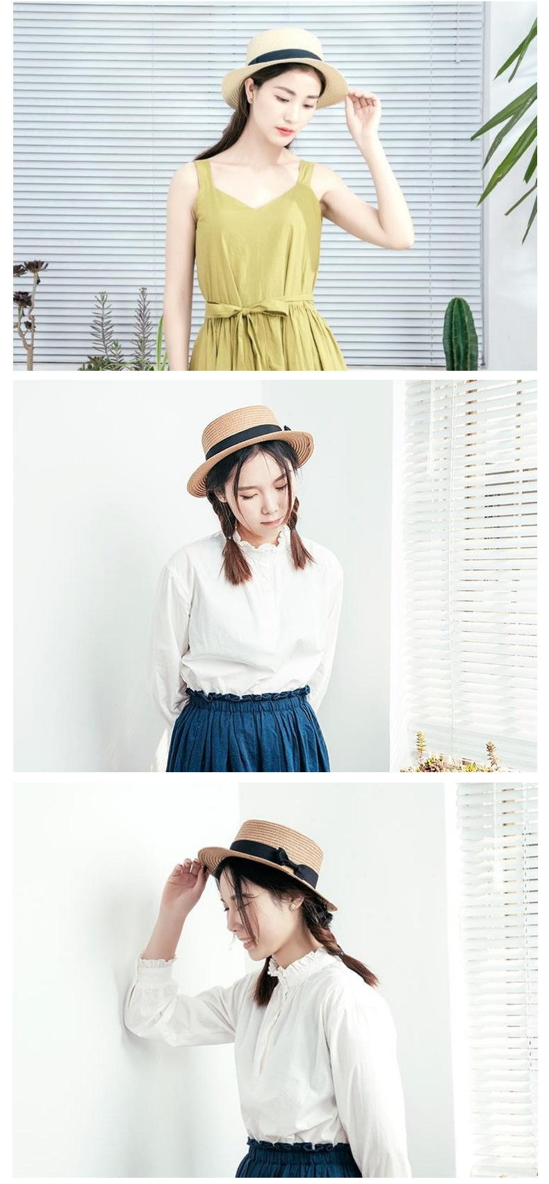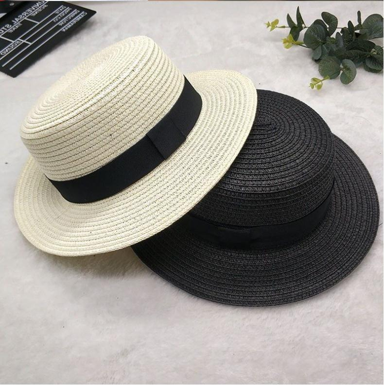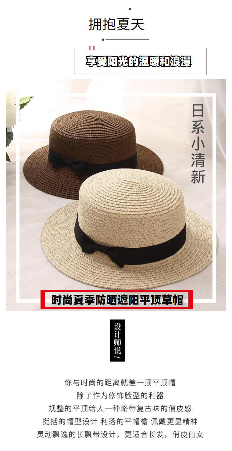 韩版时尚春夏新款百搭编织平顶帽防晒帽跨境外贸平台专供沙滩草帽