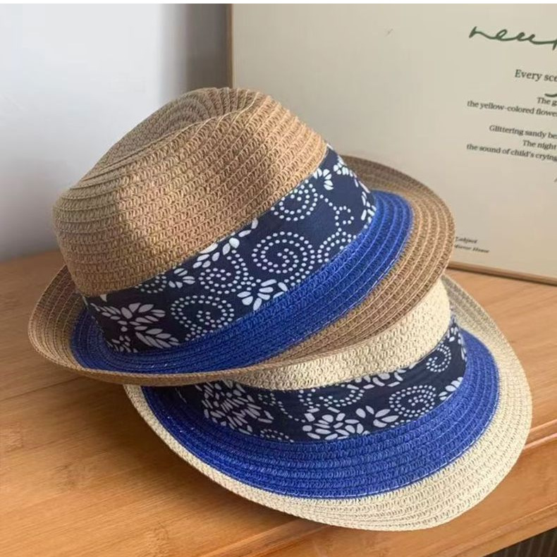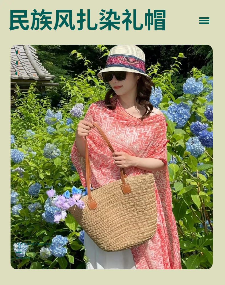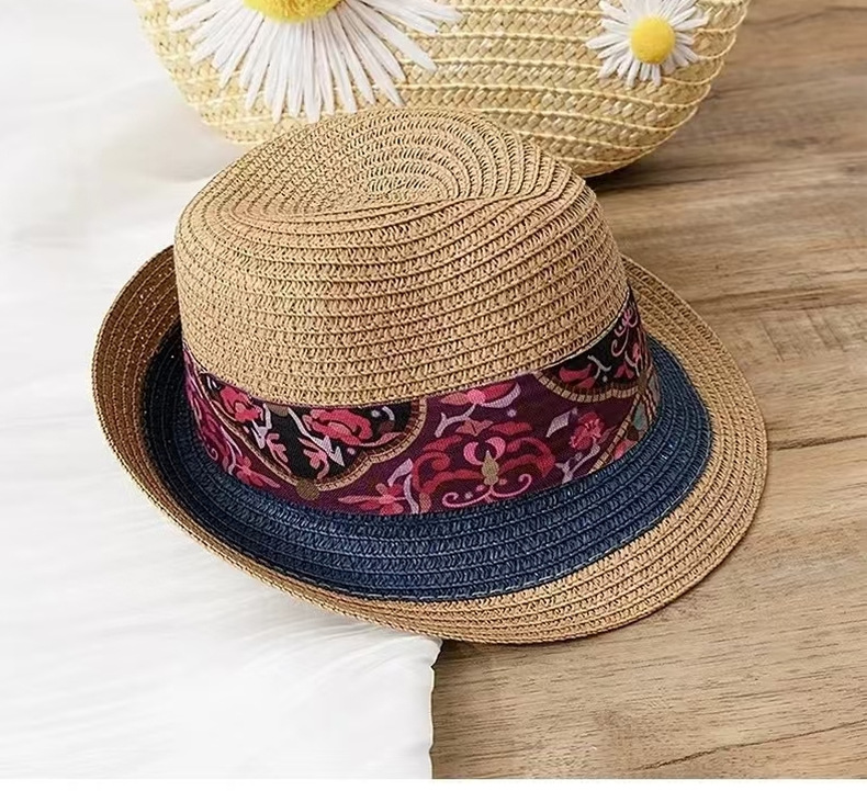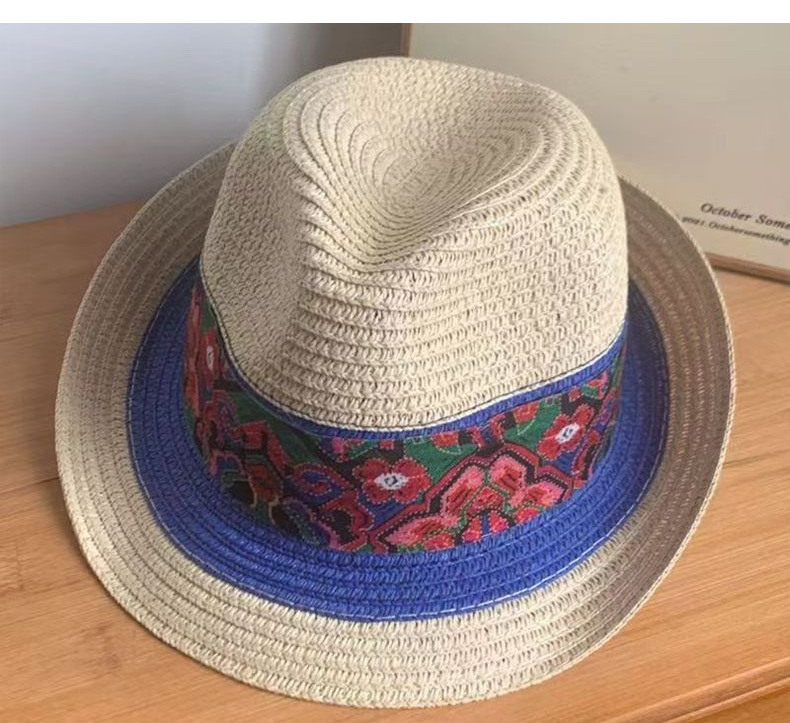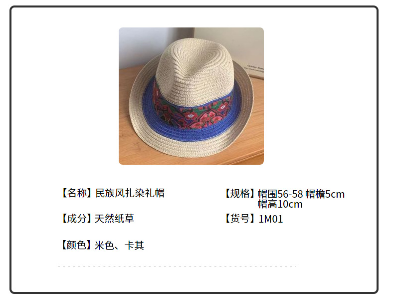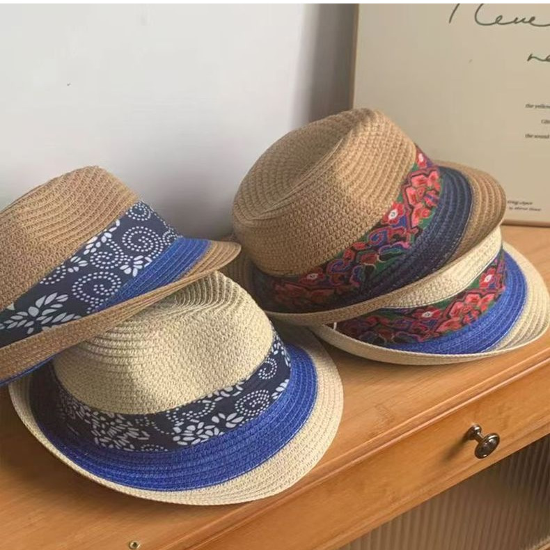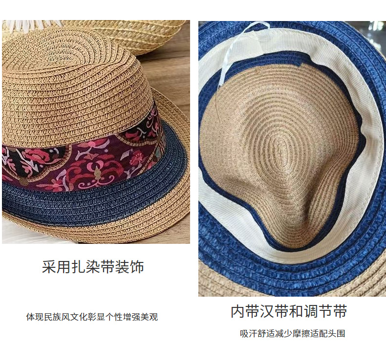 宫佩2024新款民族风草帽云南扎染布礼帽春夏季旅游遮阳帽时尚帽子