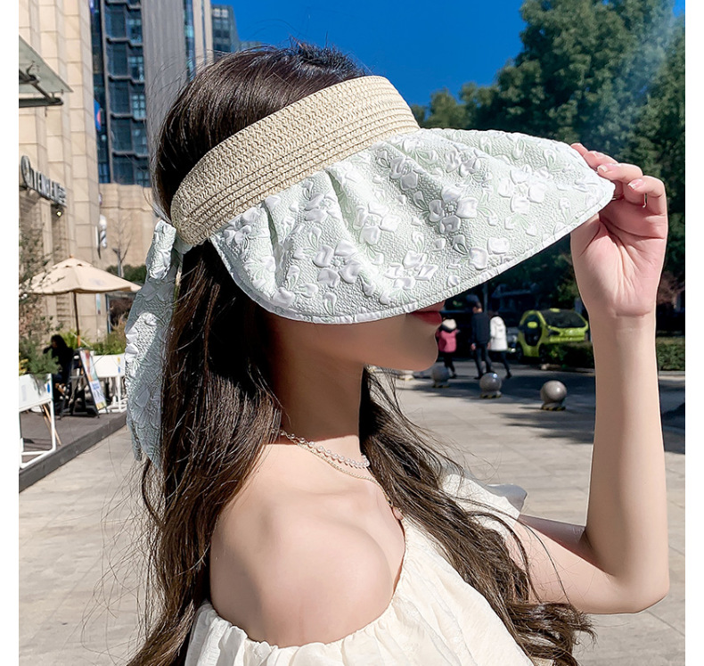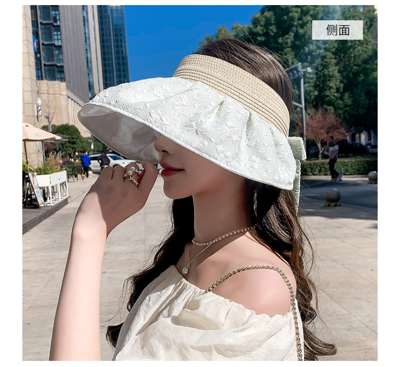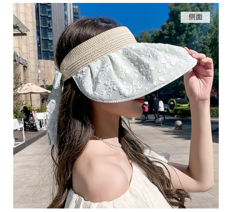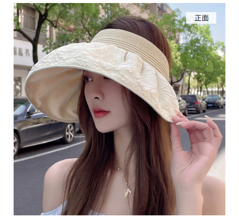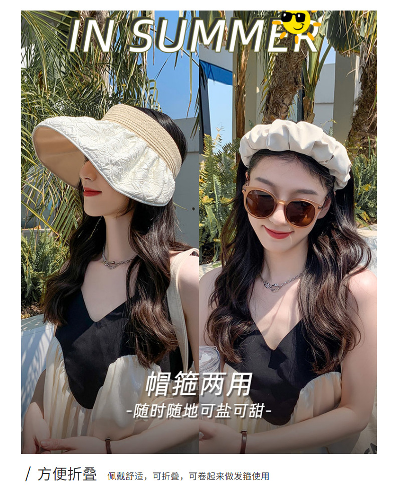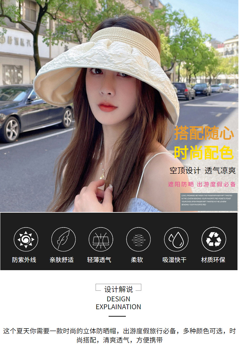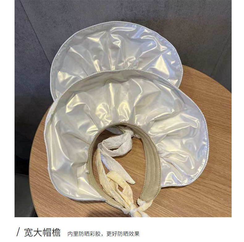 2023新款夏季女防紫外线大沿空顶草帽户外度假黑胶镂空遮阳贝壳帽