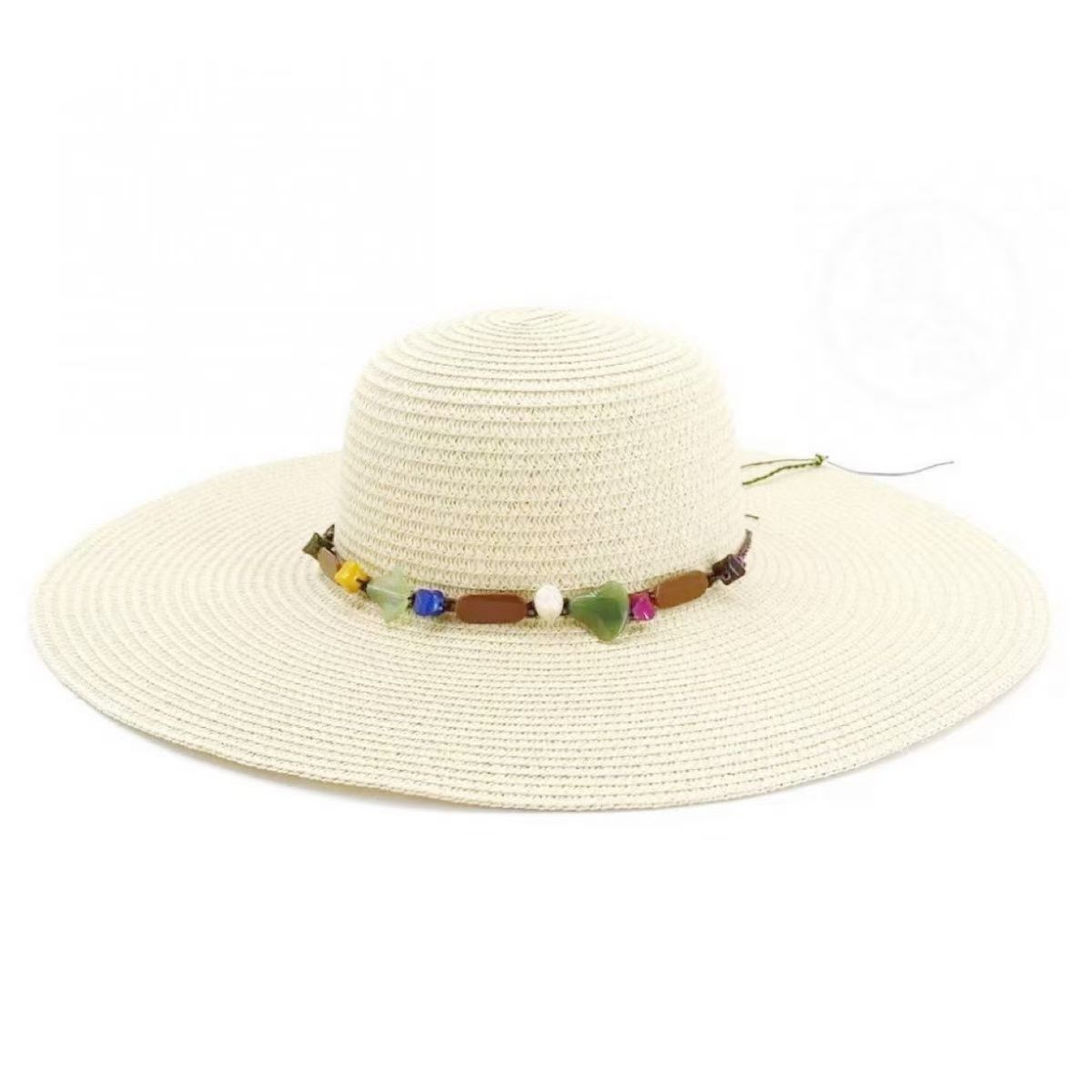 帽子女夏季防晒沙滩草帽女韩版百搭夏天女士时尚大檐彩石遮阳帽08
