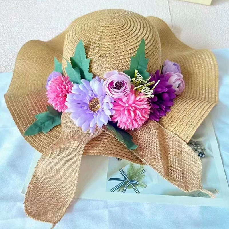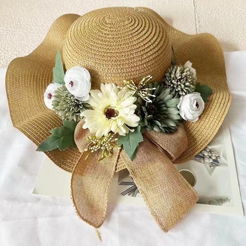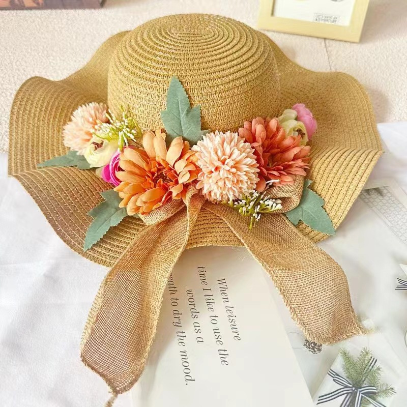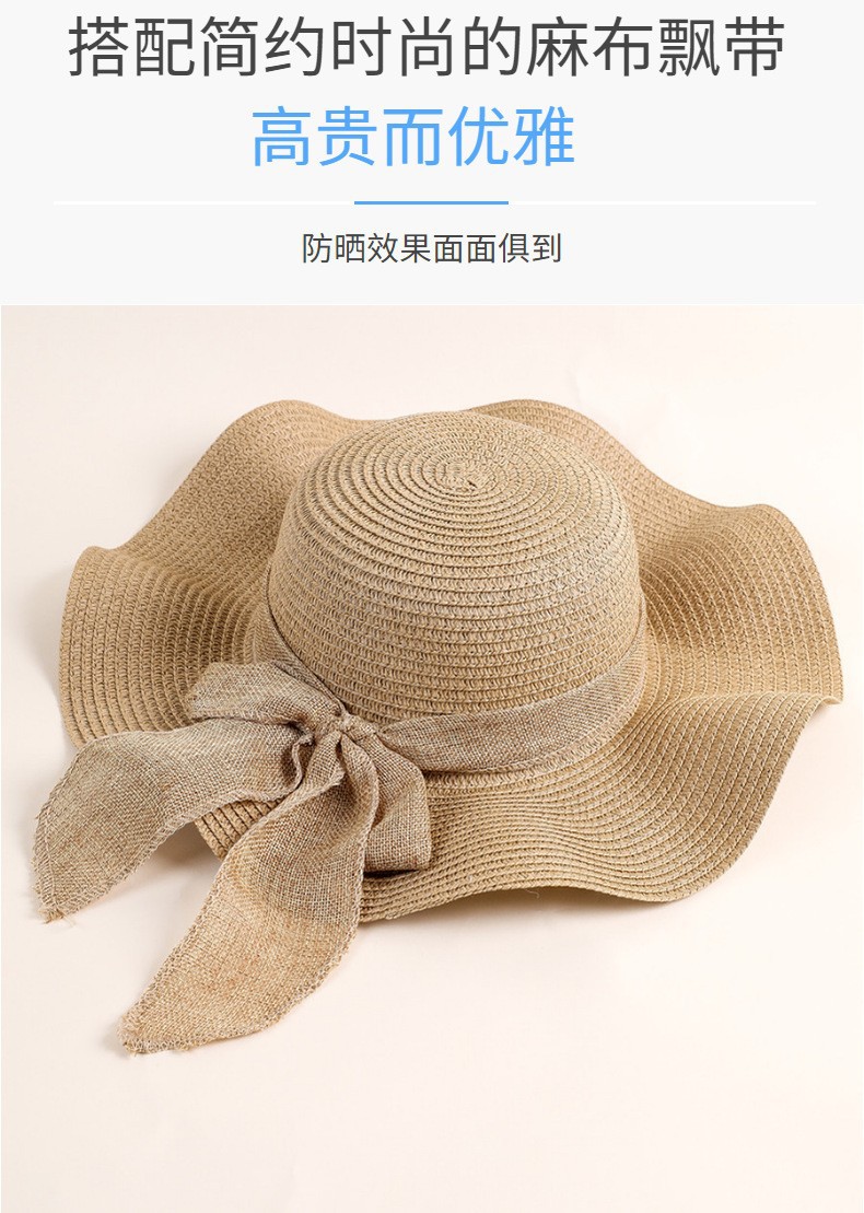 备货旅游草帽女夏季防晒沙滩大沿帽新款出游遮阳波浪帽夏凉太阳帽