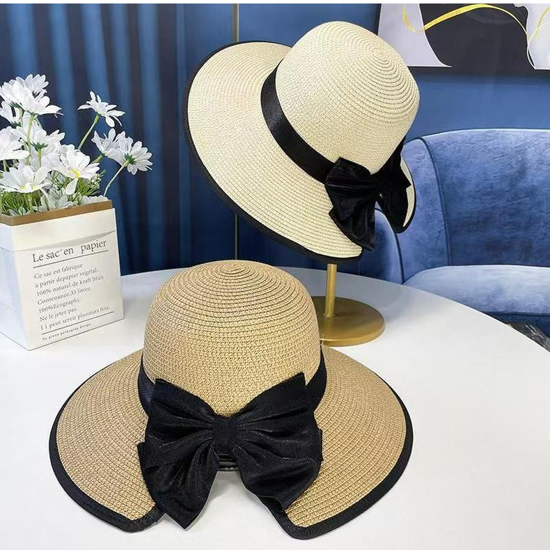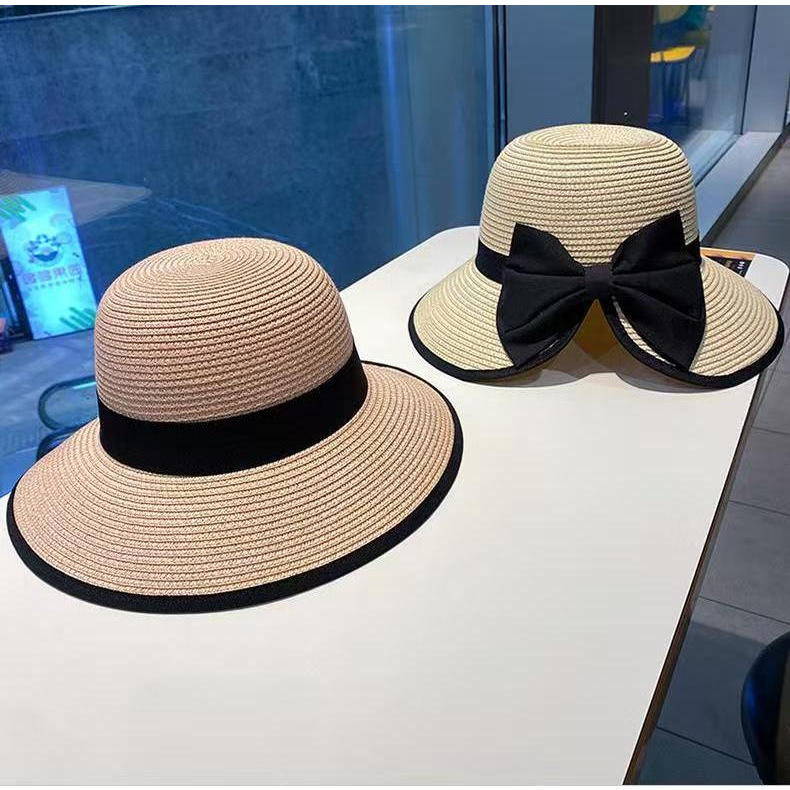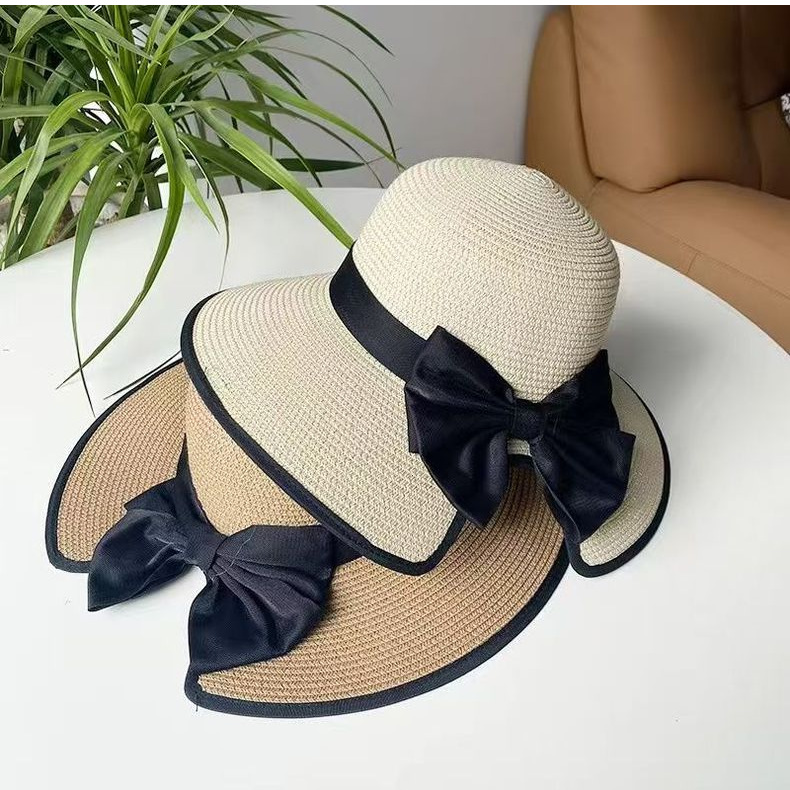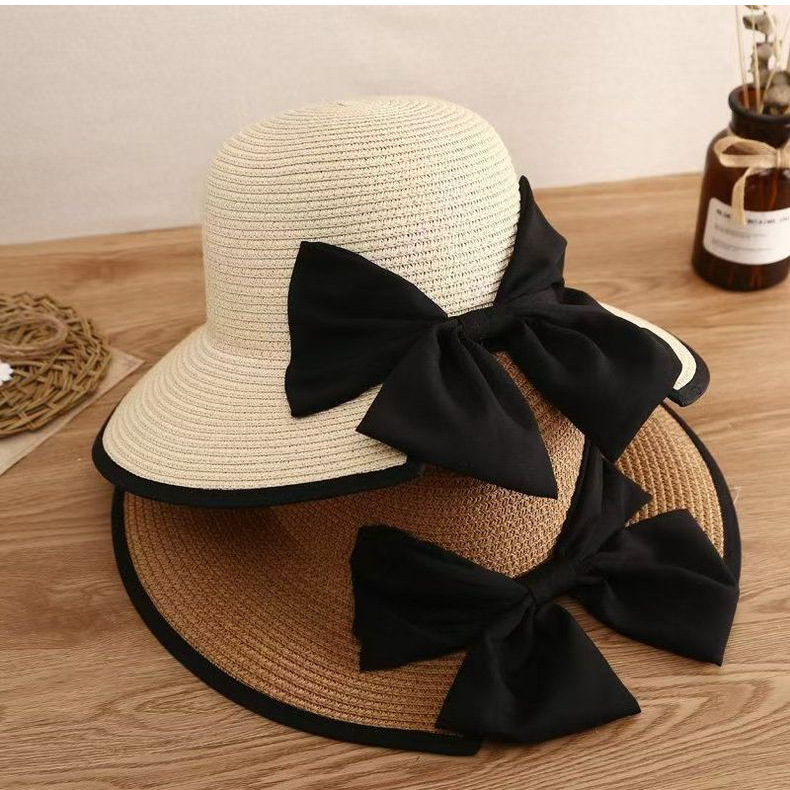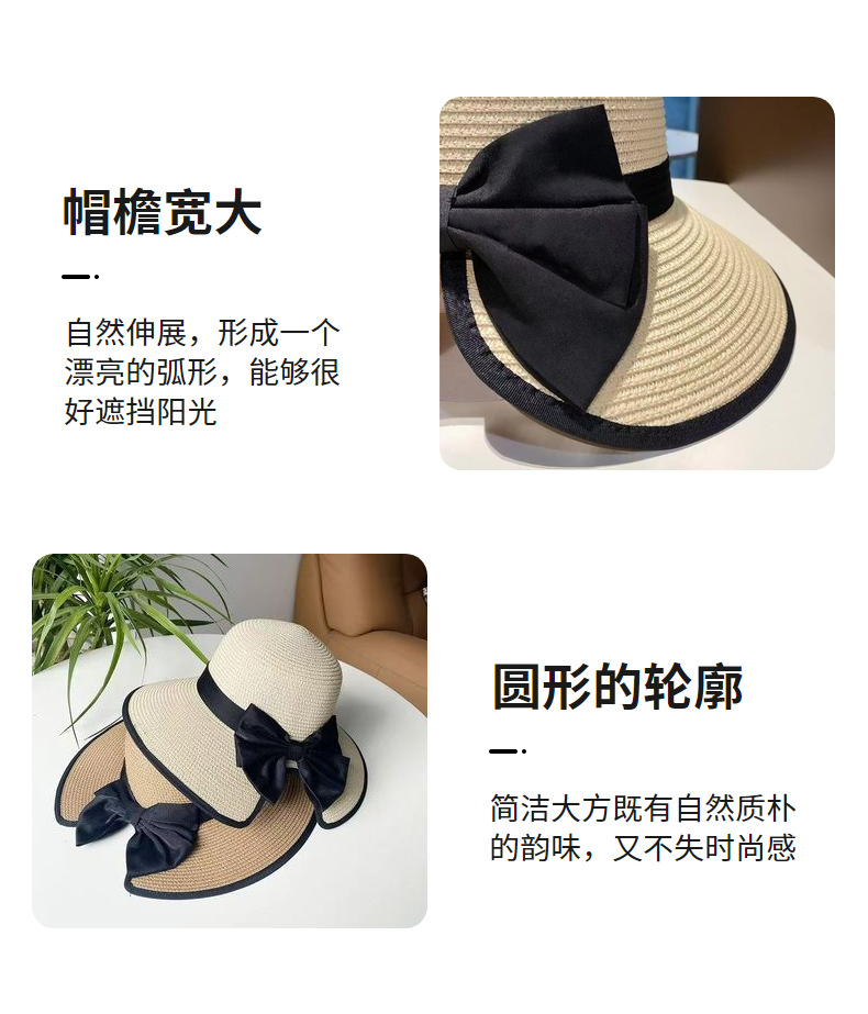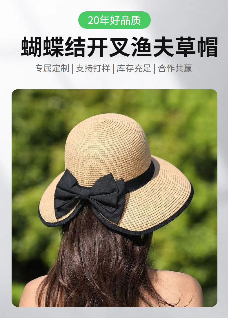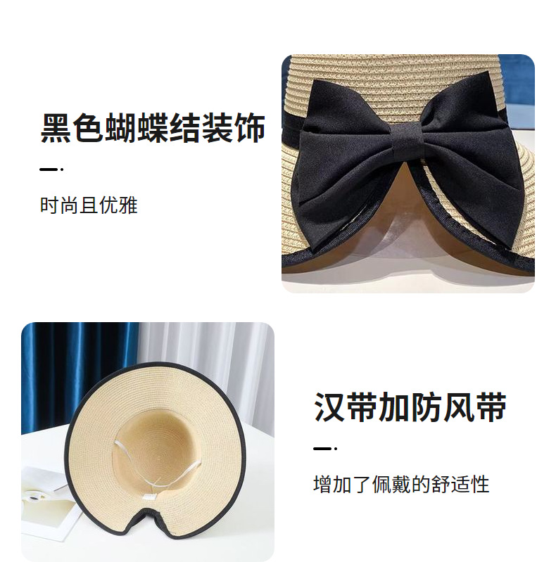 明星同款草帽女蝴蝶结开叉渔夫帽遮阳防晒帽休闲百搭沙滩太阳帽