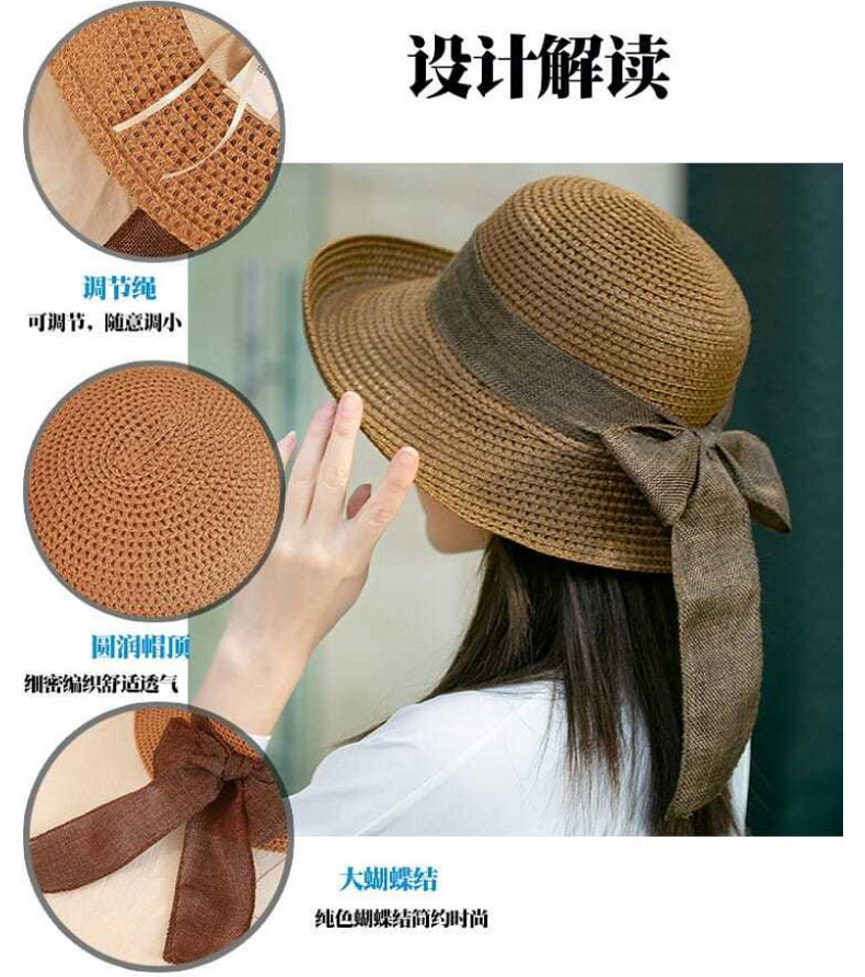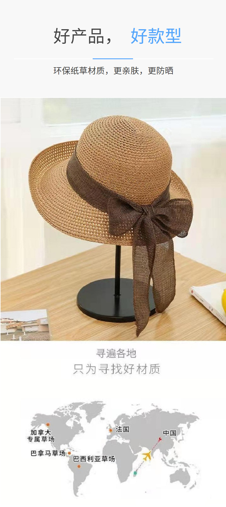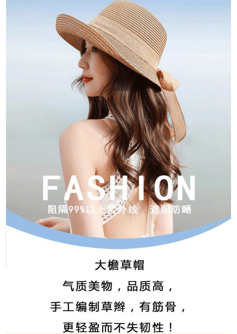 际初夏季防晒帽子女麻布蝴蝶结渔夫帽度假出游沙滩帽遮阳经典大沿