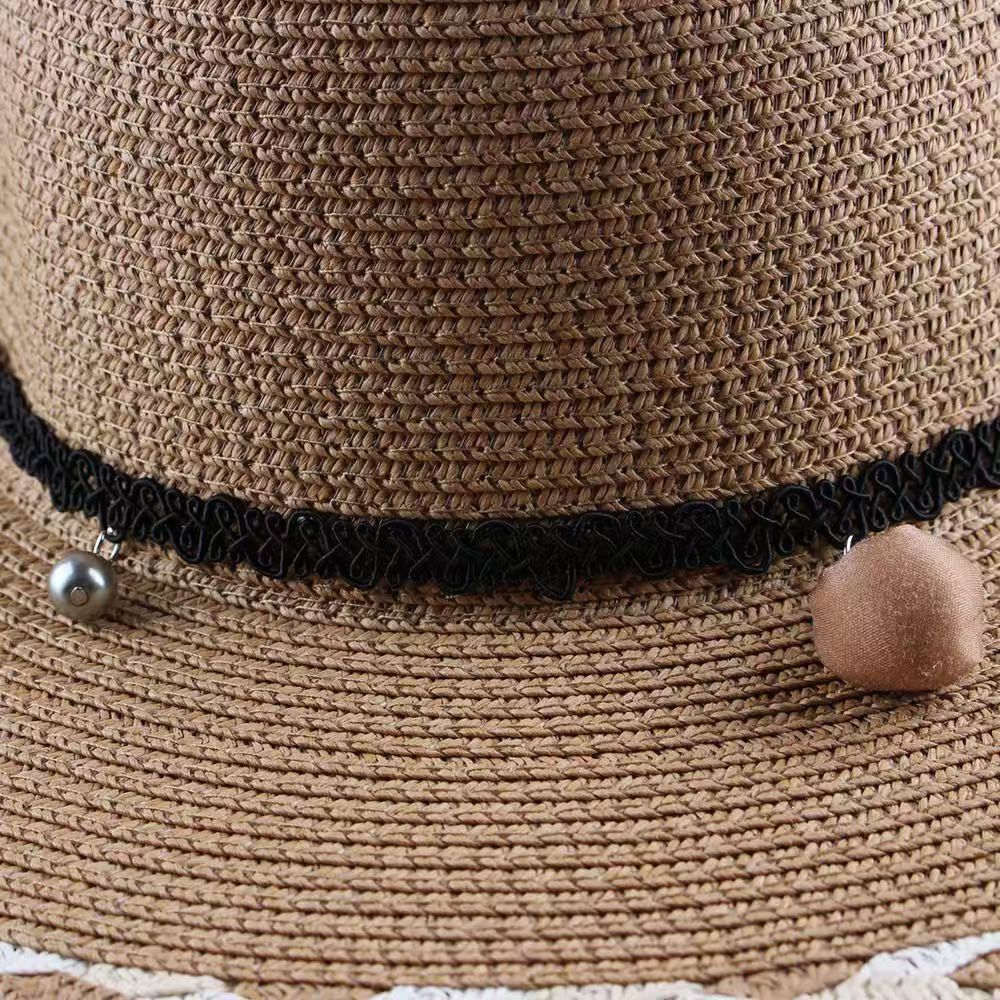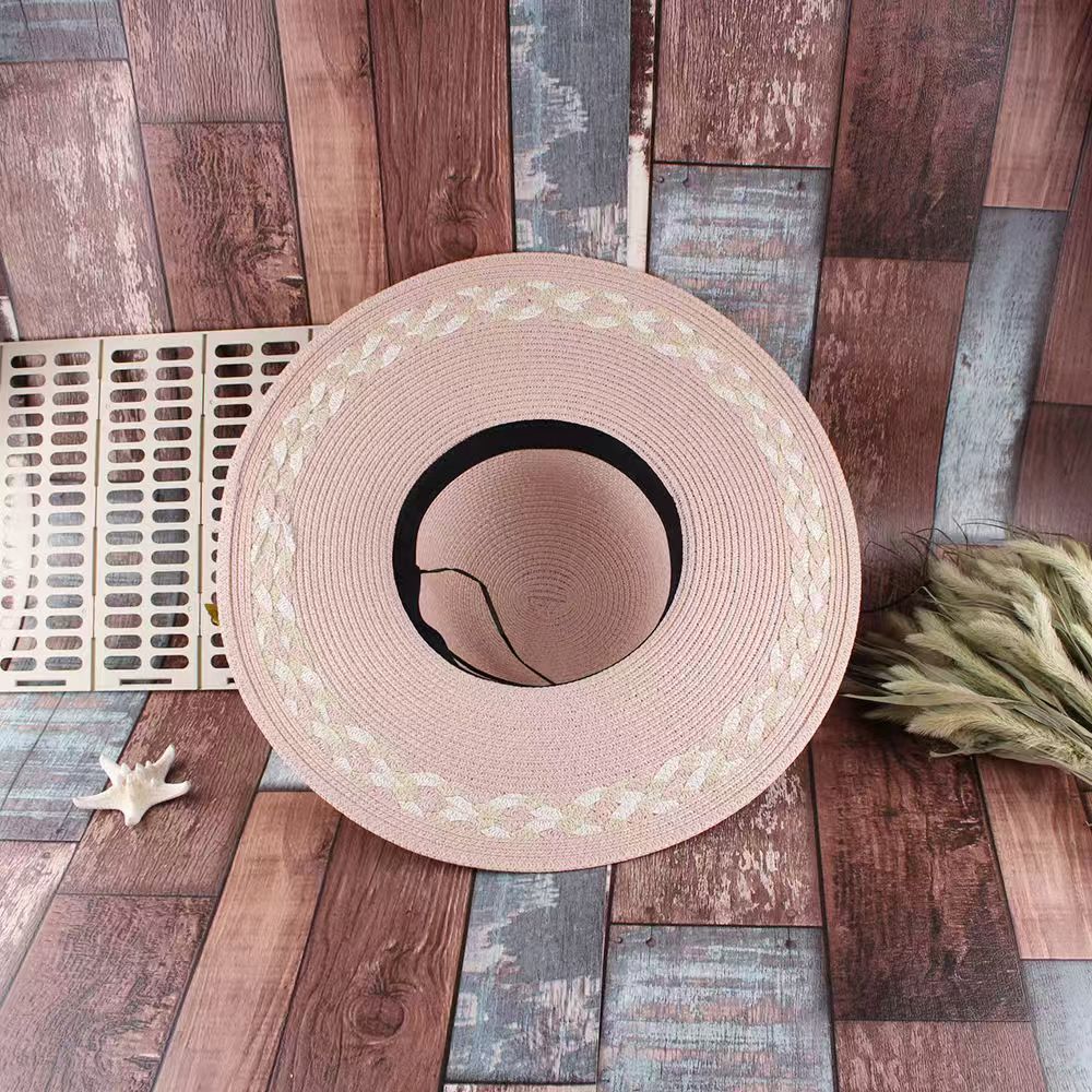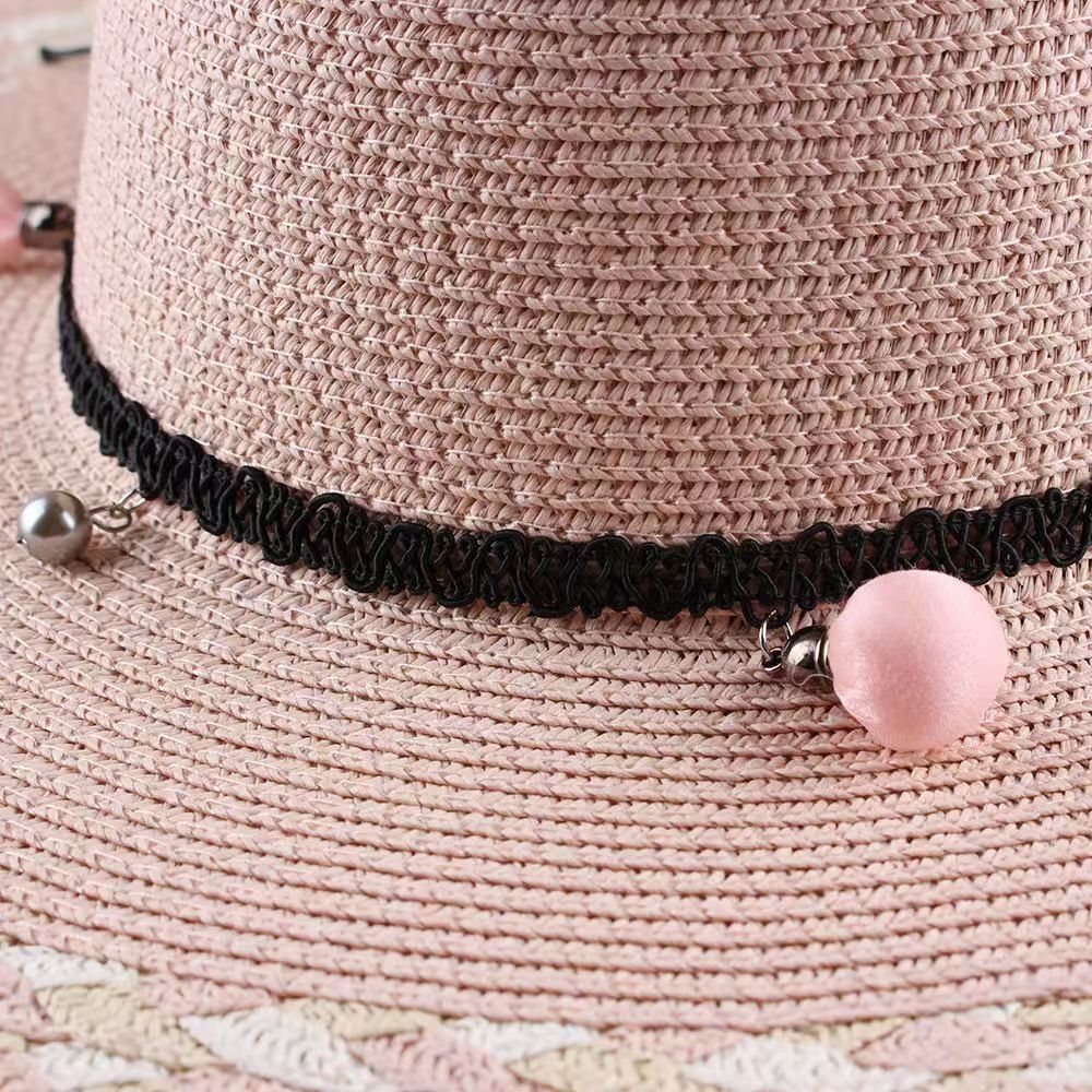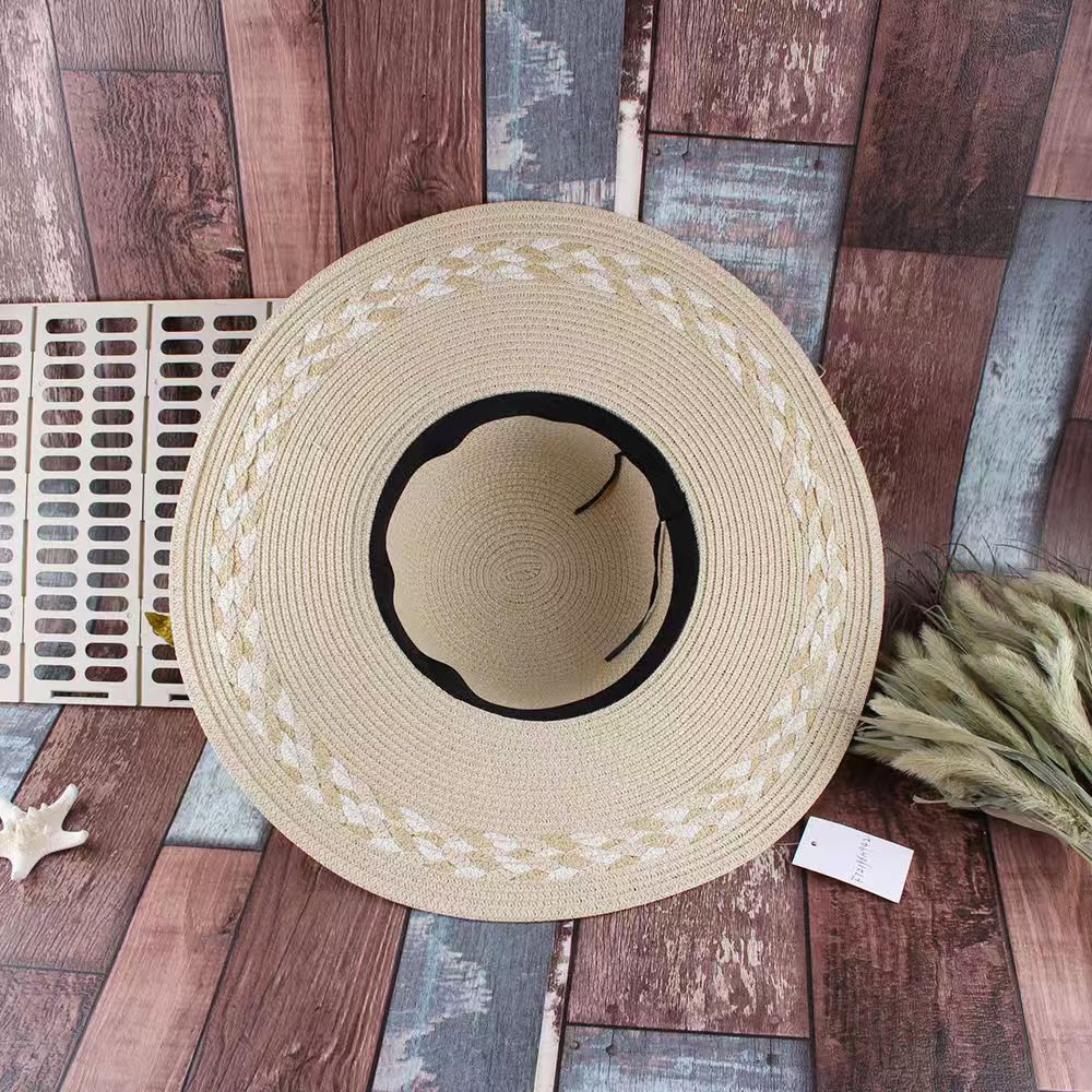 草帽女韩版小清新花辫帽子遮阳帽防晒可调节大沿海边太阳帽沙滩帽