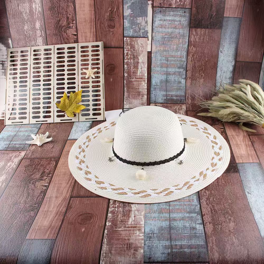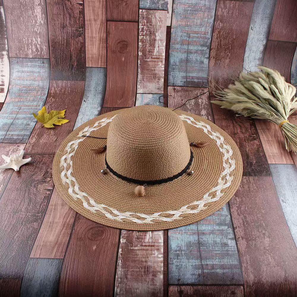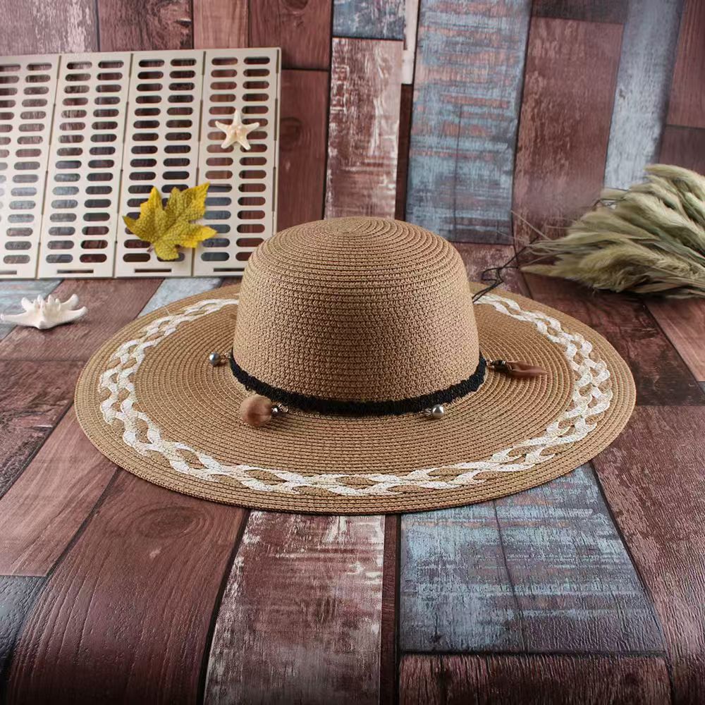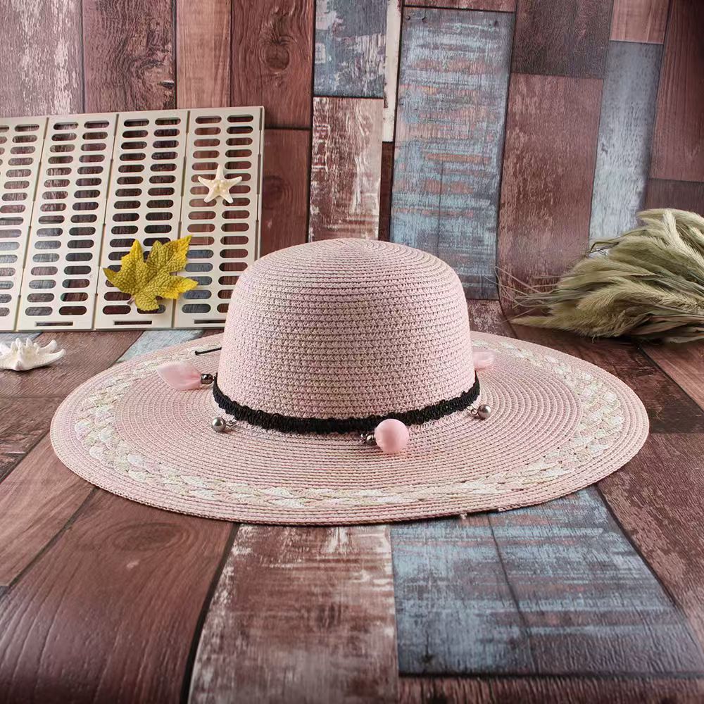 草帽女韩版小清新花辫帽子遮阳帽防晒可调节大沿海边太阳帽沙滩帽