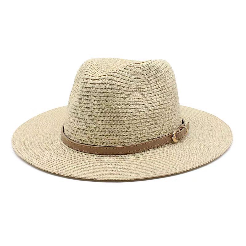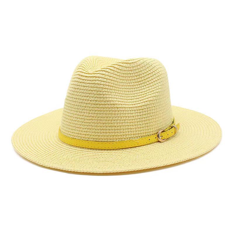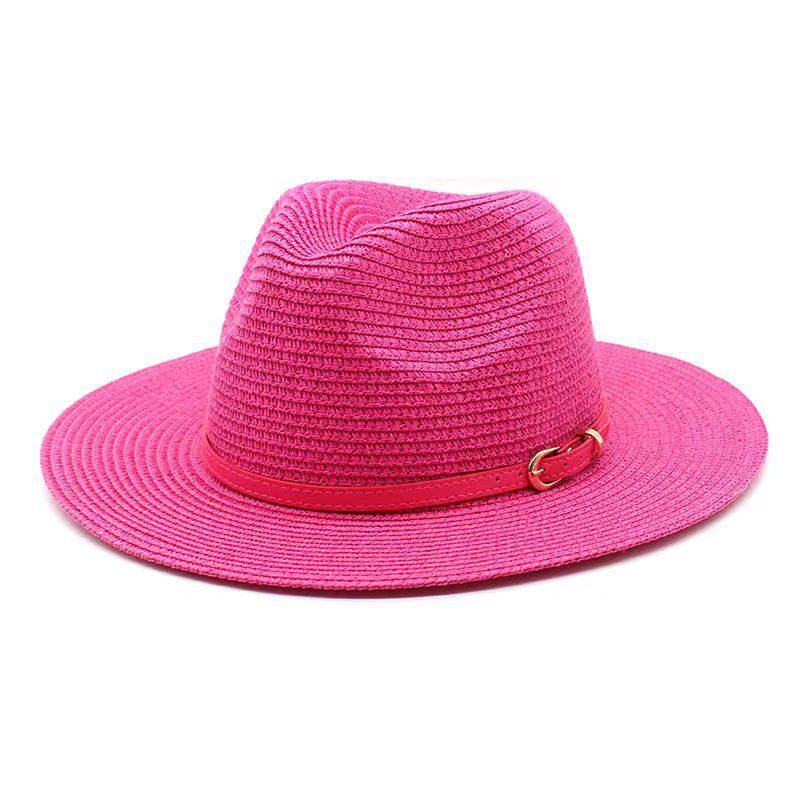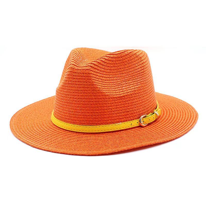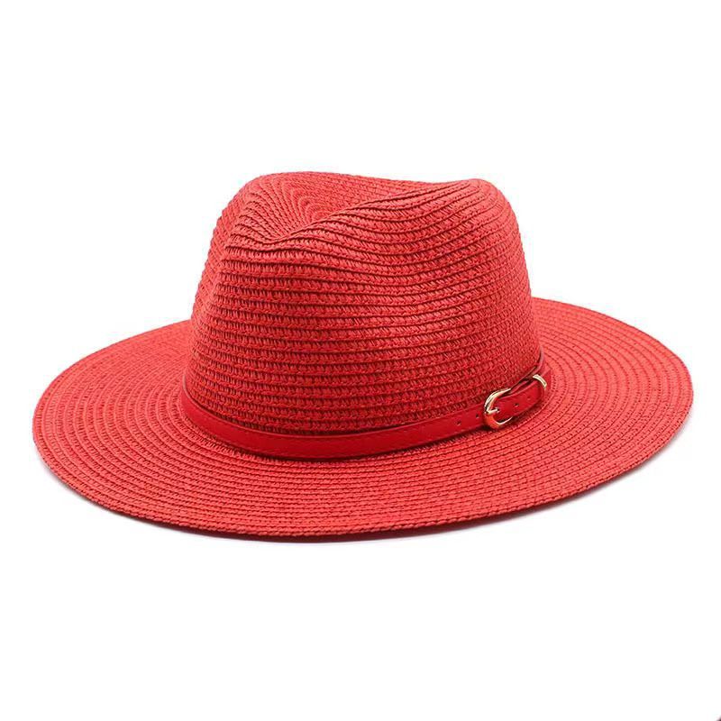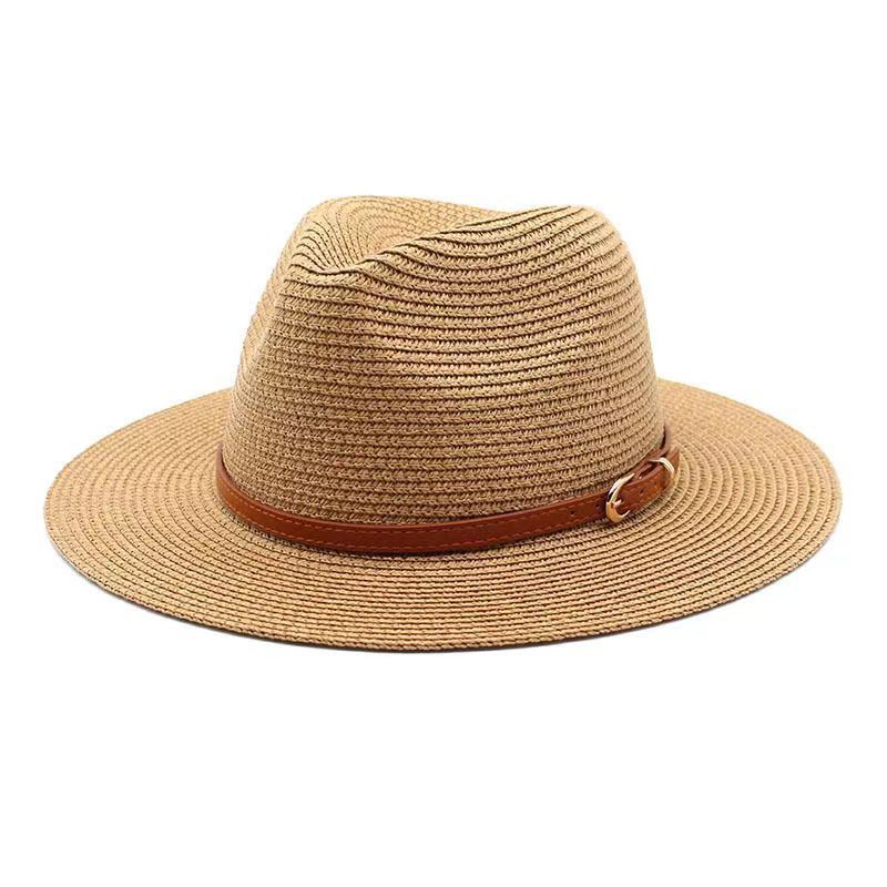 亚马逊欧美草帽女爵士礼帽春夏季草编时尚太阳防晒遮阳帽外贸