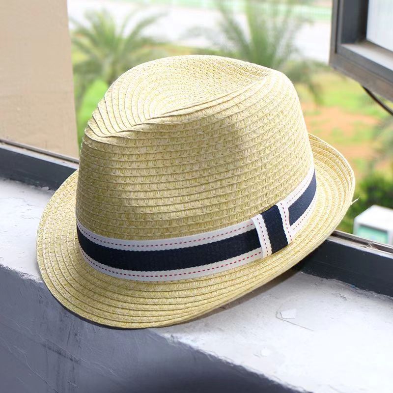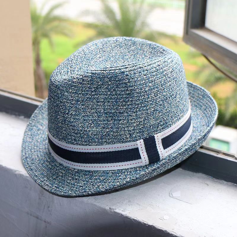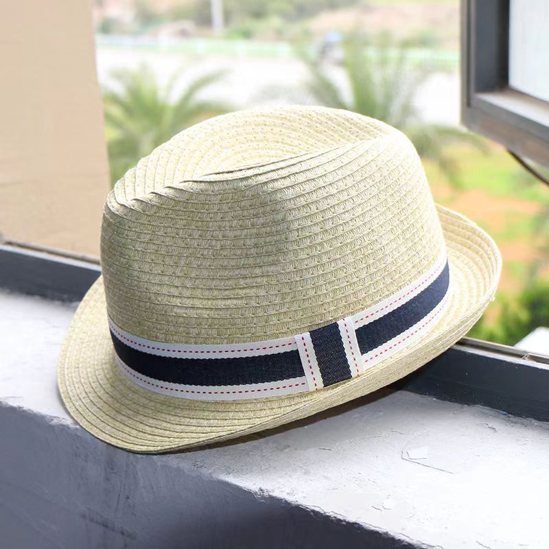 草帽女翻檐小礼帽遮阳帽男可调节出游逛街沙滩帽情侣爵士帽批发