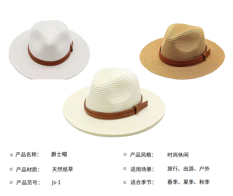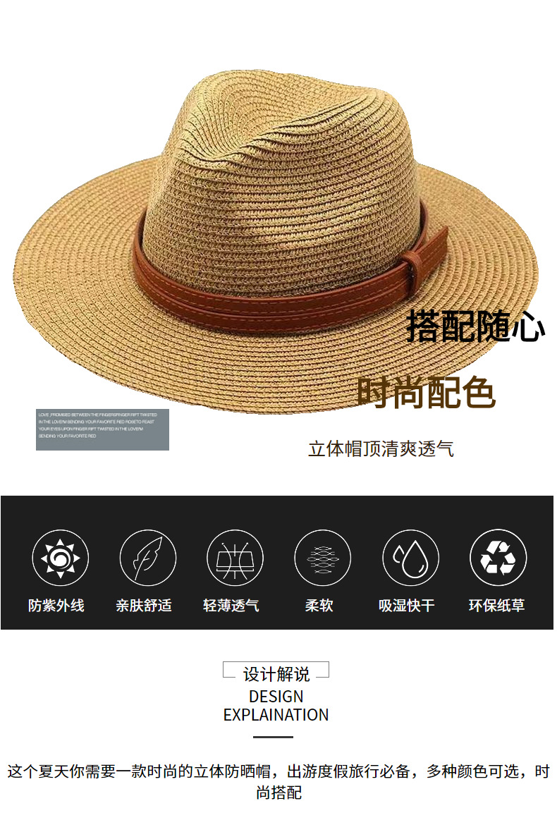 外贸款时尚夏季防晒草帽男女通用礼帽巴拿马帽子出口跨境专供