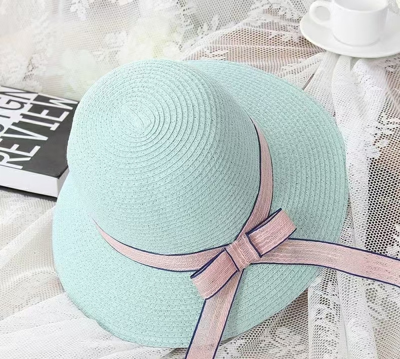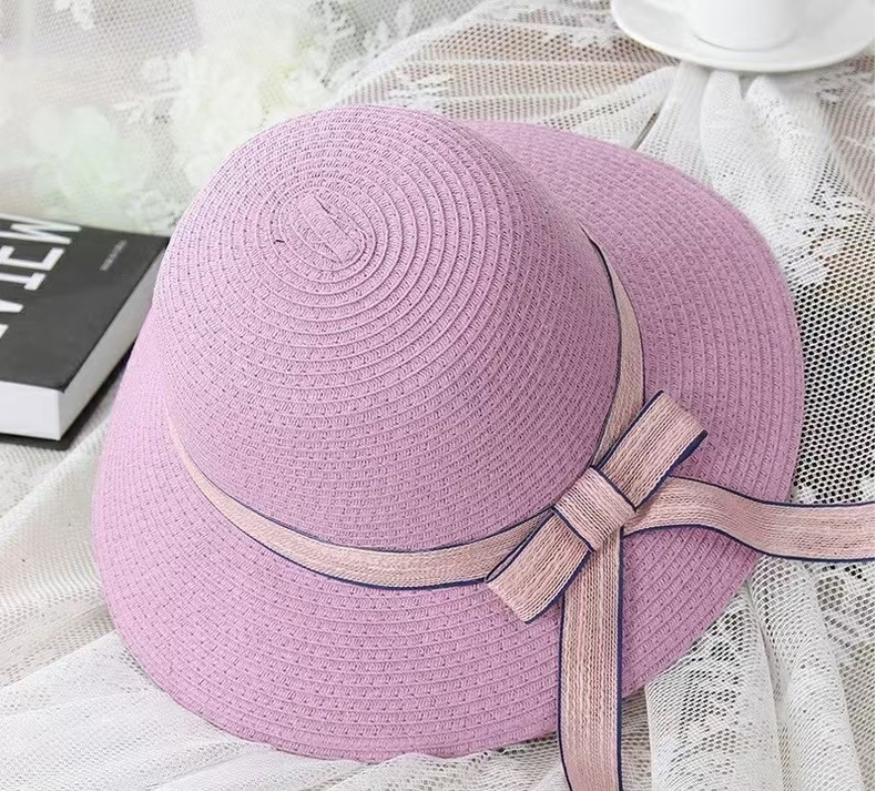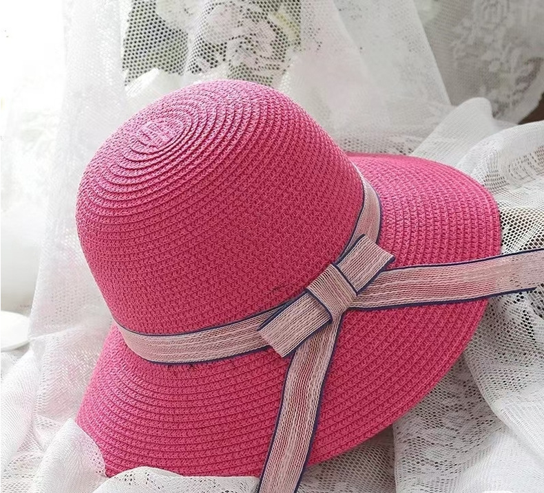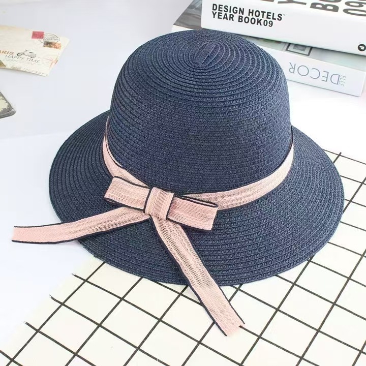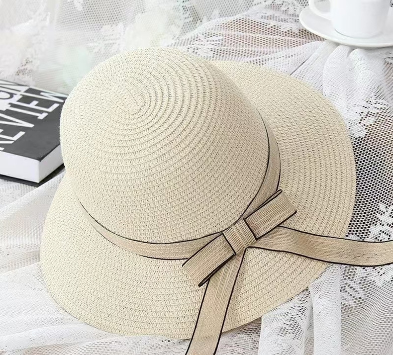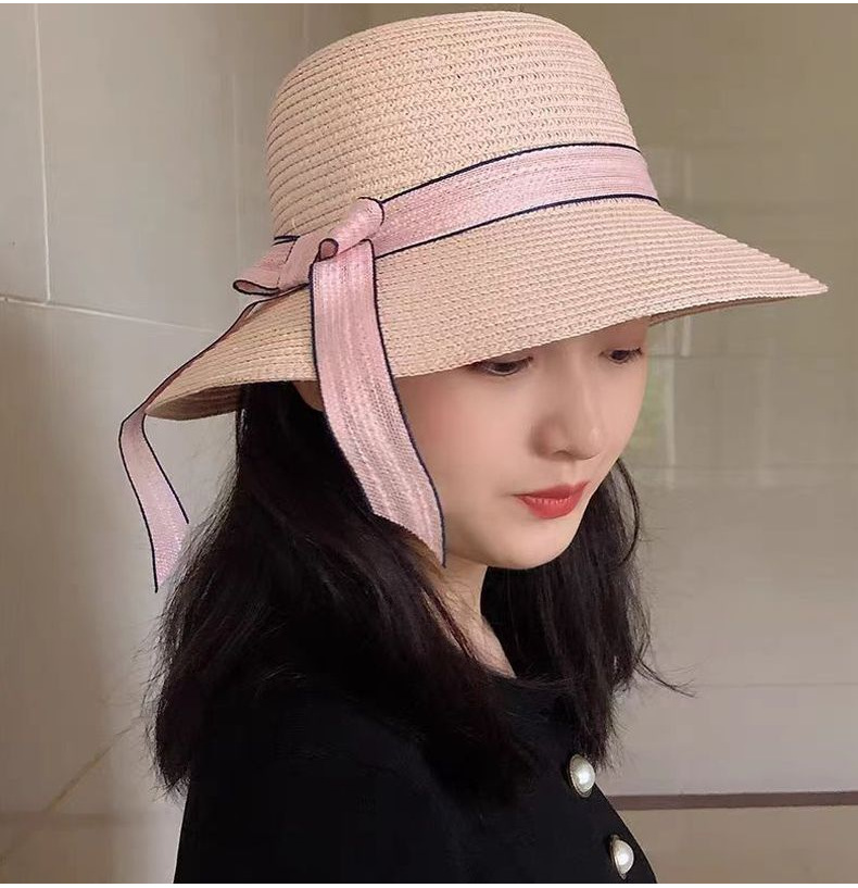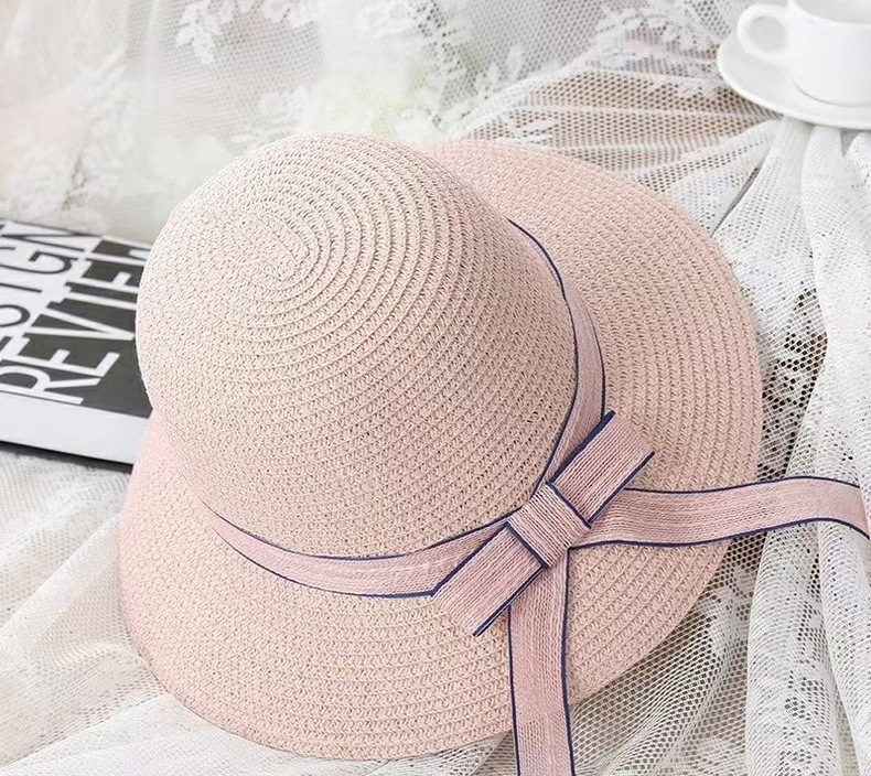 夏季女草编帽韩版丝带蝴蝶结圆顶渔夫帽户外百搭草帽防晒帽子批发