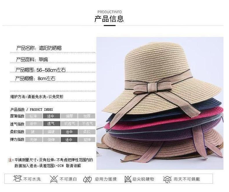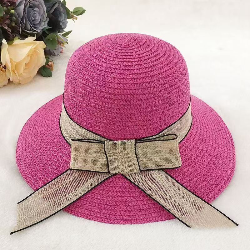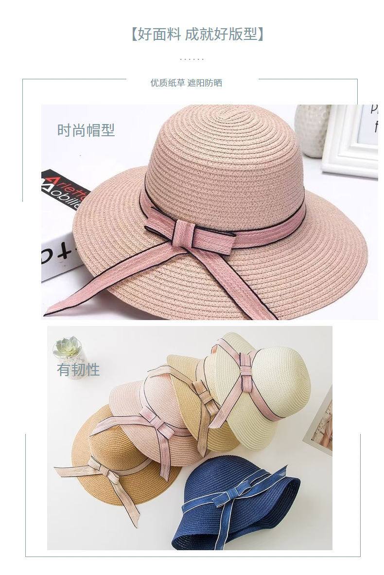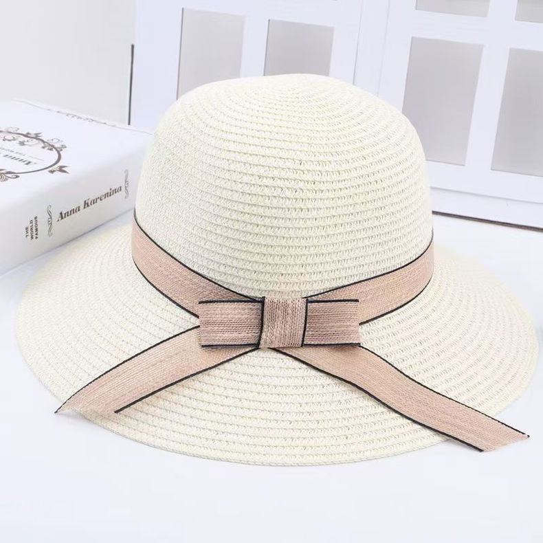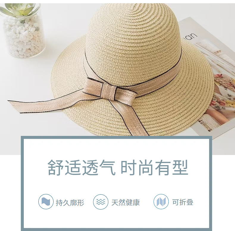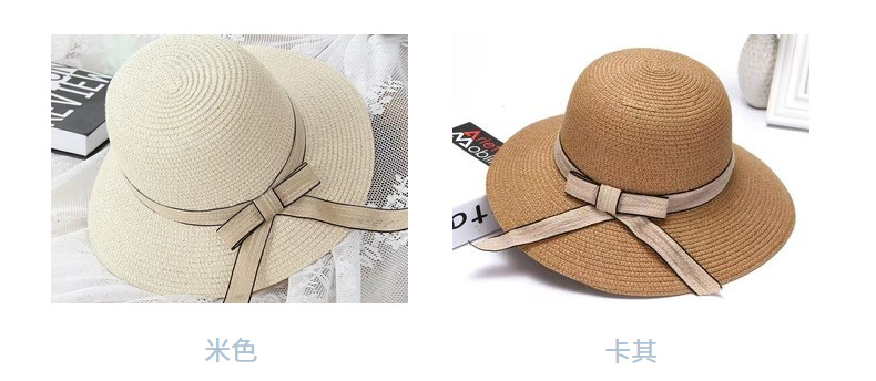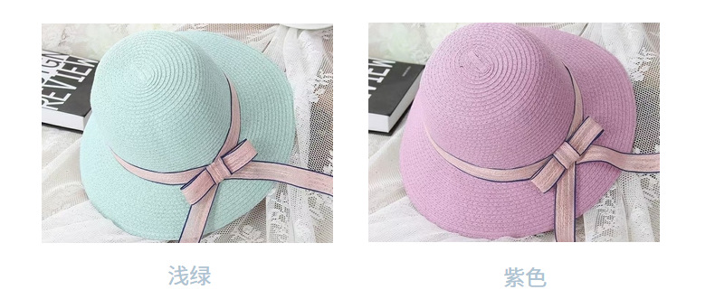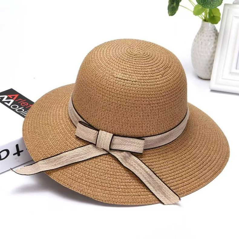 夏季女草编帽韩版丝带蝴蝶结圆顶渔夫帽户外百搭草帽防晒帽子批发
