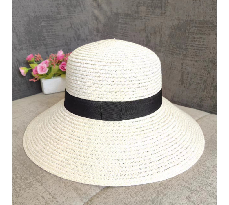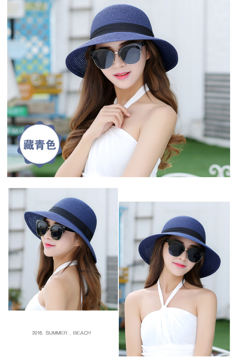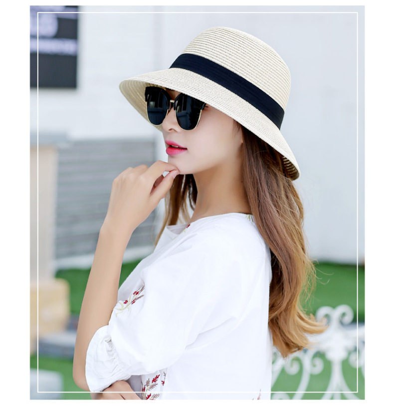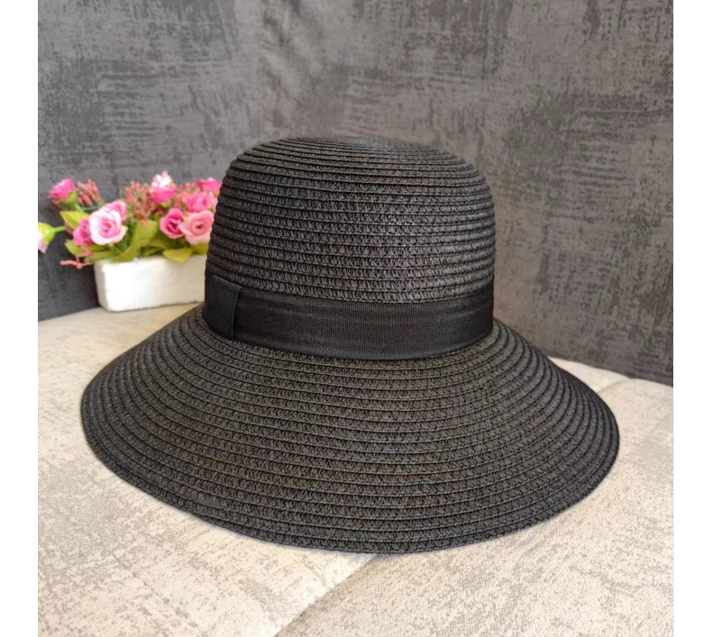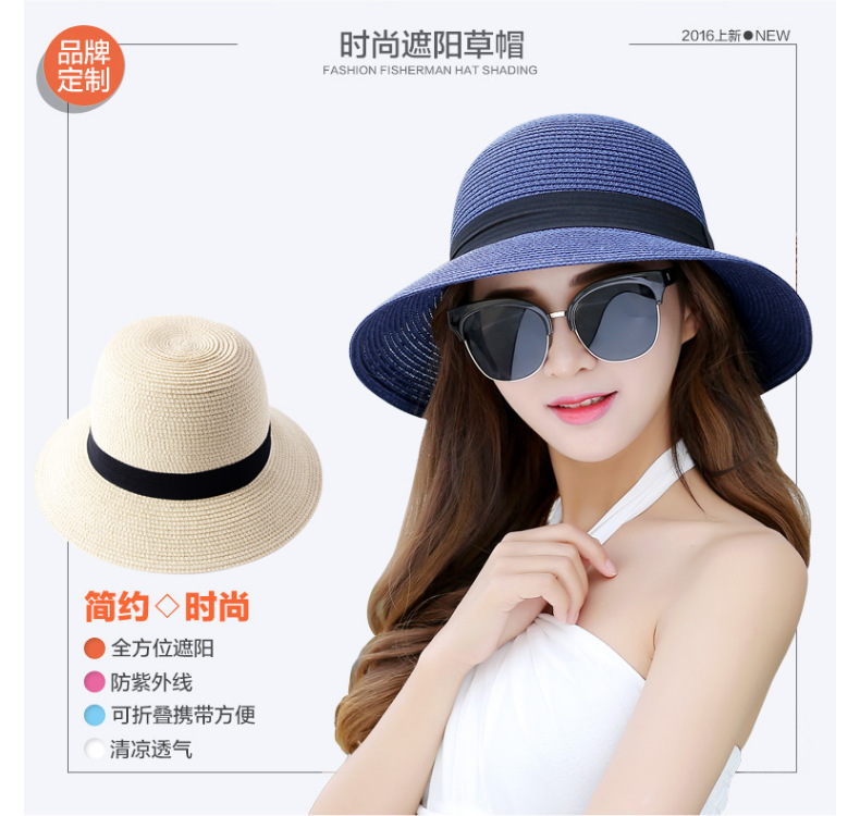 厂家批发夏季女简约防晒沙滩草帽度假出游渔夫帽透气大沿遮阳帽