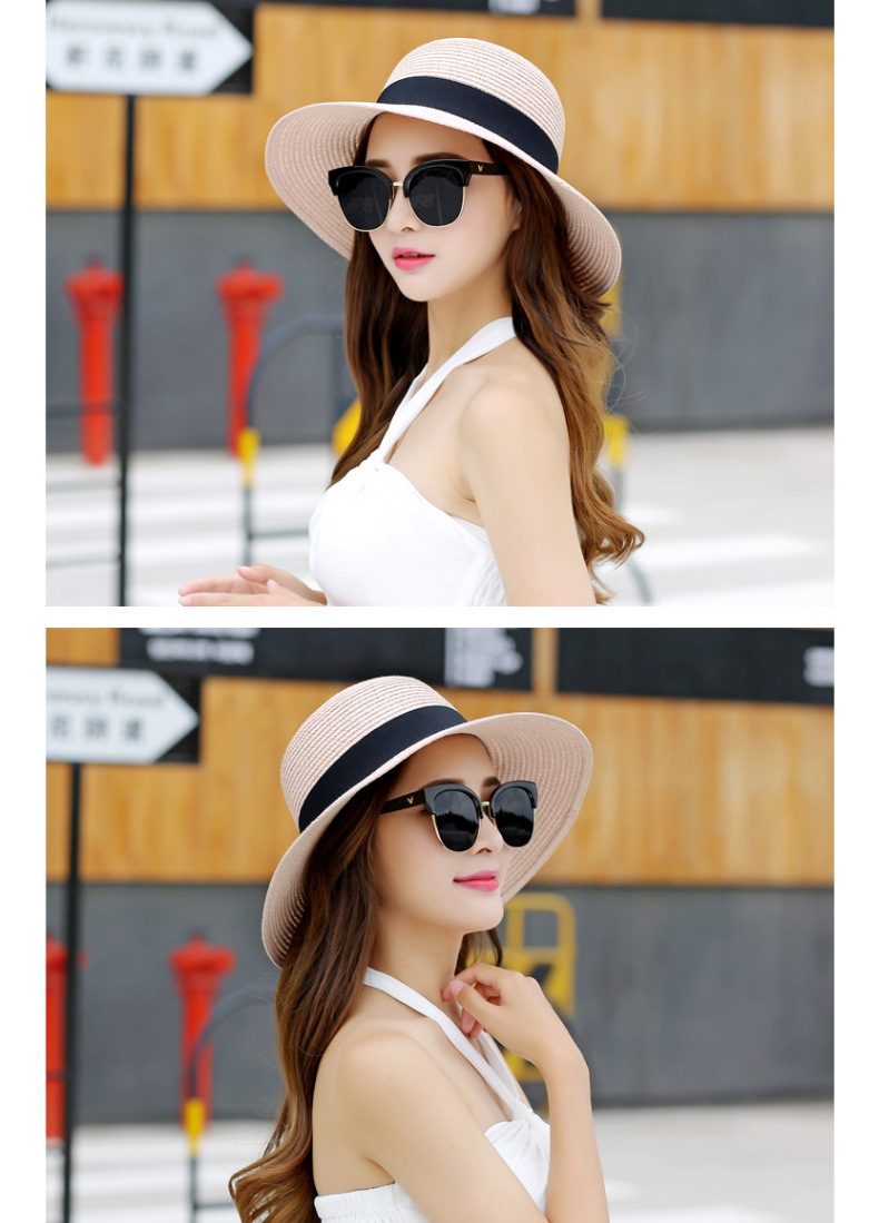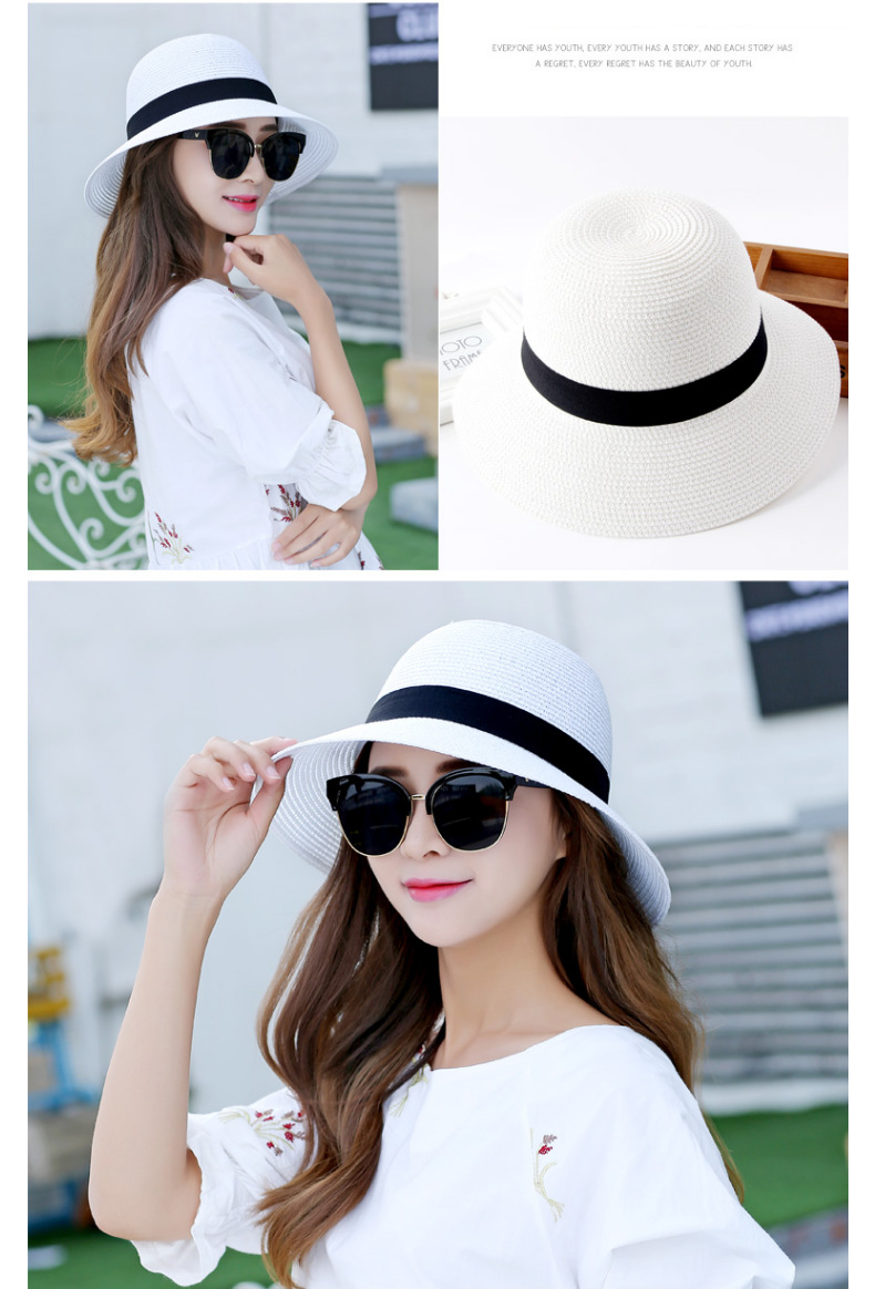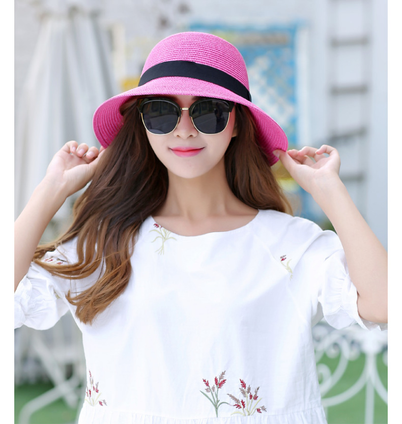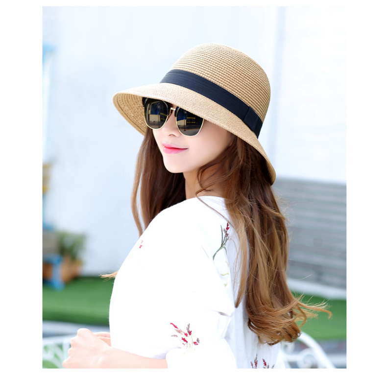 厂家批发夏季女简约防晒沙滩草帽度假出游渔夫帽透气大沿遮阳帽