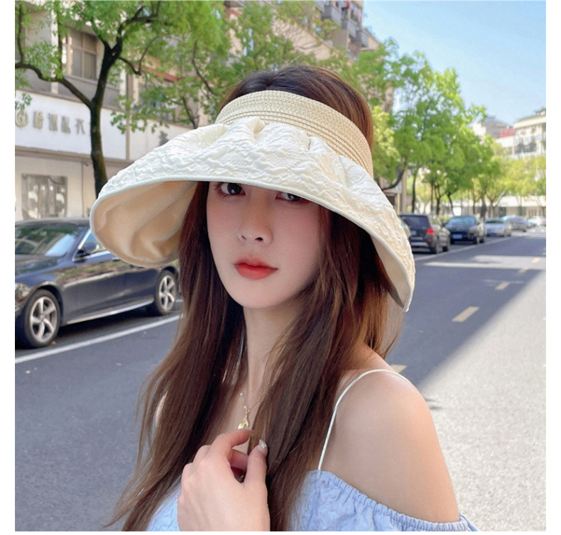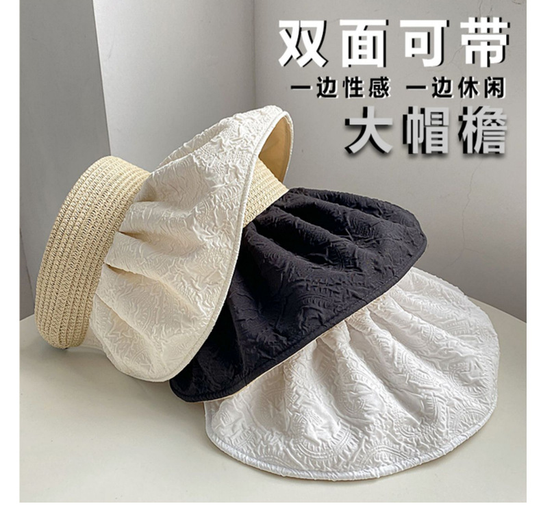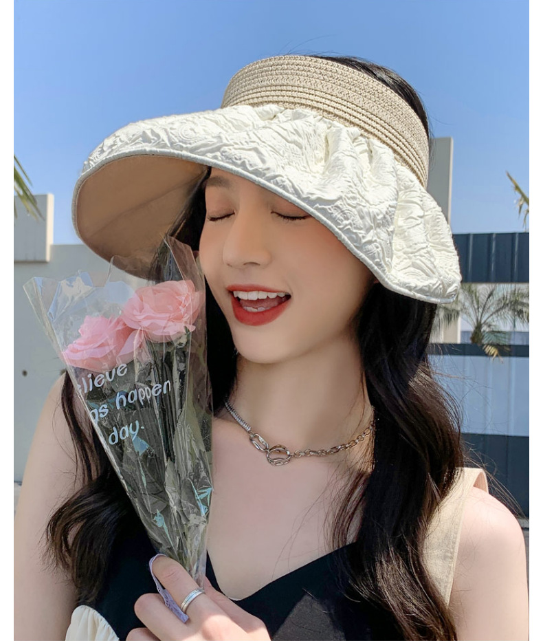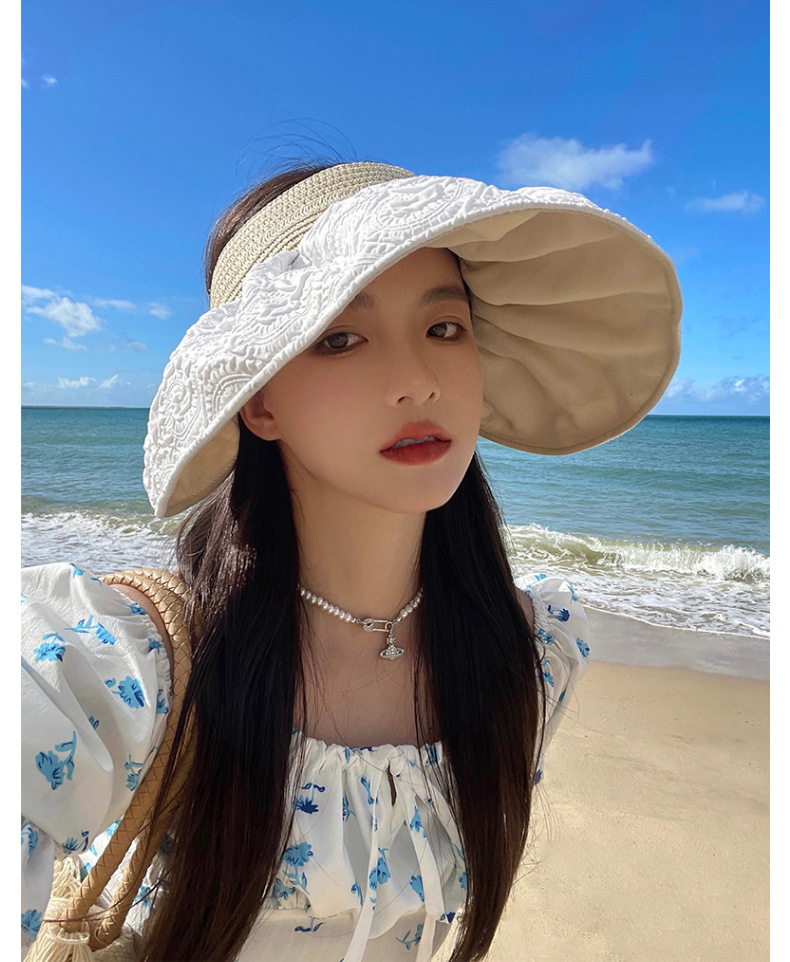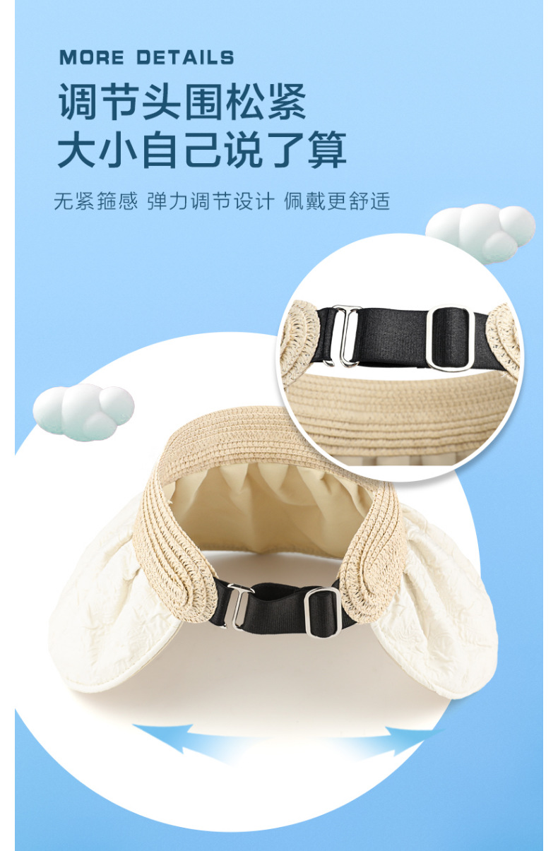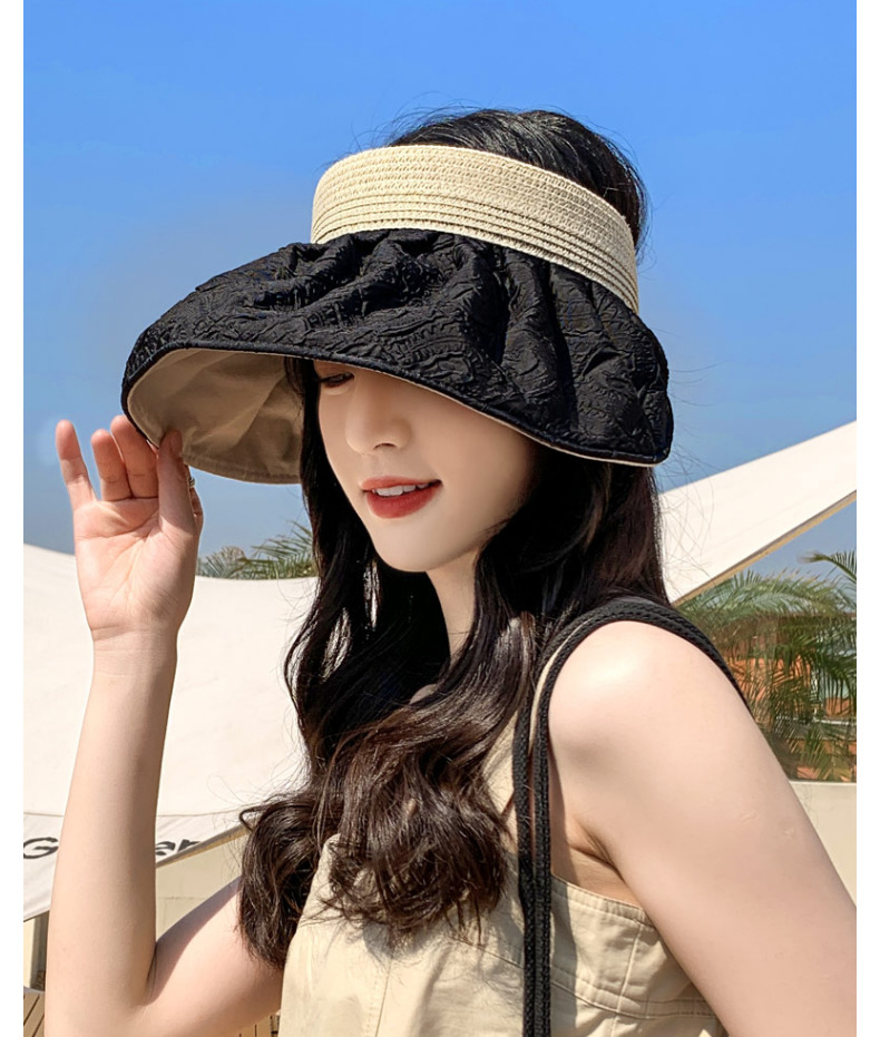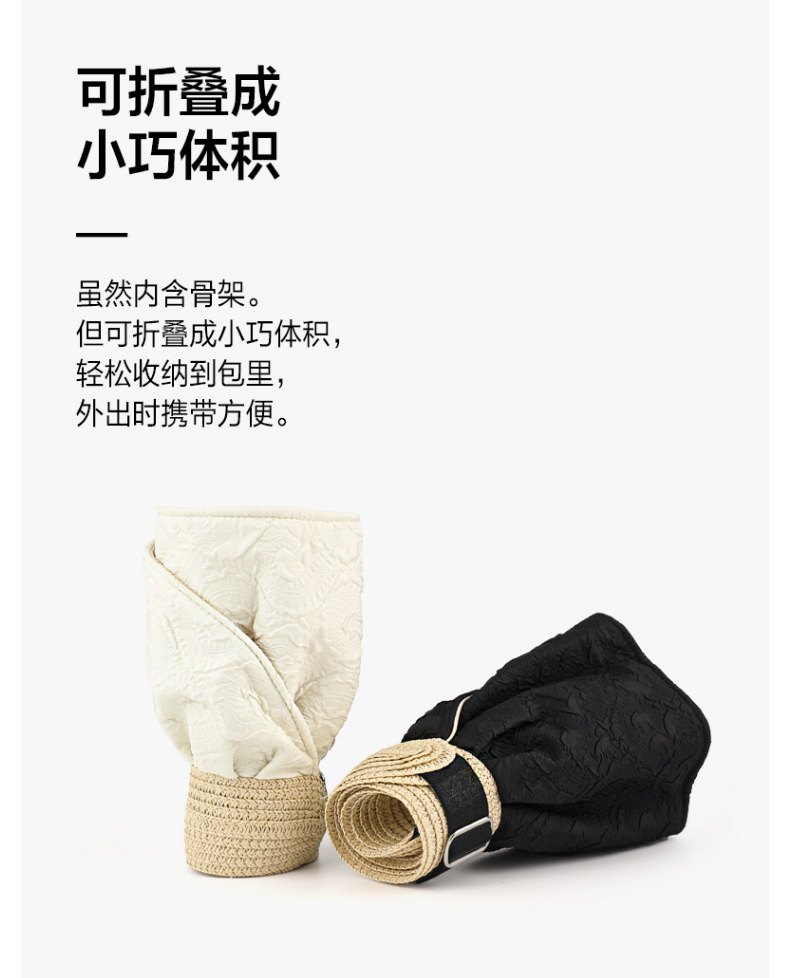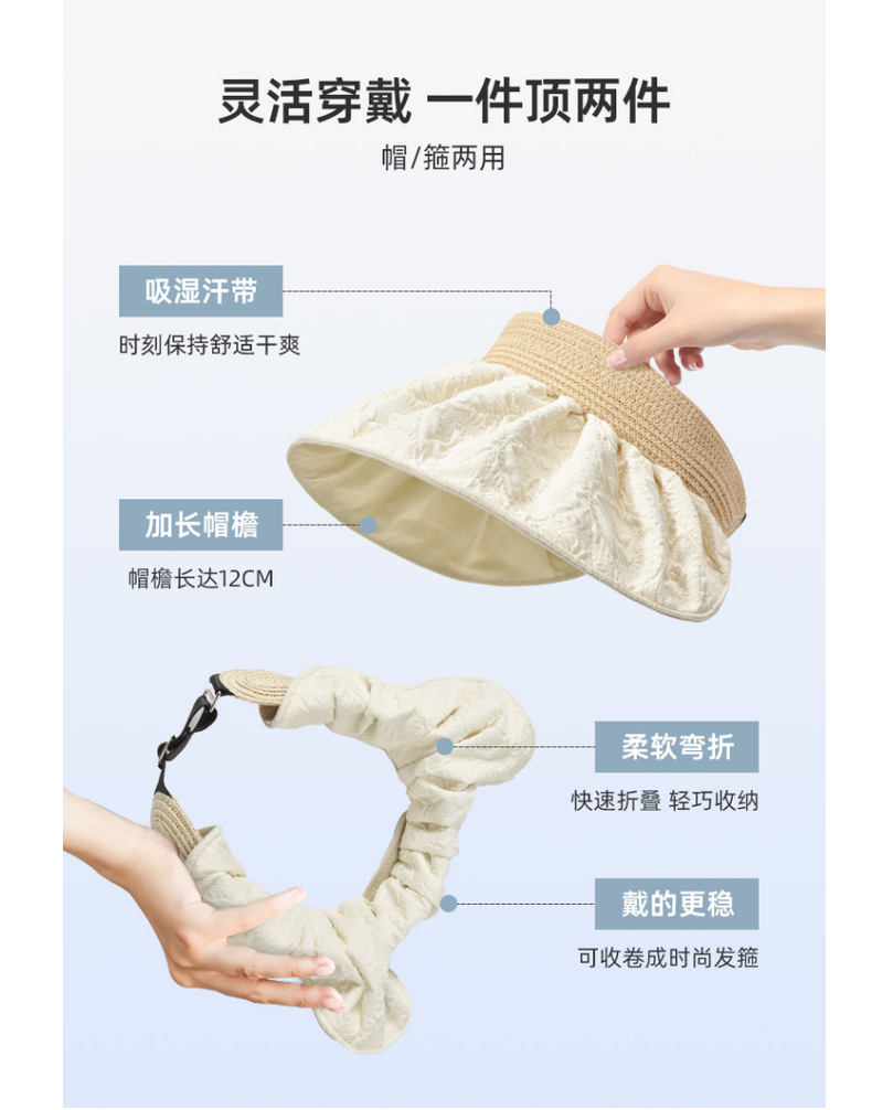 草编贝壳帽夏季出游空顶黑胶防晒大沿帽镂空发箍可折叠遮阳布帽子
