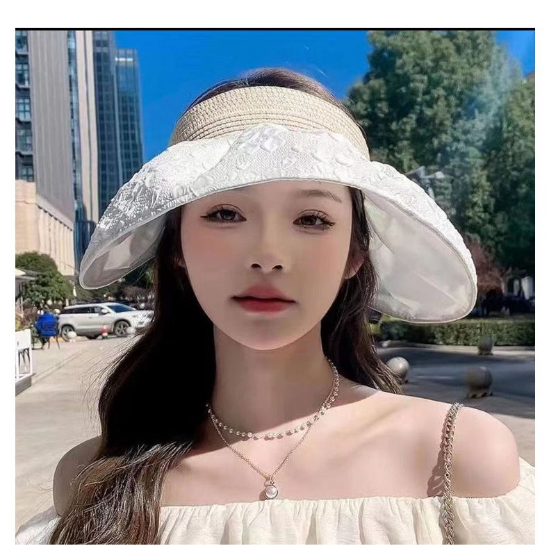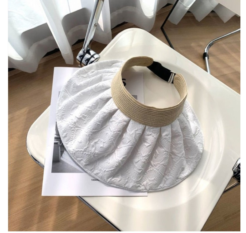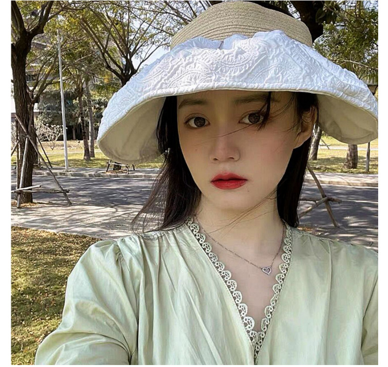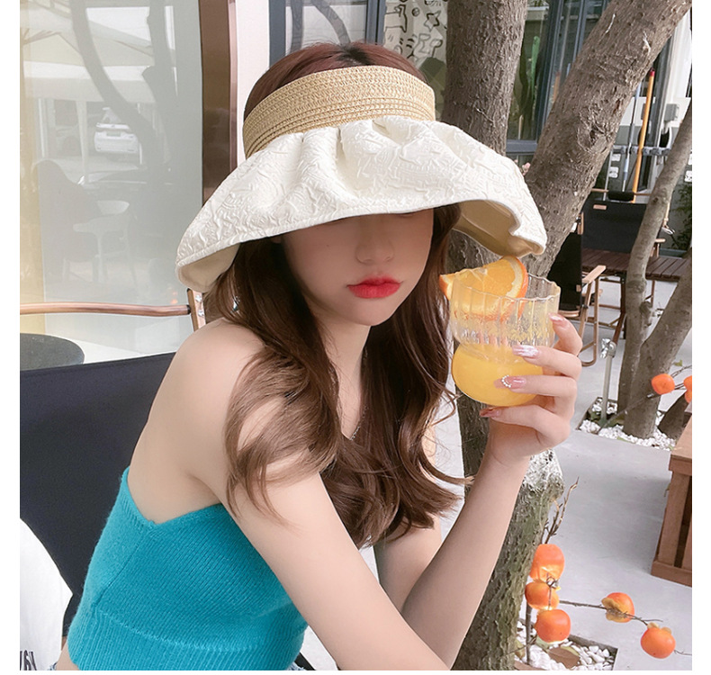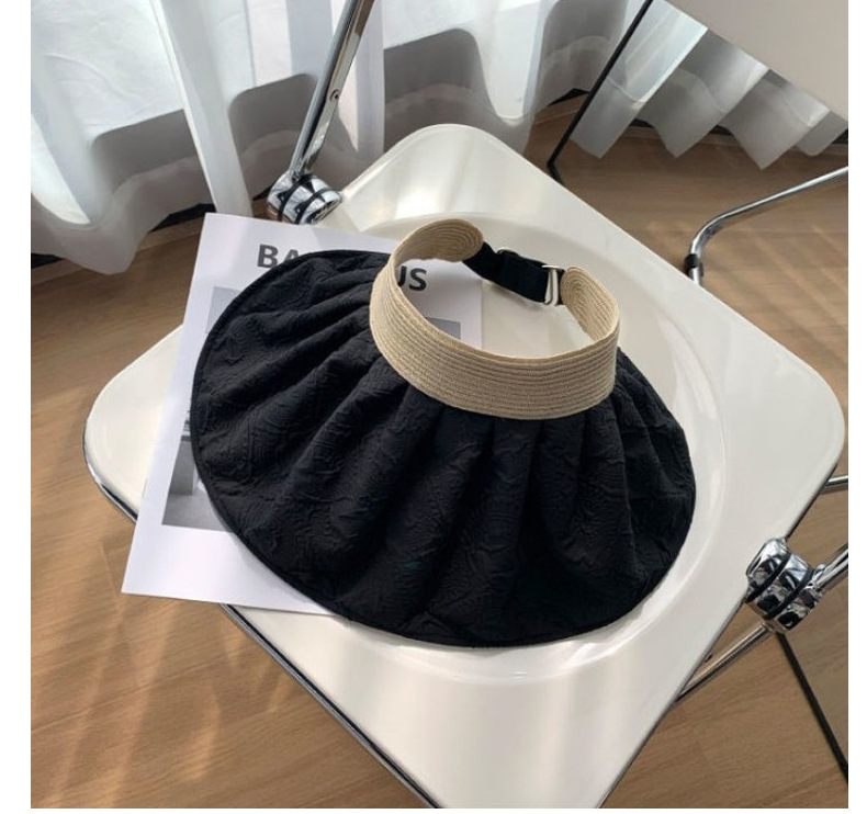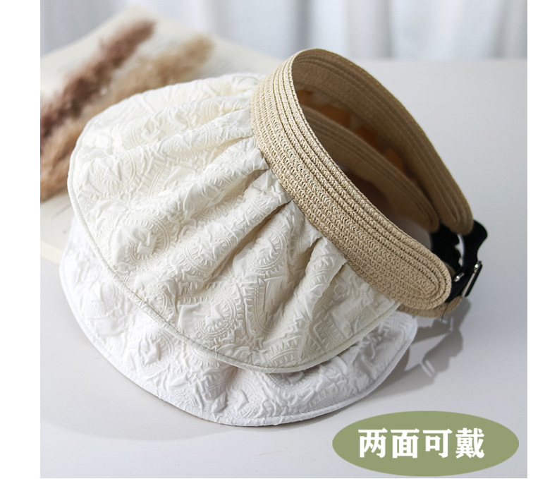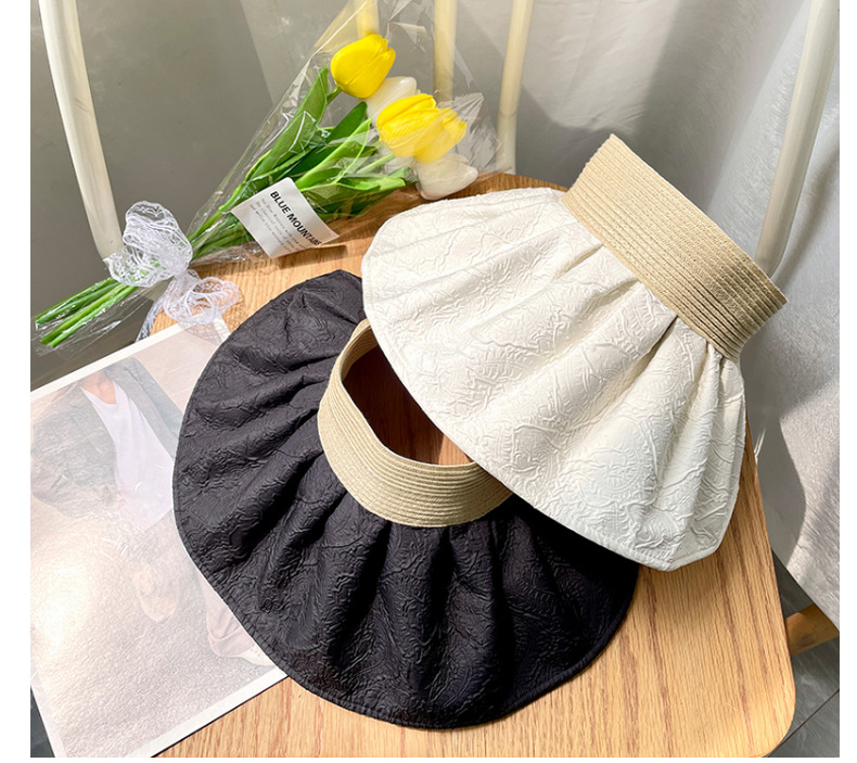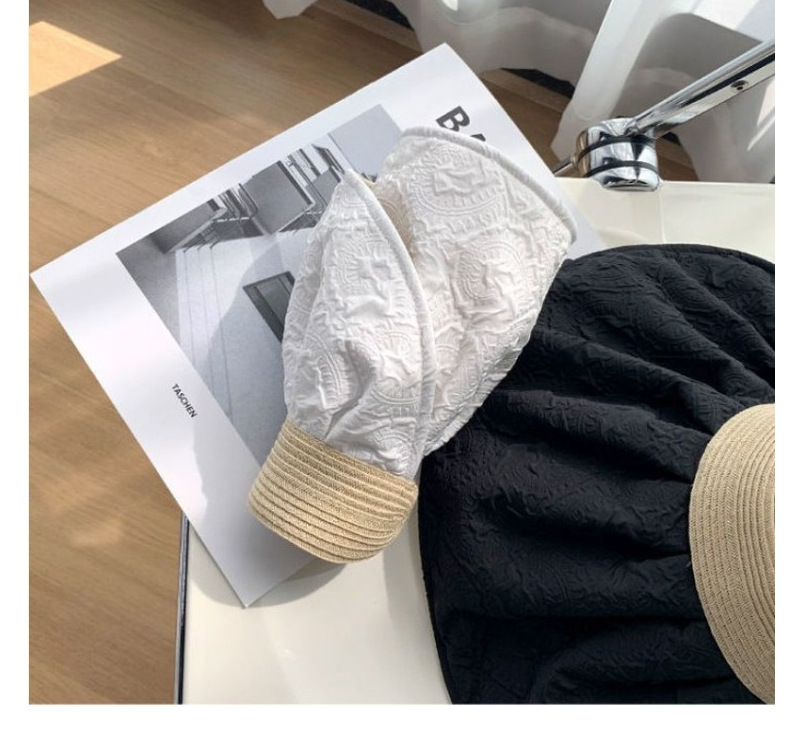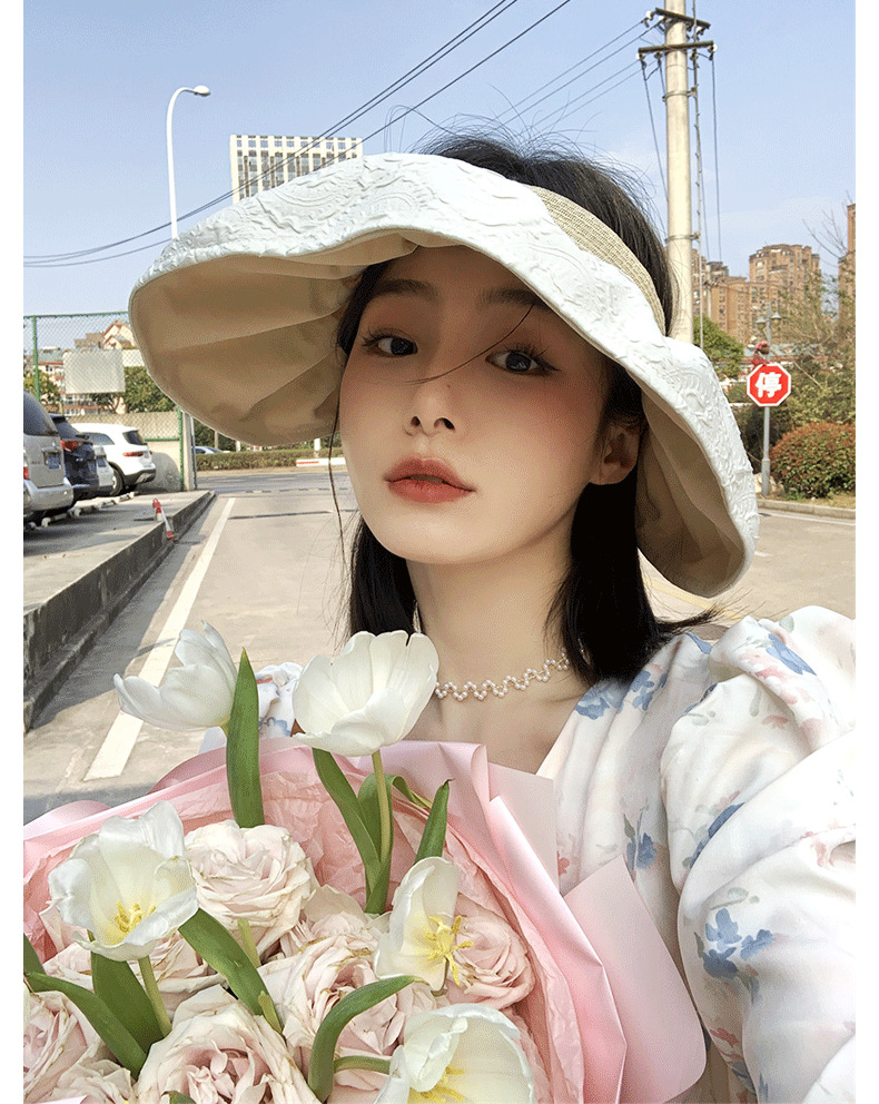 草编贝壳帽夏季出游空顶黑胶防晒大沿帽镂空发箍可折叠遮阳布帽子
