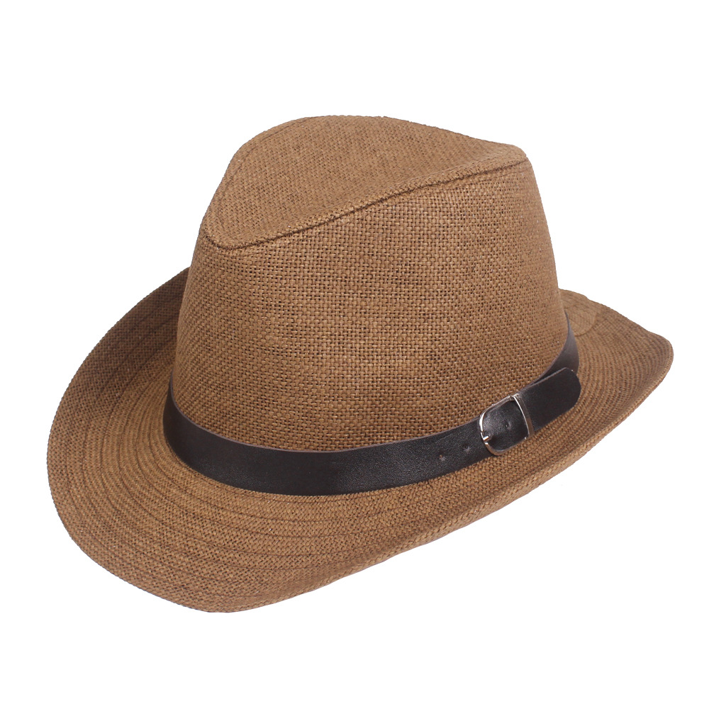 礼帽男纯色草编帽子英伦小礼帽女户外防嗮遮阳帽爵士帽海边沙滩帽