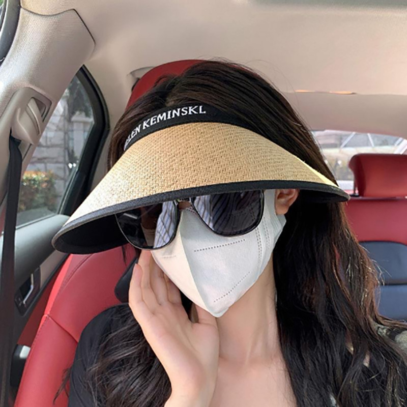 空顶uv防晒帽女夏季防紫外线大帽檐沙滩遮阳草帽骑车遮脸太阳帽子