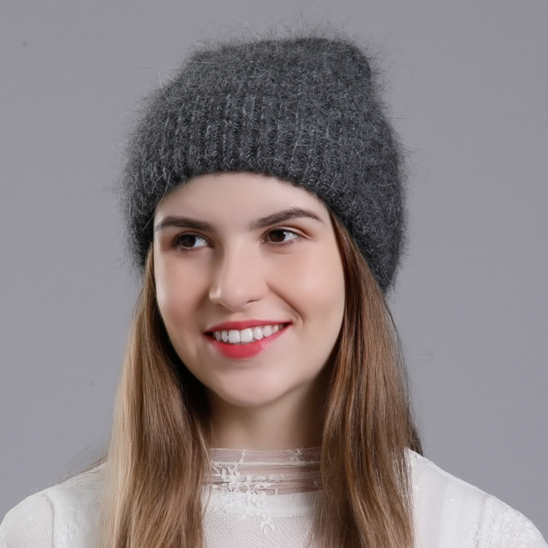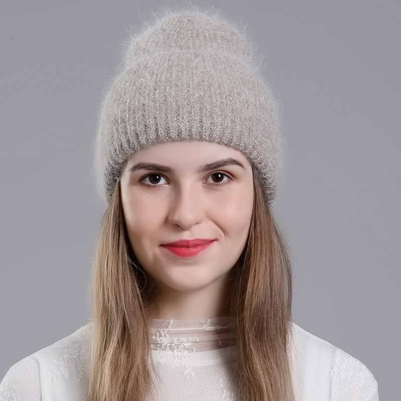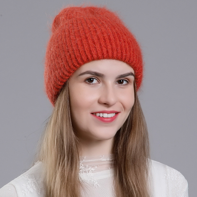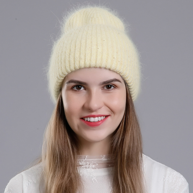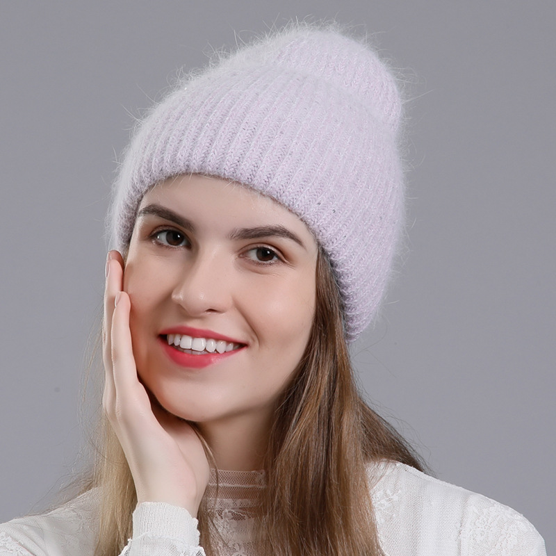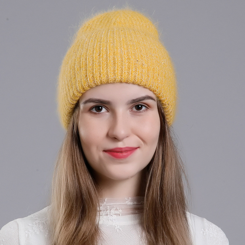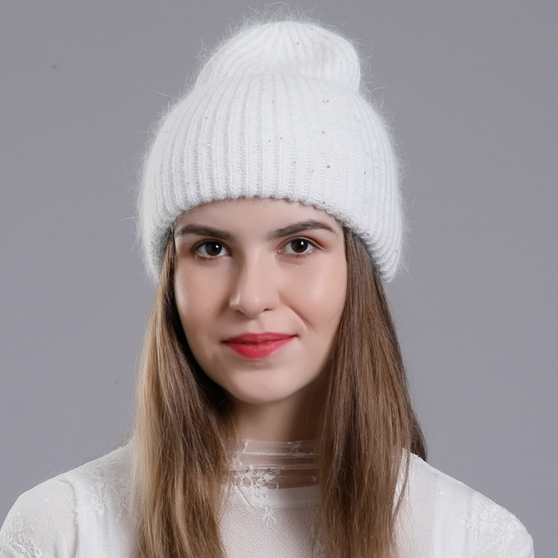 女士兔毛针织帽子时尚保暖高翻边毛线帽冬季亮片百搭套头帽潮外贸