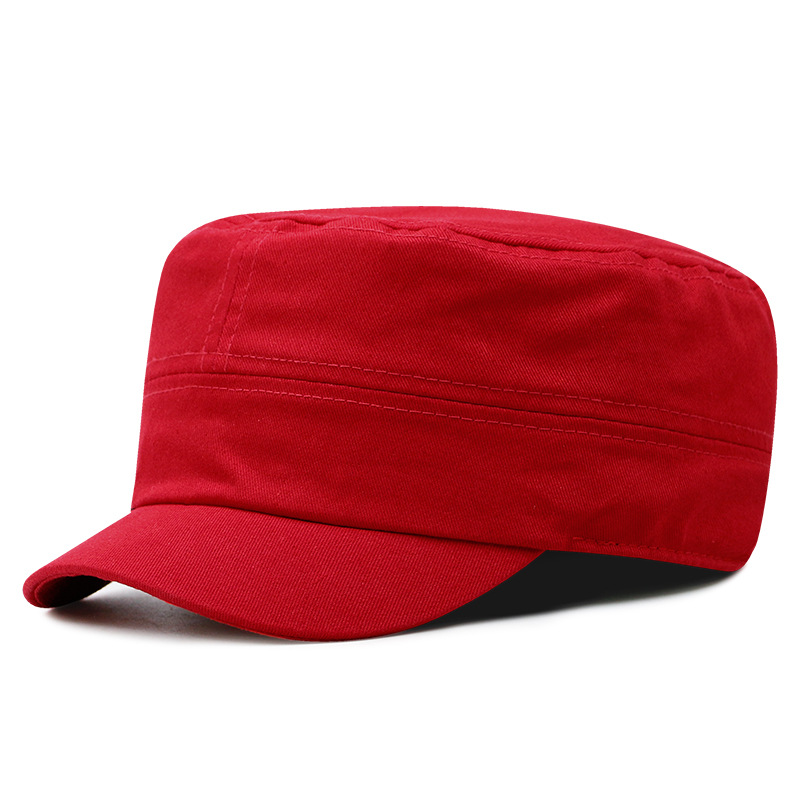 全封口户外短檐大码军帽男女四季简约百搭大头围松紧带平顶帽小码