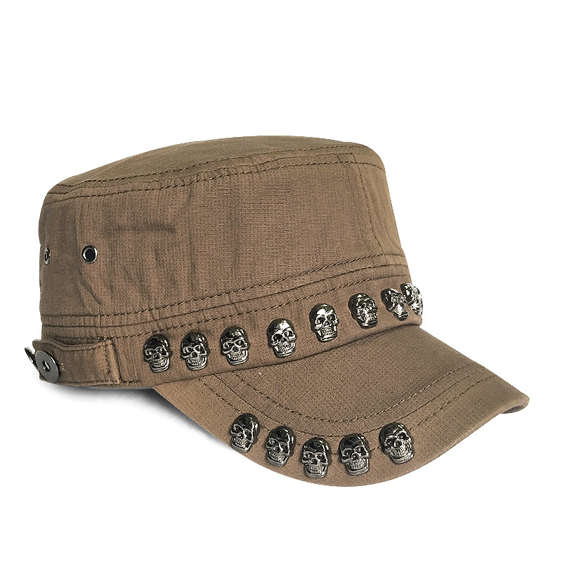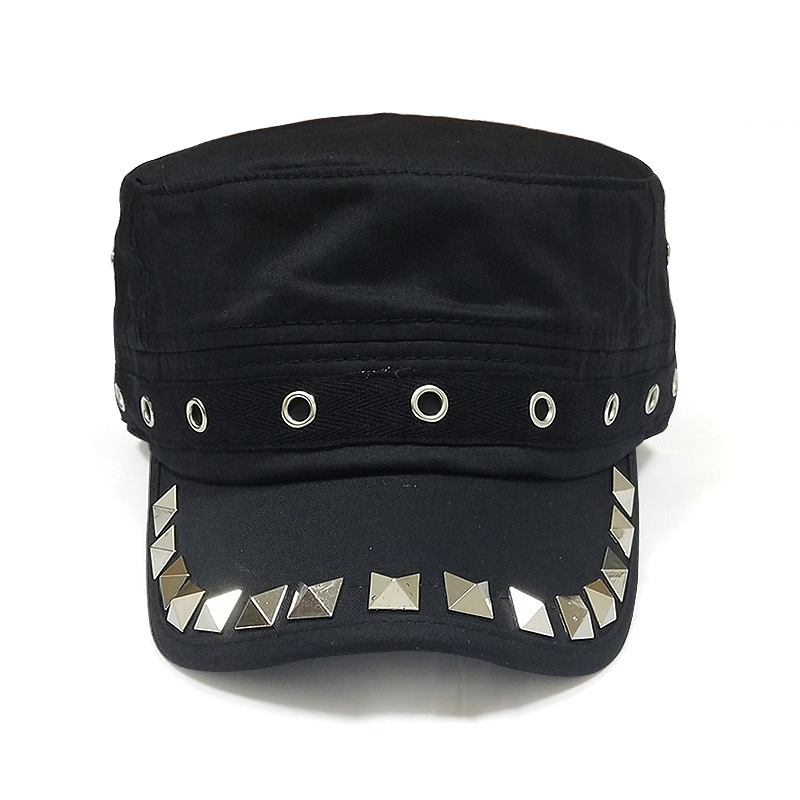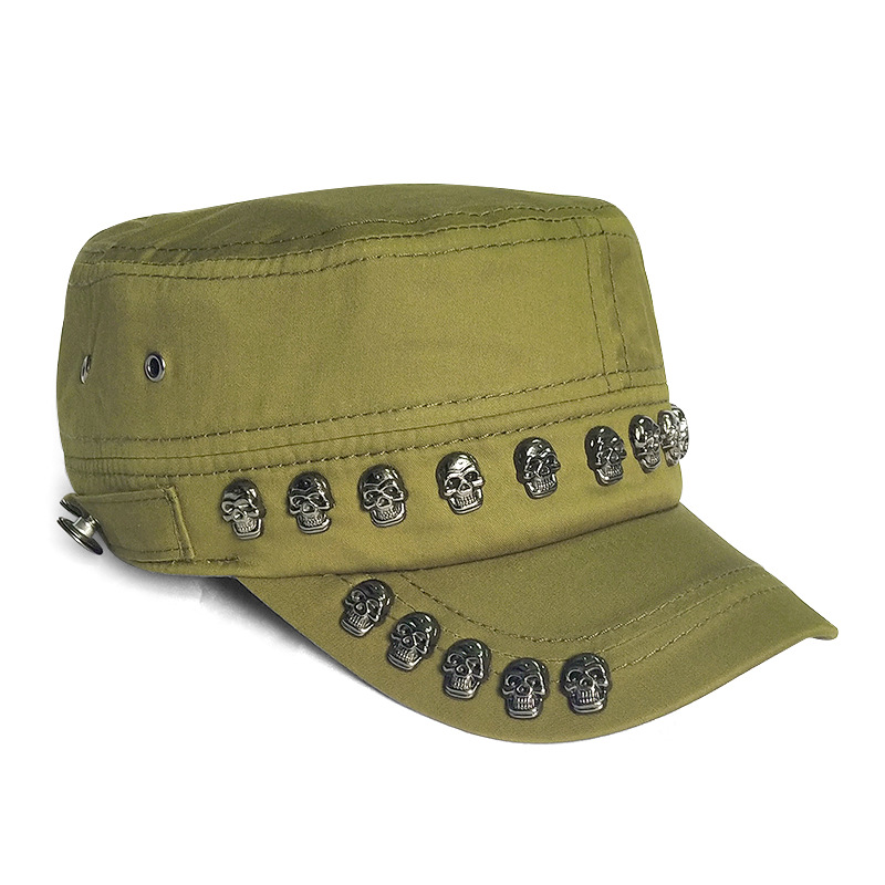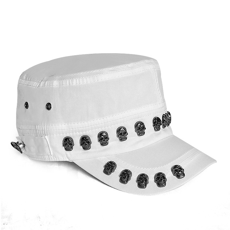 全封口个性骷髅头铆钉时尚大码平顶帽子男女街头遮阳帽嘻哈时装帽