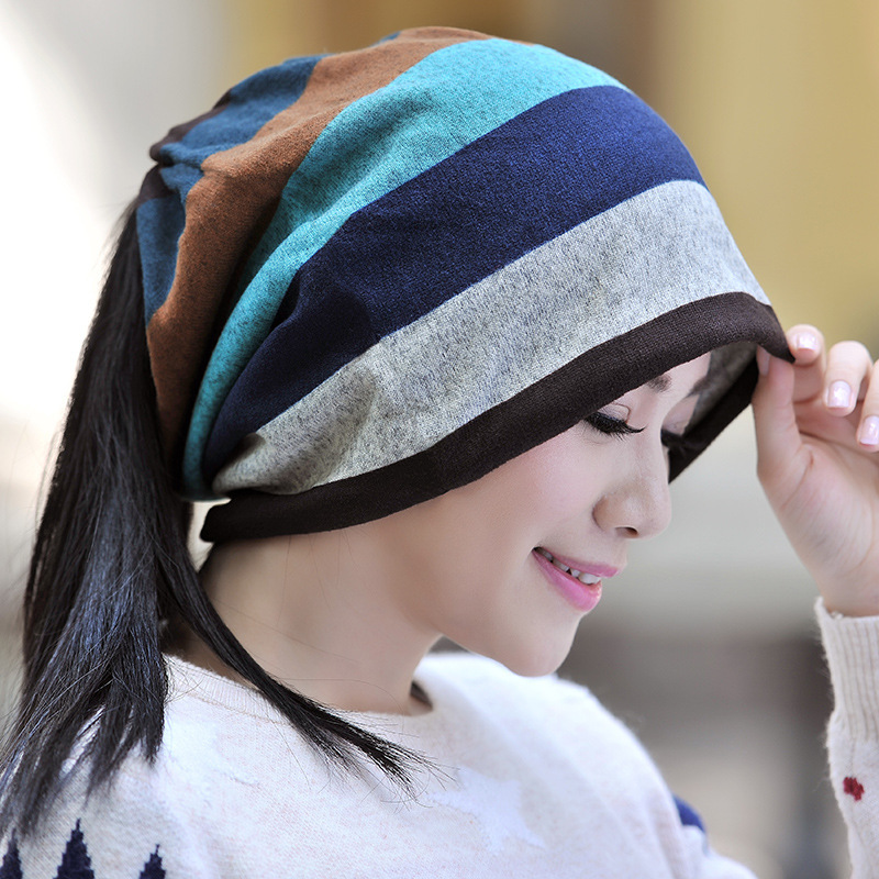 帽子男秋冬套头帽保暖包头帽女韩版彩色条纹加绒围脖防风帽堆堆帽