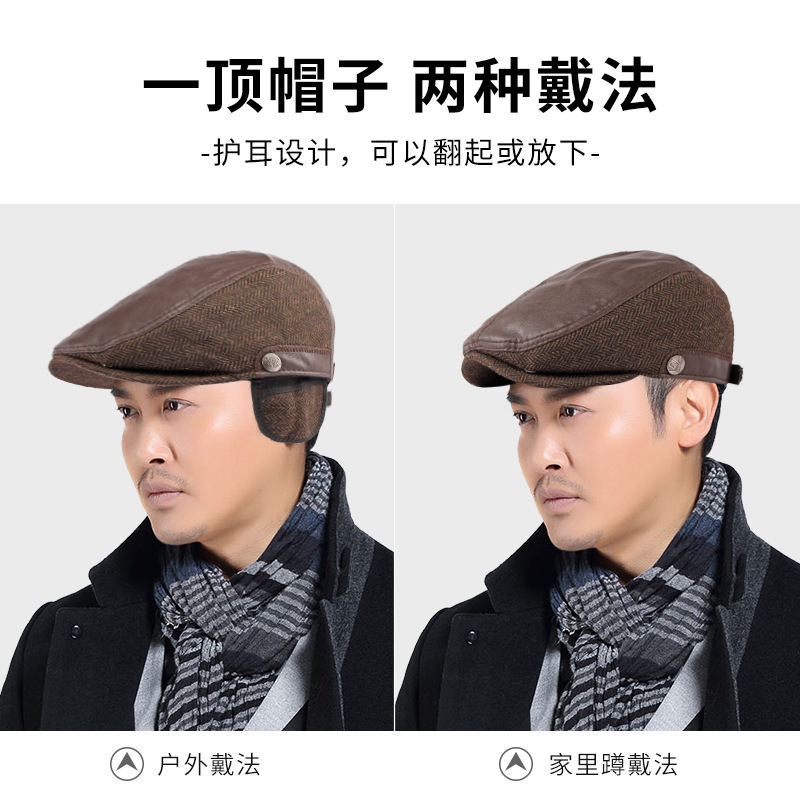 秋冬季护耳贝雷帽子男中老年人鸭舌帽全封口加厚保暖前进帽爸爸帽