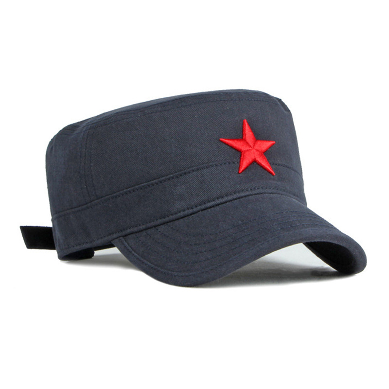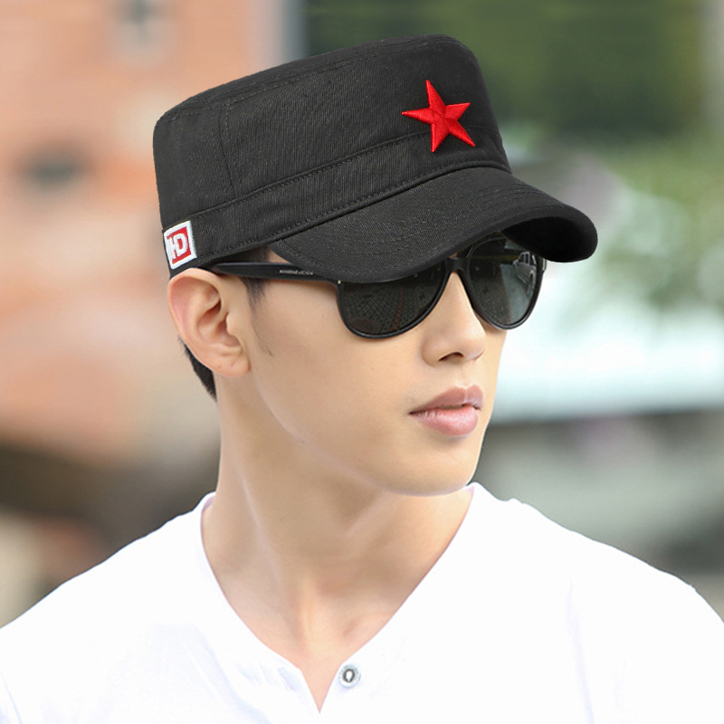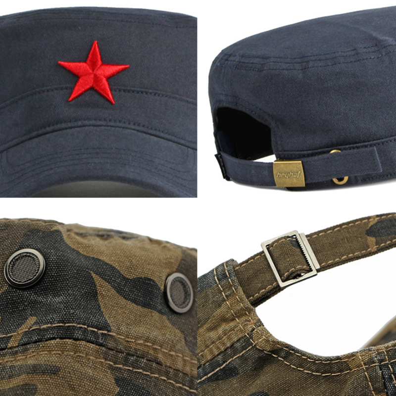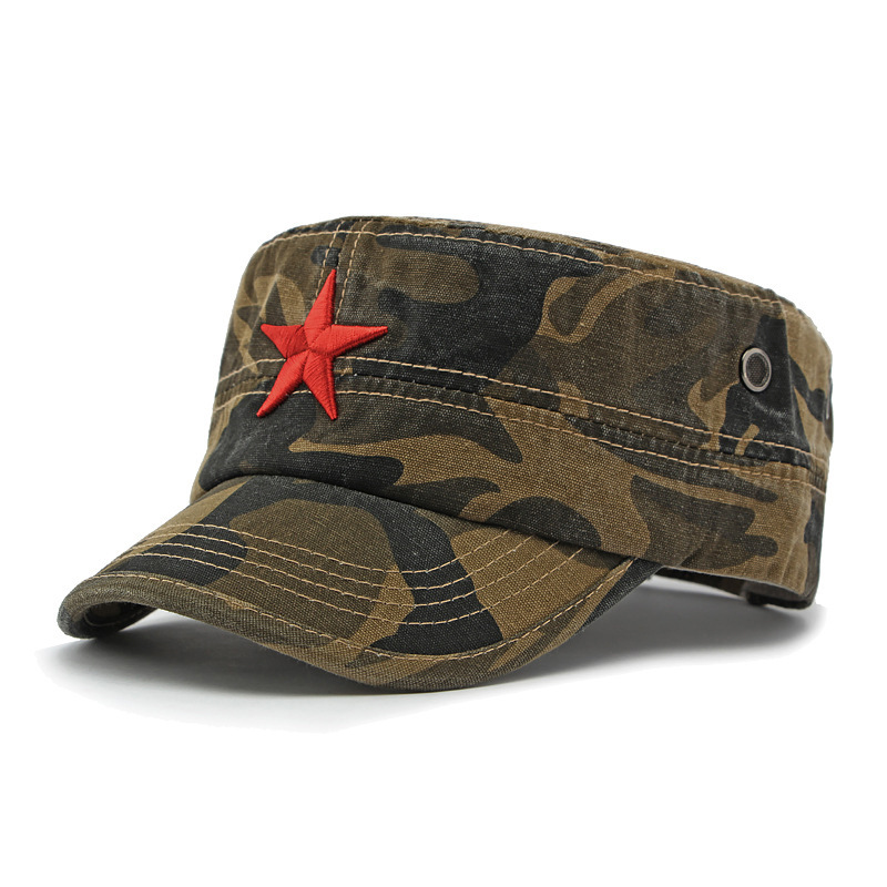 四季户外棉质迷彩防晒鸭舌帽中国风五角星刺绣平顶帽子男女遮阳帽