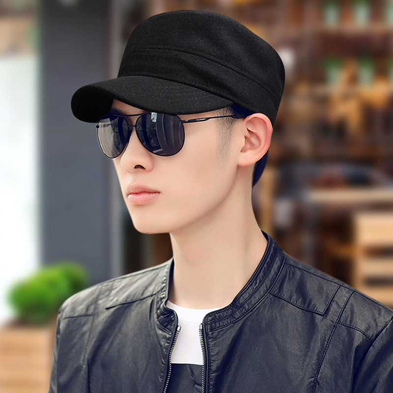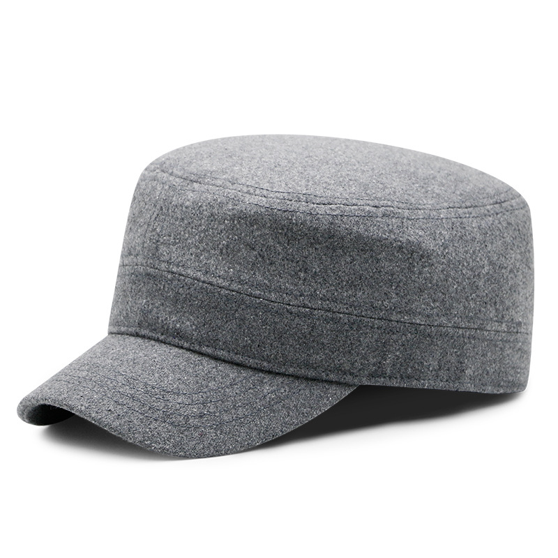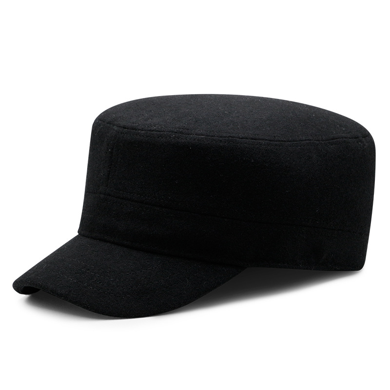 大头围帽子男加深平顶帽秋冬保暖鸭舌帽中老年人大码毛呢封口军帽