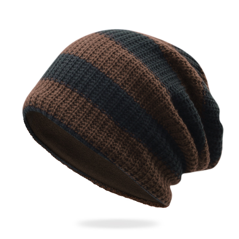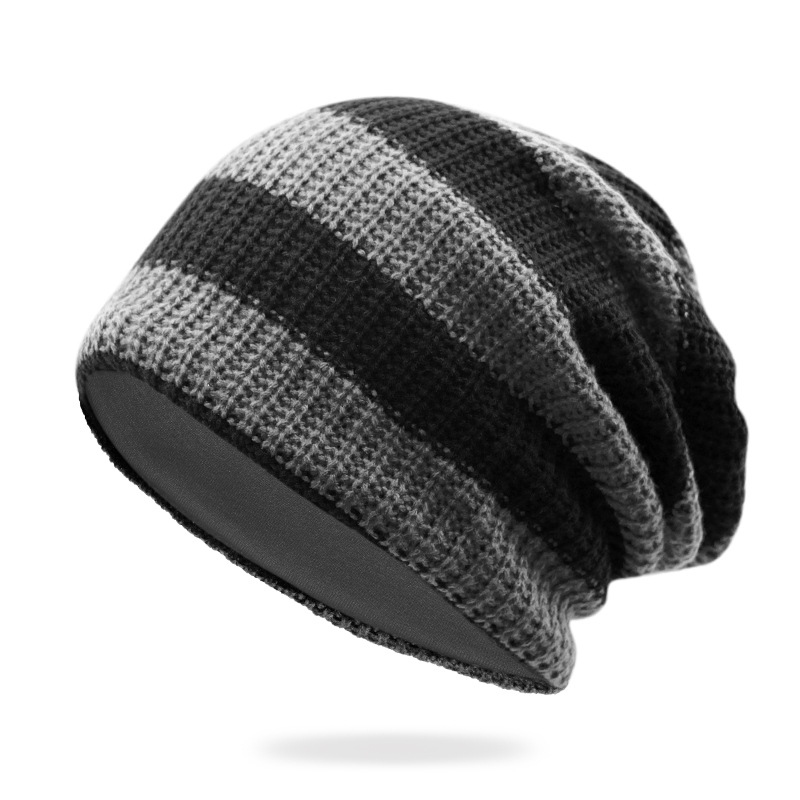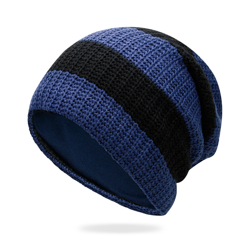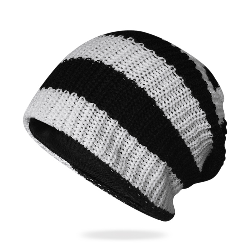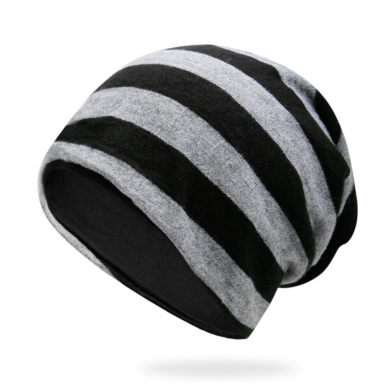 套头帽子男秋冬大间条纹保暖毛线帽韩版简约包头帽男女百搭针织帽