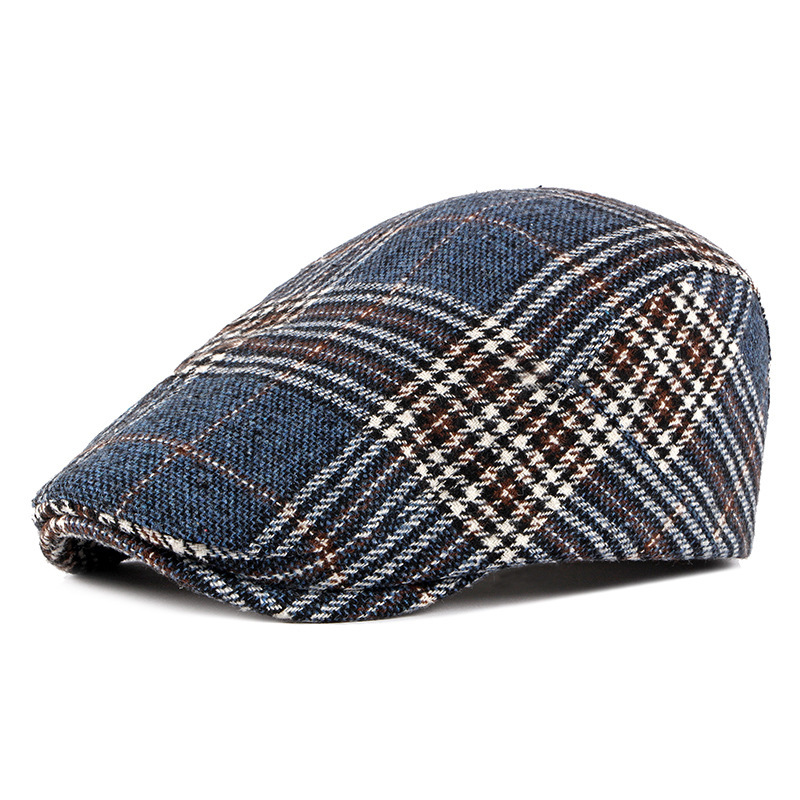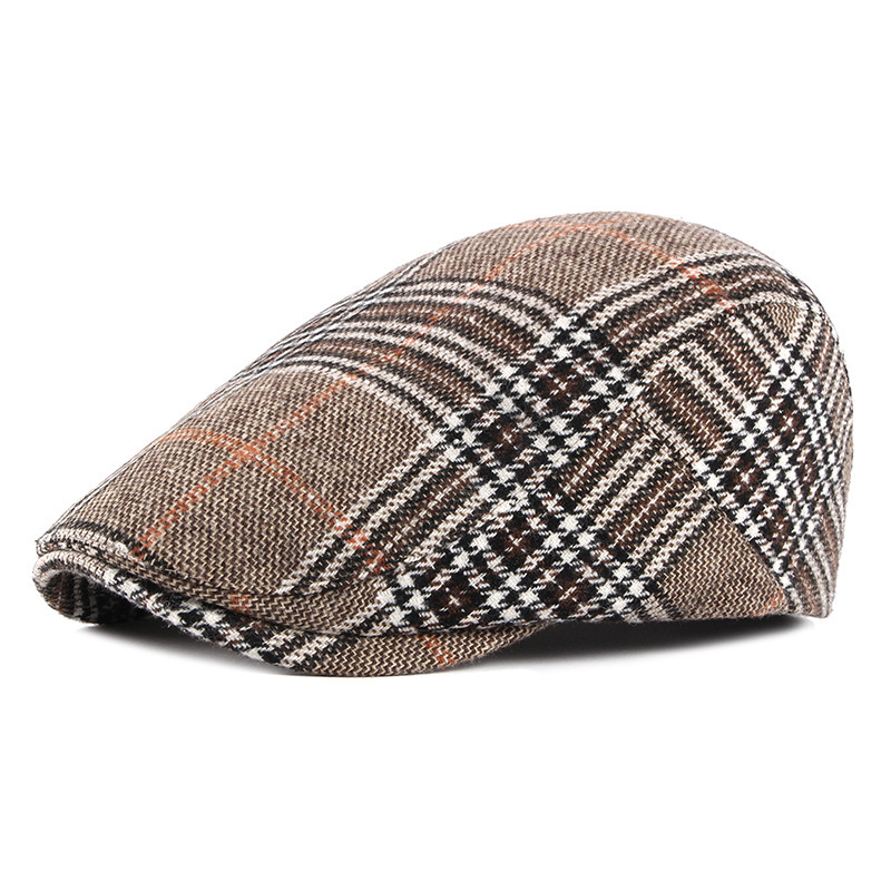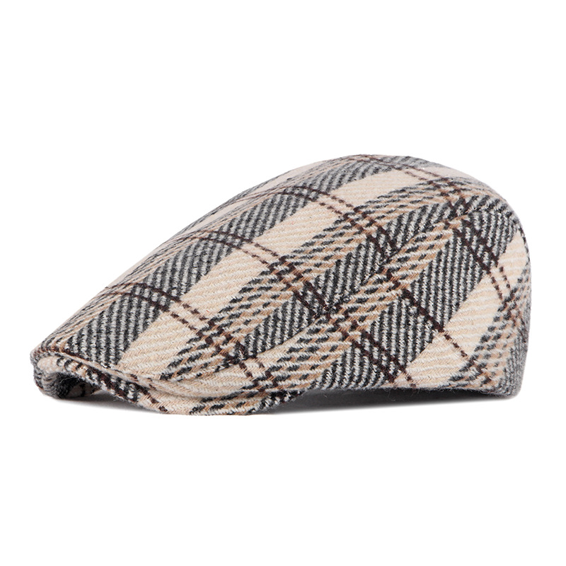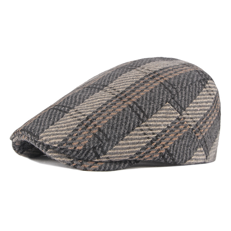 秋冬季加厚保暖毛呢贝雷帽男英伦复古格纹鸭舌帽女时尚休闲前进帽