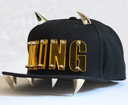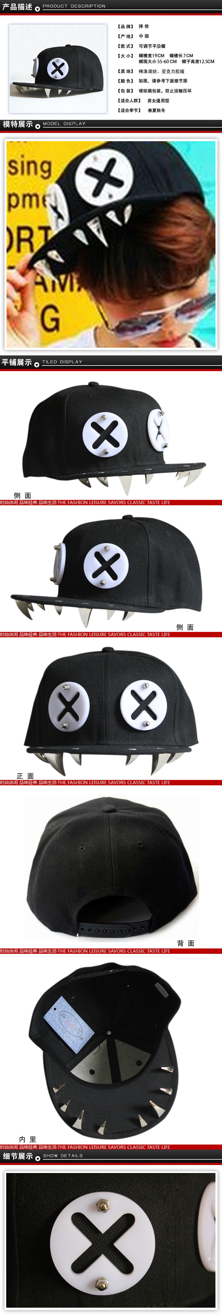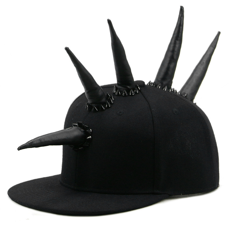 hip-hop朋克风亚克力恶魔怪兽牙齿牛角铆钉嘻哈平沿棒球帽表演帽