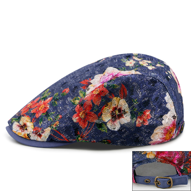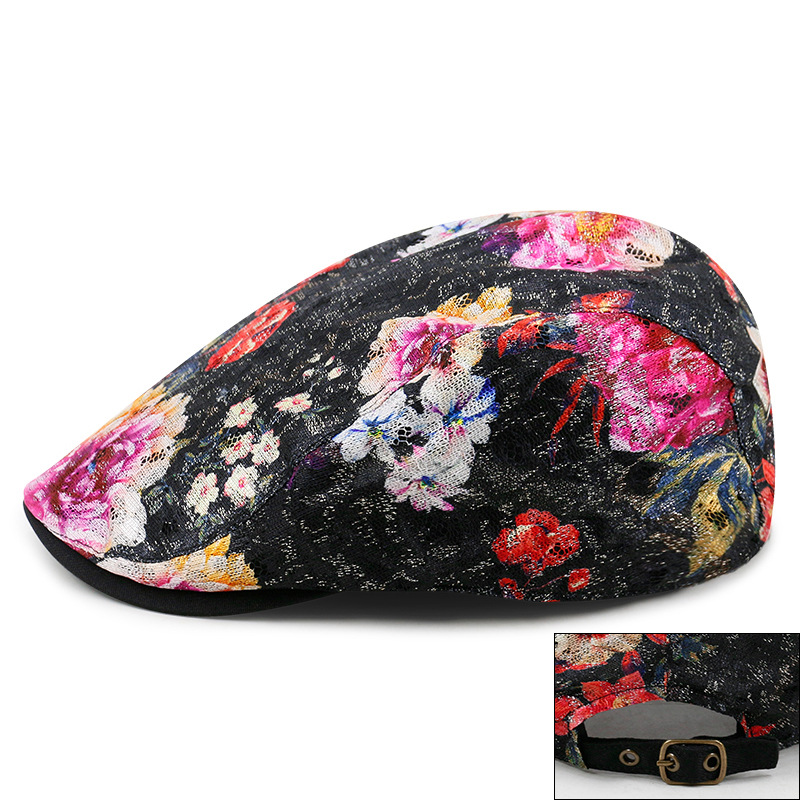 帽子女夏季蕾丝花朵贝雷帽韩版休闲防晒轻薄遮阳帽户外出游前进帽