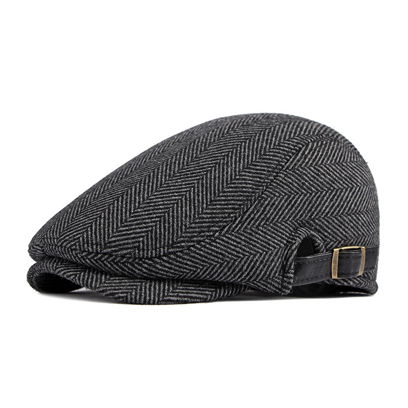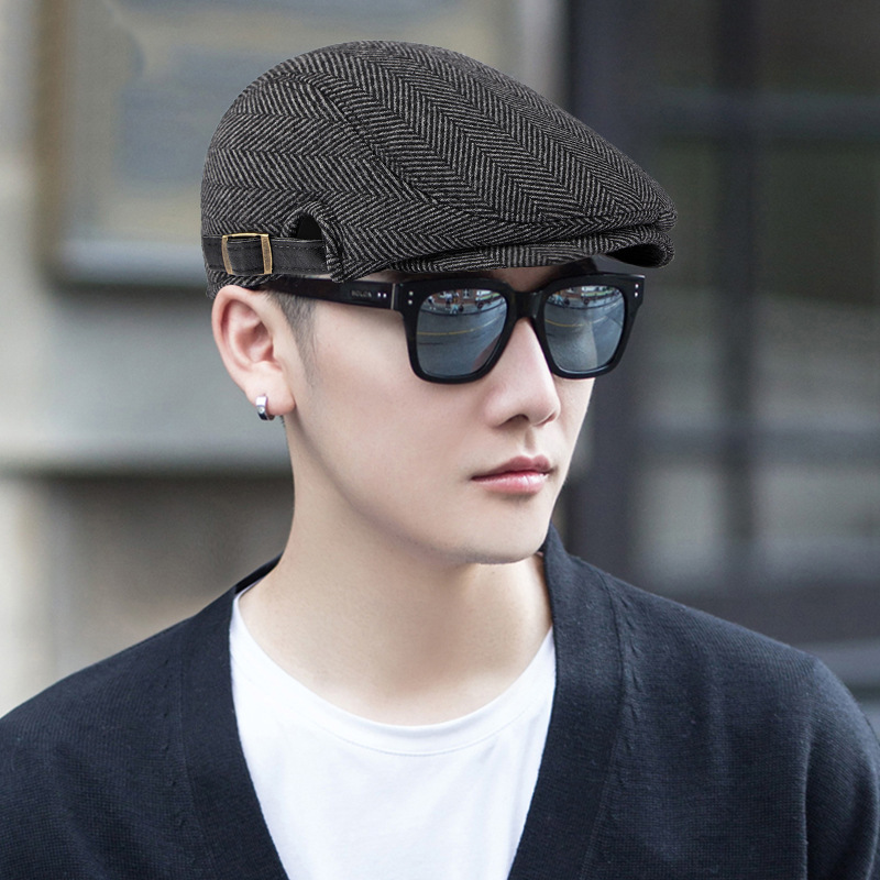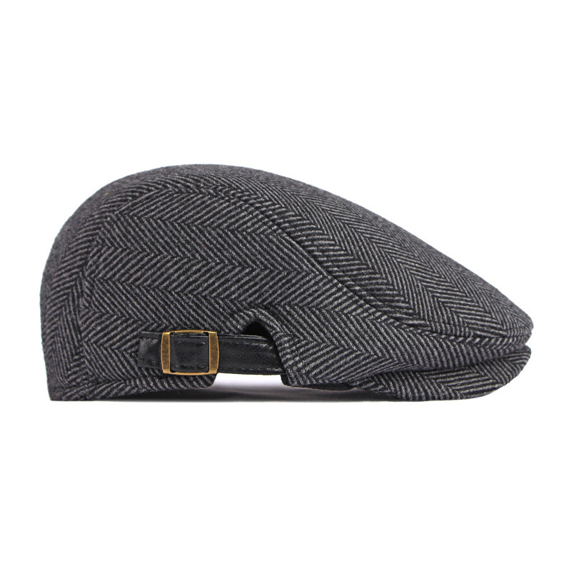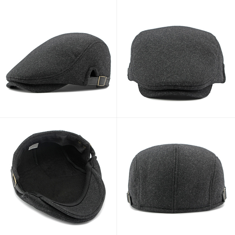 帽子男秋冬加厚加绒保暖鸭舌帽英伦复古毛呢贝雷帽中老年人前进帽