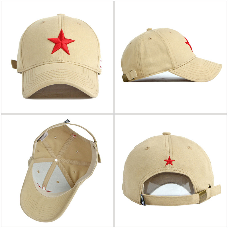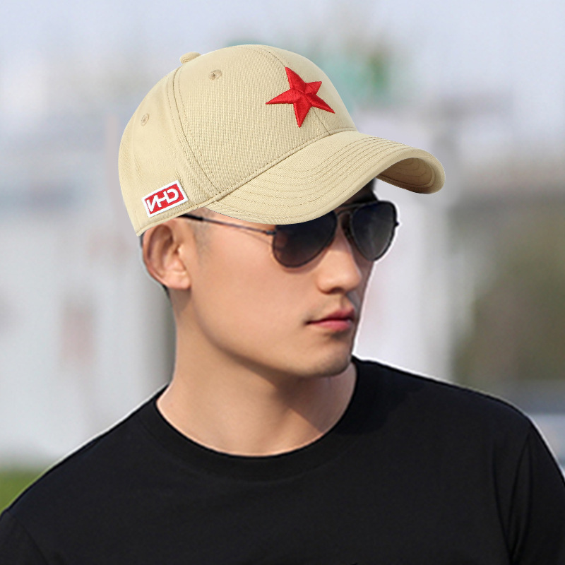 户外休闲硬顶棉质棒球帽男女防晒遮阳帽中国风五角星刺绣鸭舌帽男