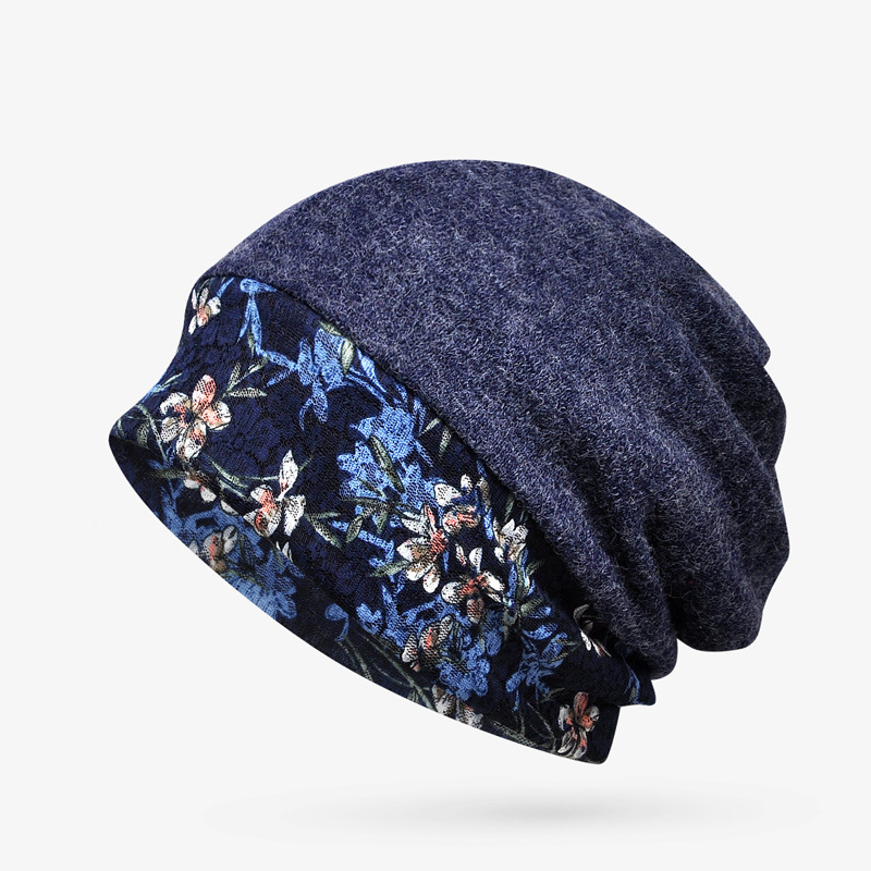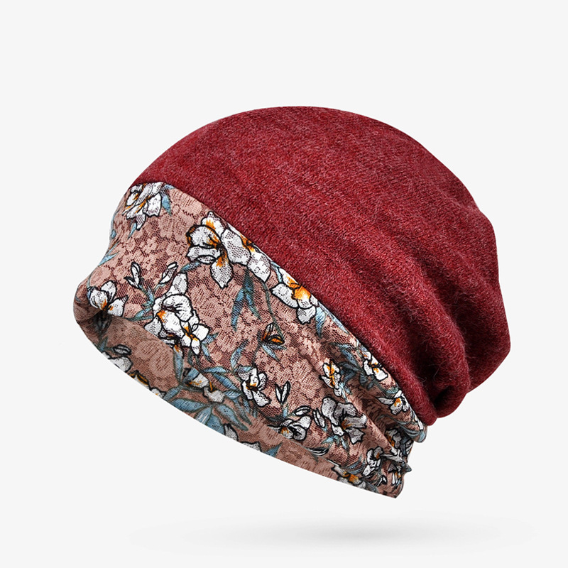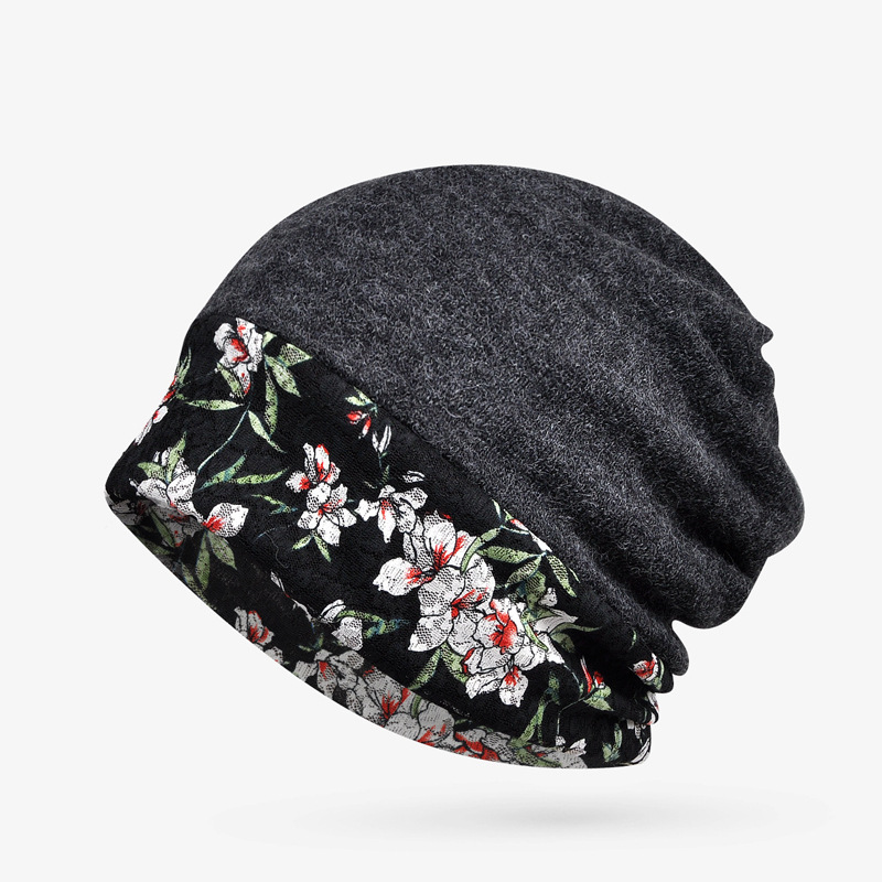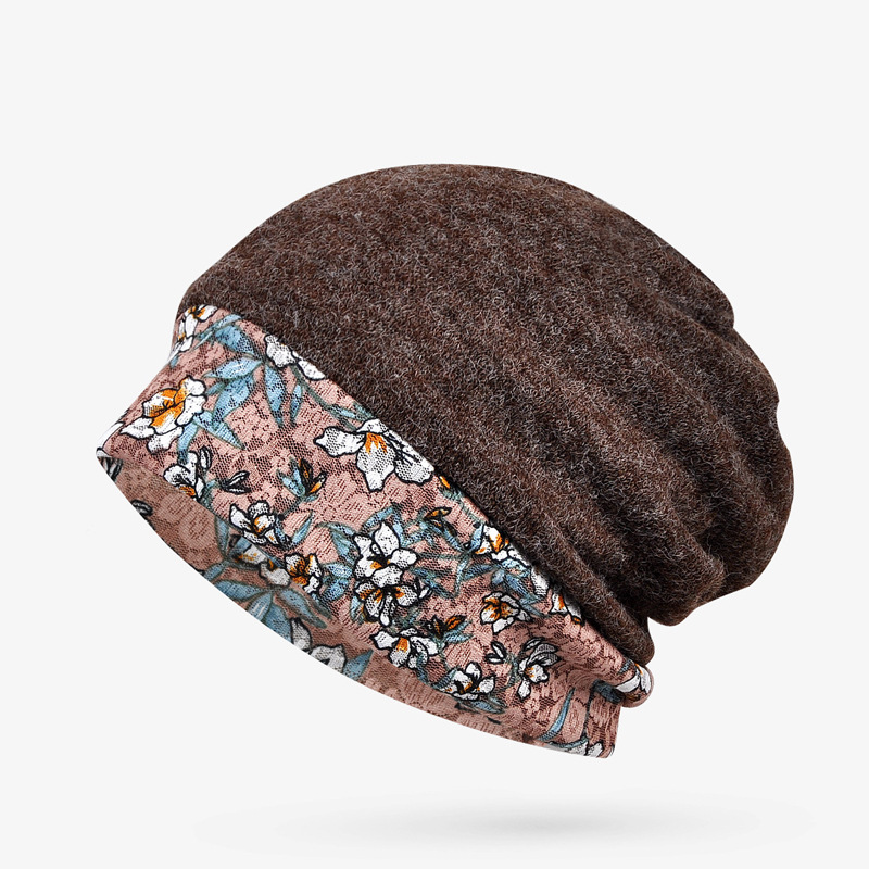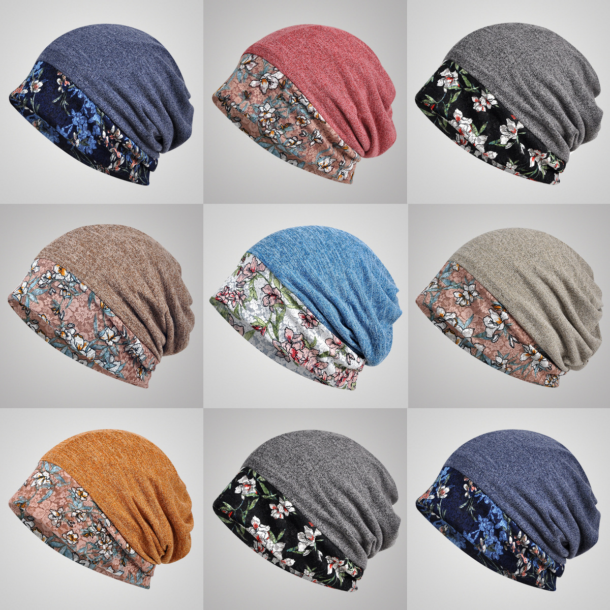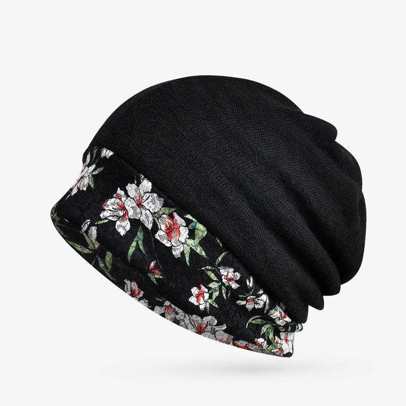 春秋冬季套头帽子围脖两用女款蕾丝拼接时尚百搭包头帽堆堆月子帽