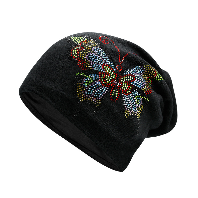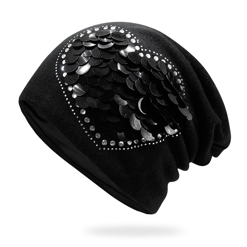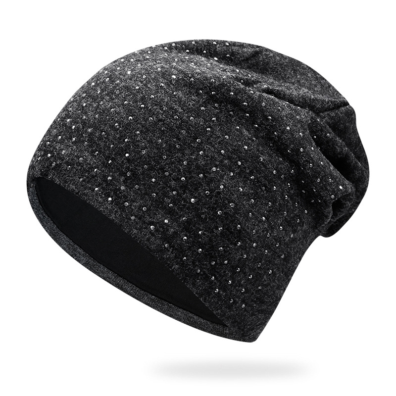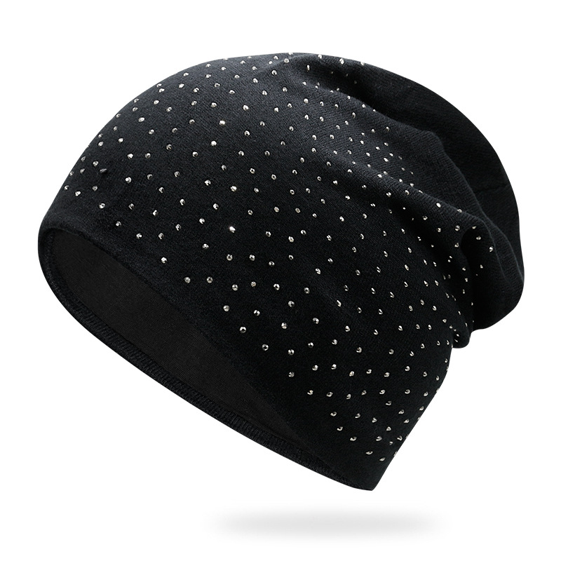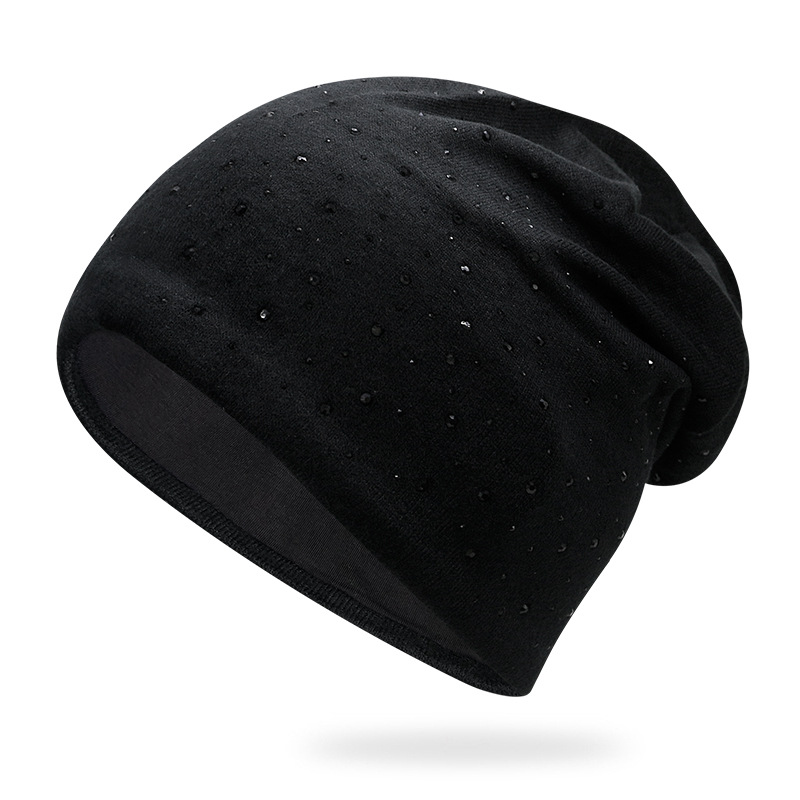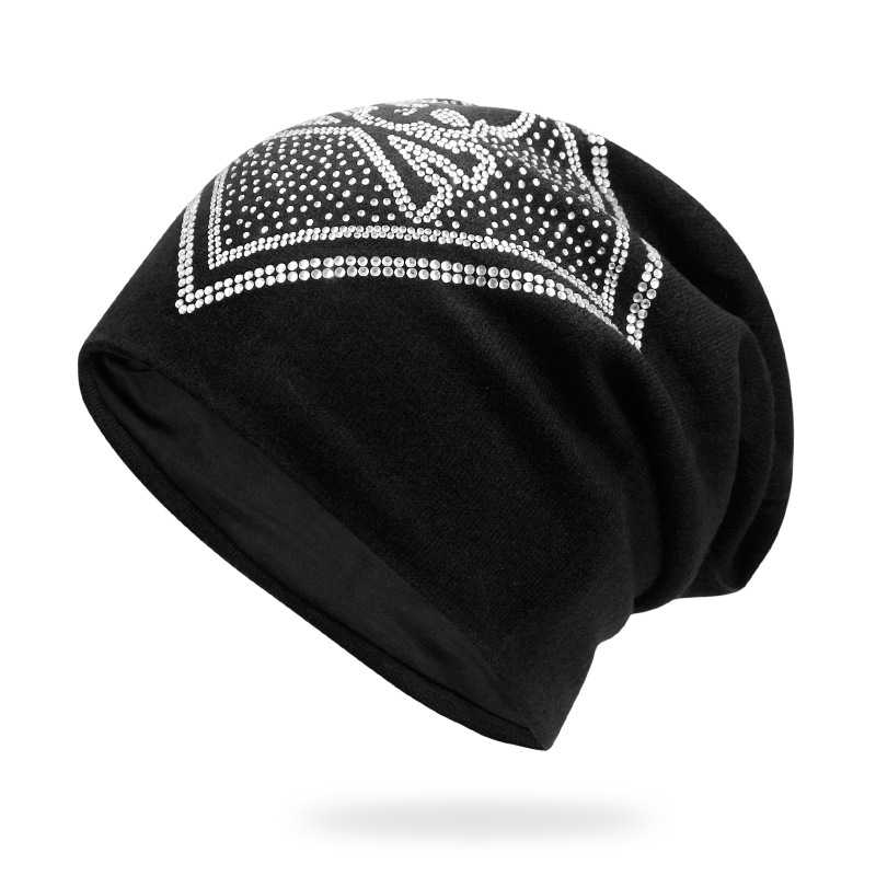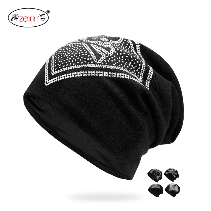 欧美风秋冬鬼头烫钻毛线帽户外保暖头巾帽男女套头帽防风包头帽