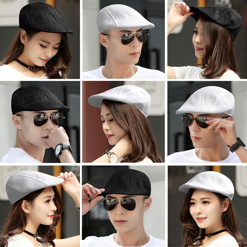 春夏季亚麻透气贝雷帽子男女户外太阳帽防晒遮阳帽文艺复古鸭舌帽