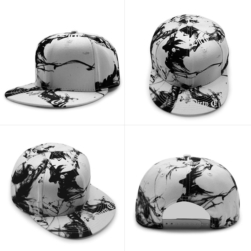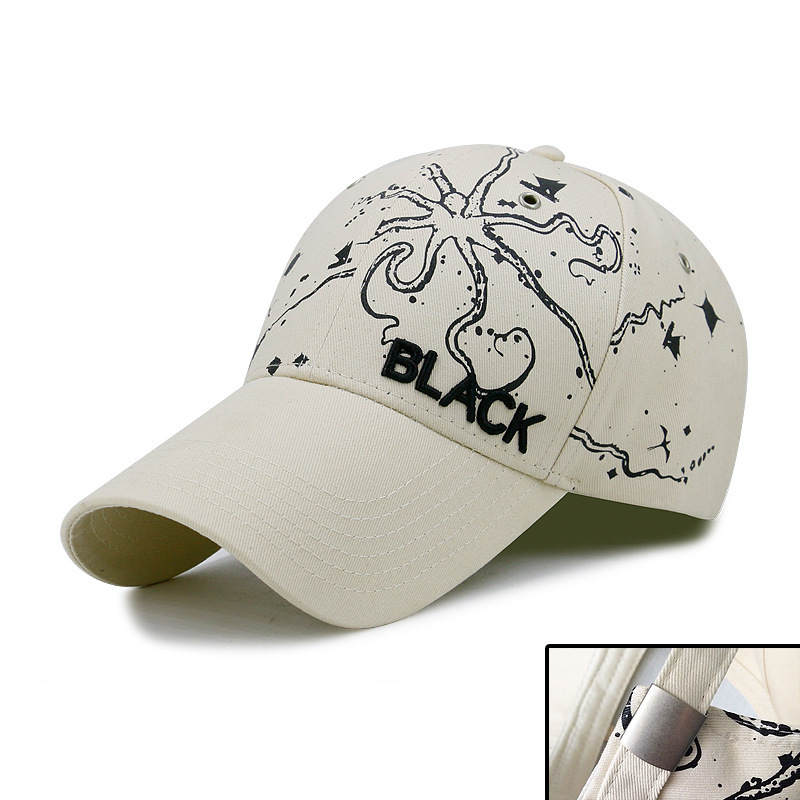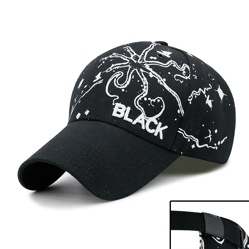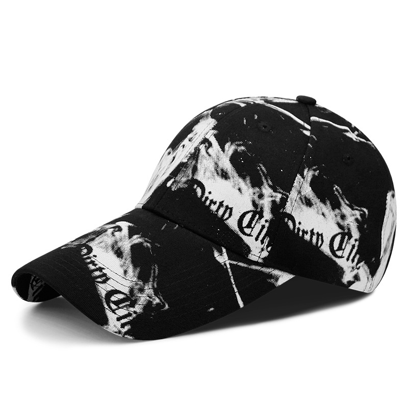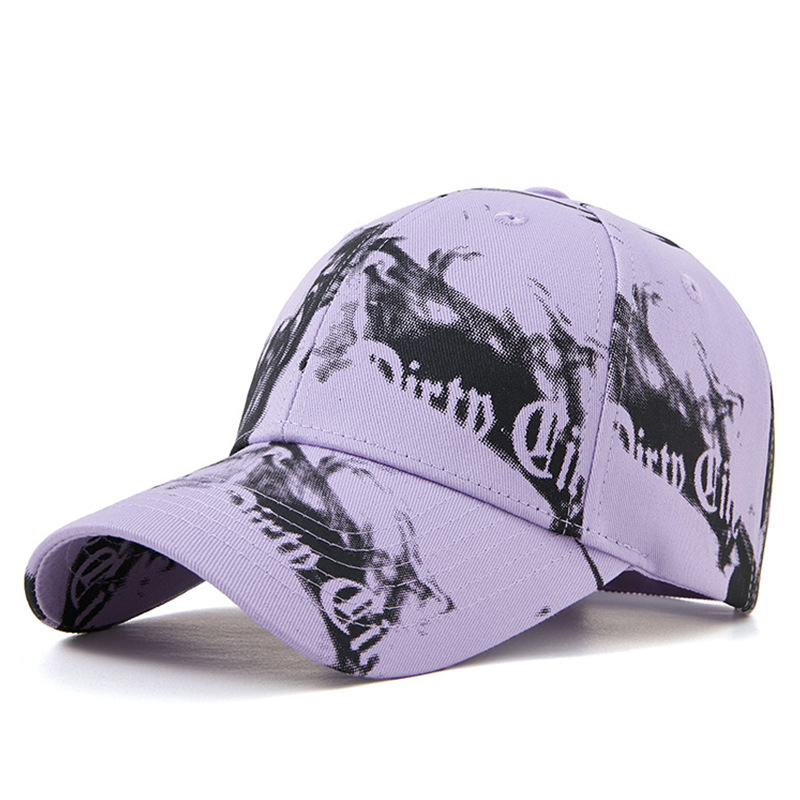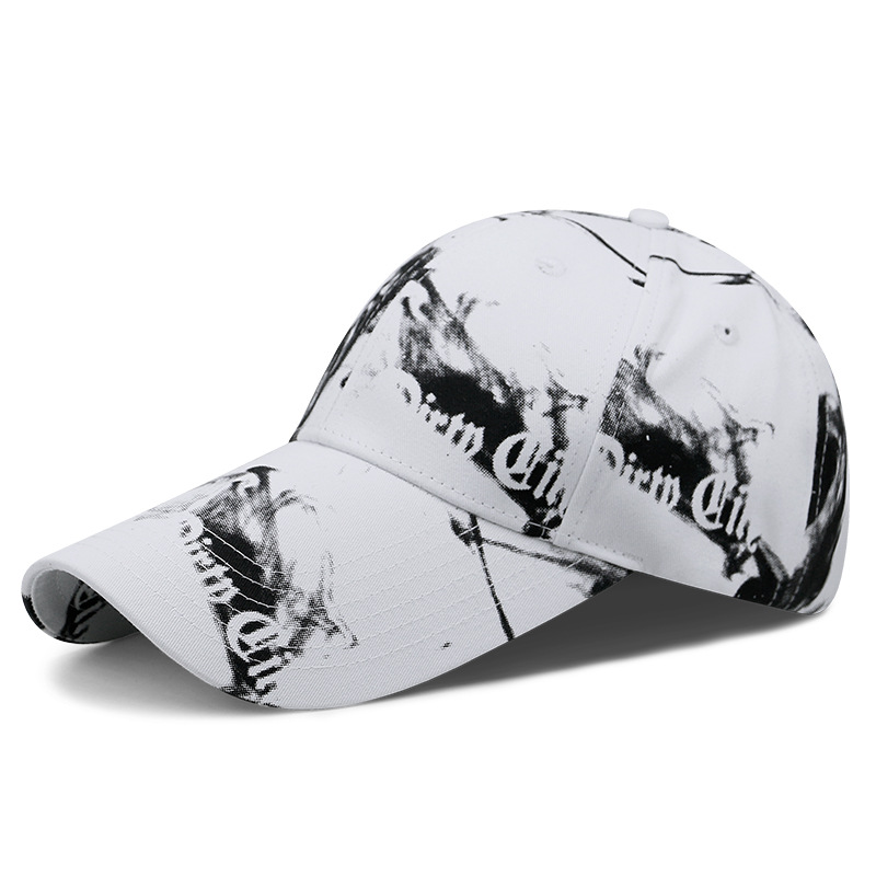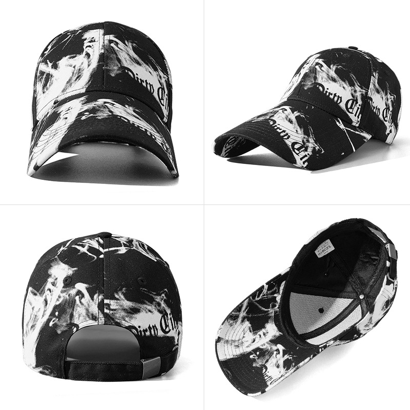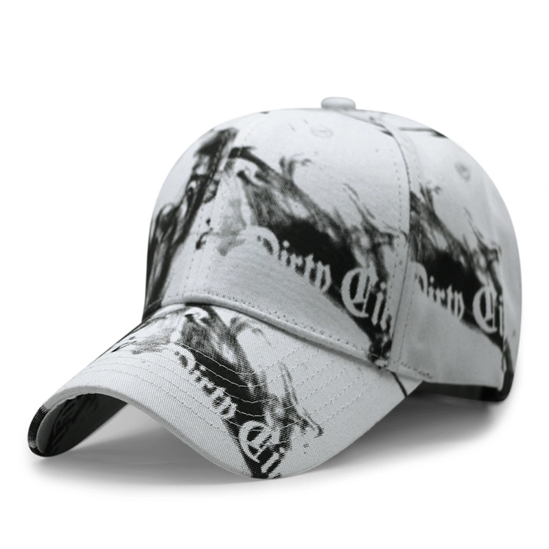 烟雾印花硬顶棉质棒球帽子男女韩版涂鸦长檐鸭舌帽休闲防晒遮阳帽