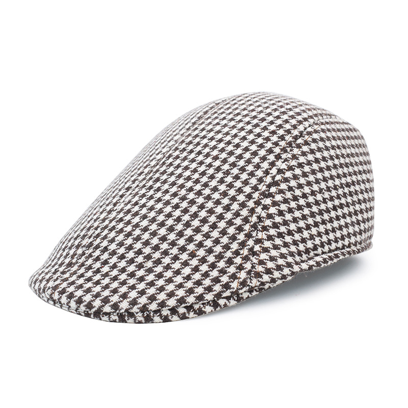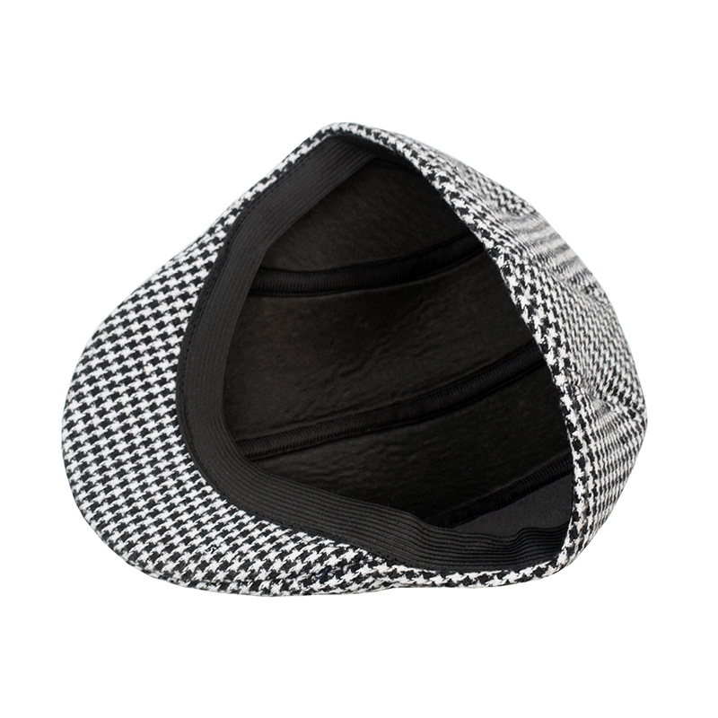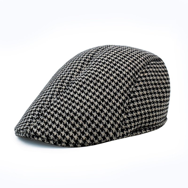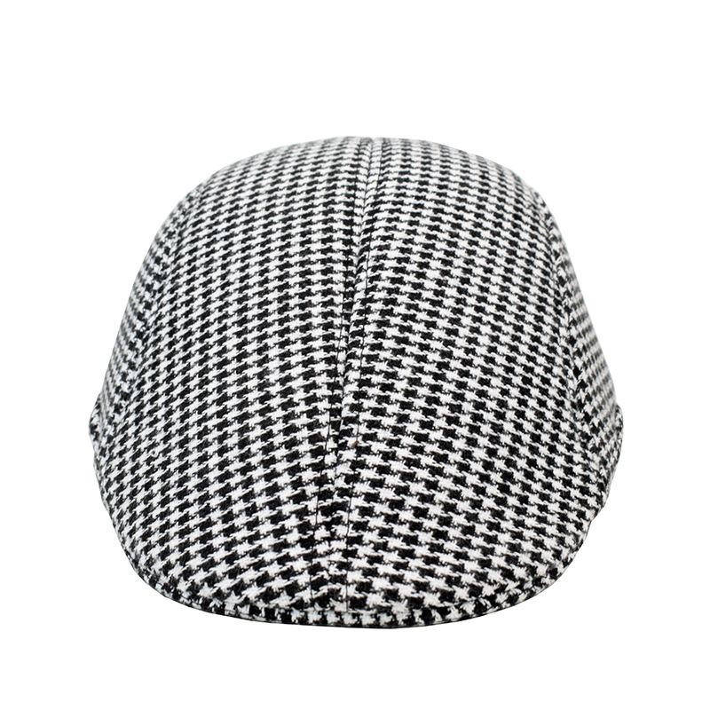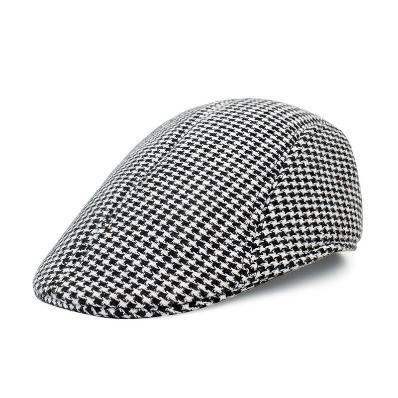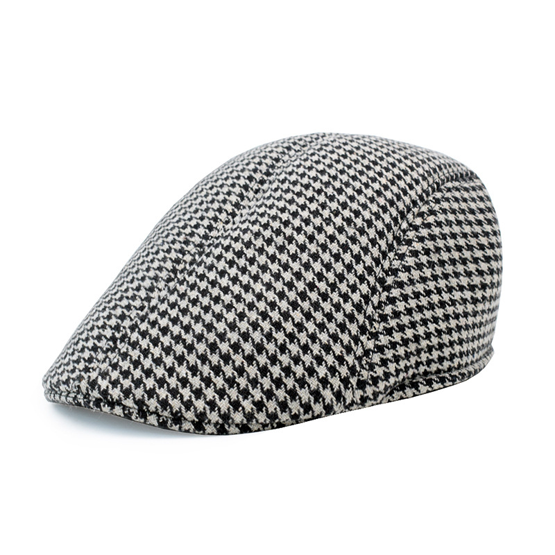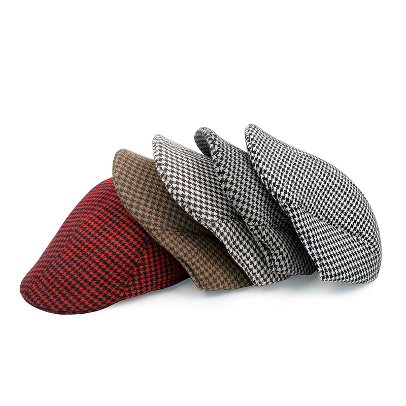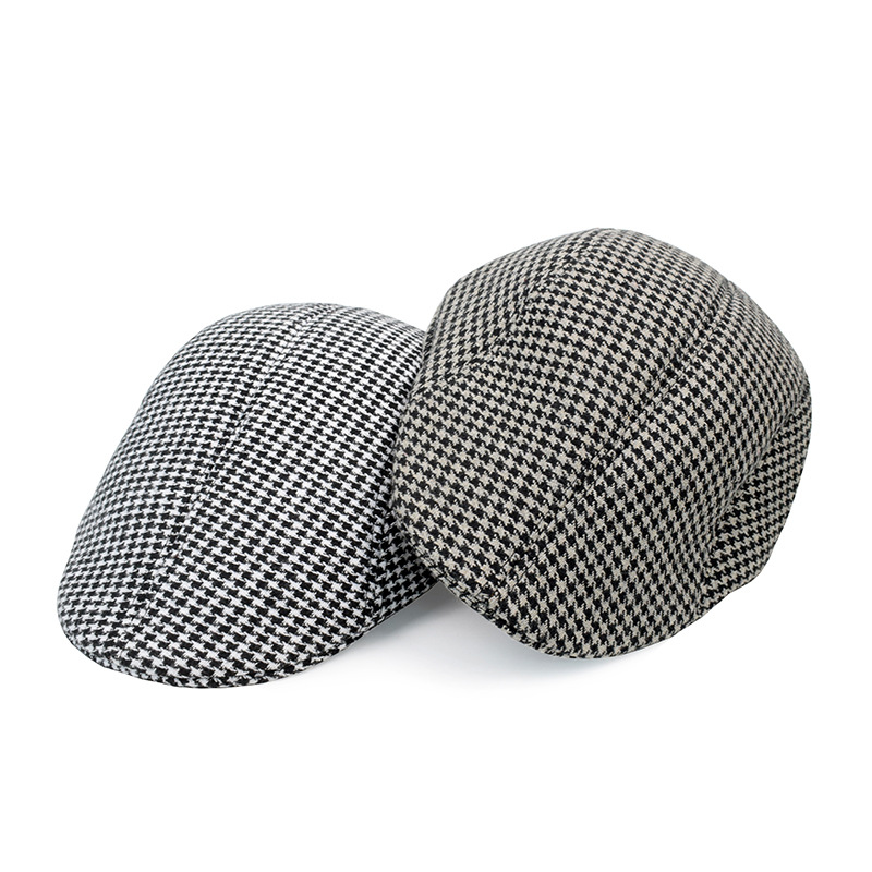 跨境格子毛呢贝雷帽英伦保暖帽子韩版休闲帽复古时尚鸭舌帽男复古