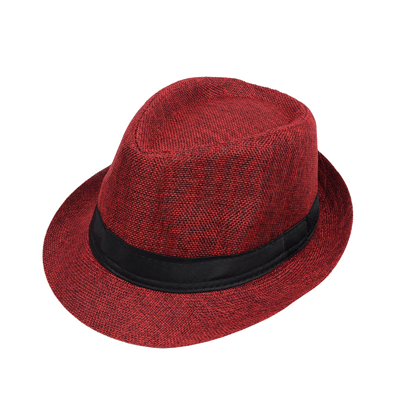 跨境男女爵士帽英伦风亚麻纯色礼帽中老年卷边情侣款遮阳透气网帽