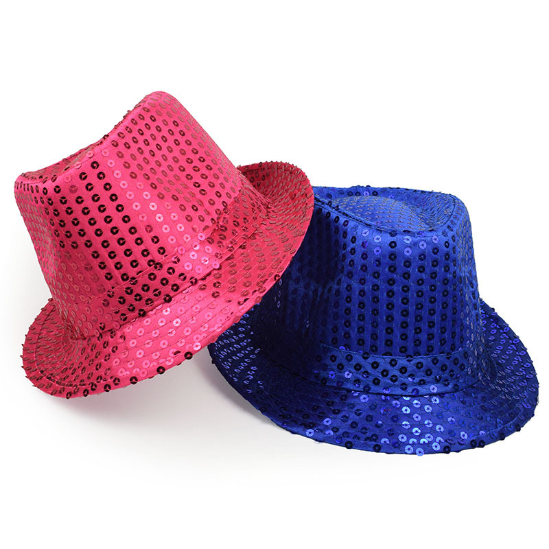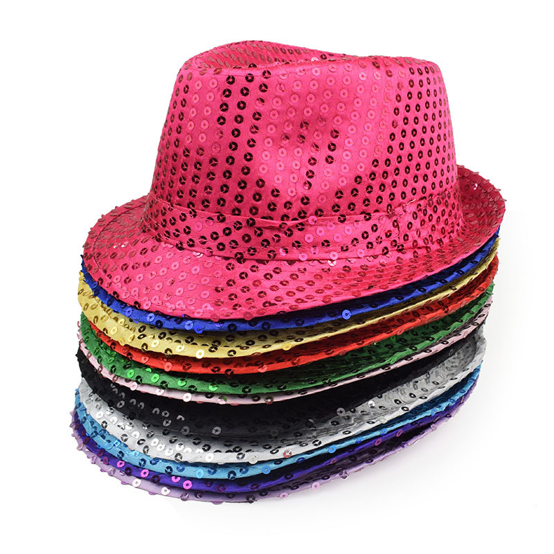 外贸欧美亮片卷边小礼帽男女时尚休闲舞会爵士帽喜庆活动表演帽