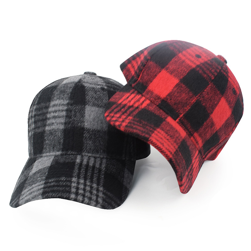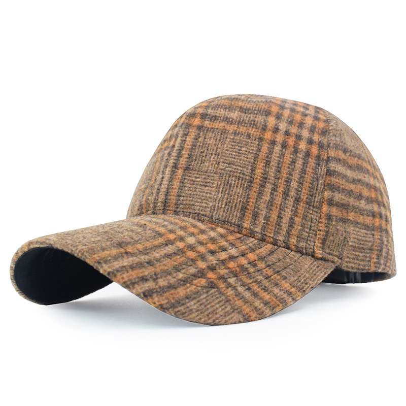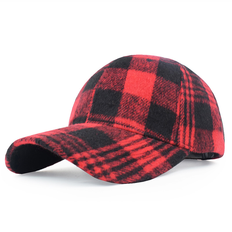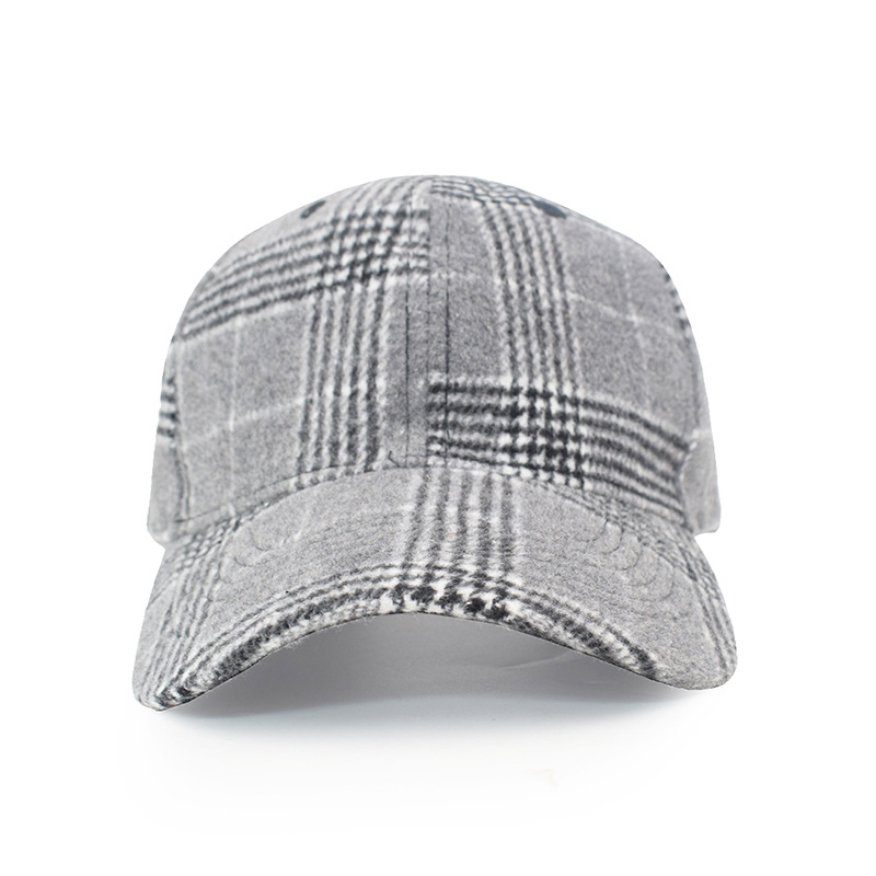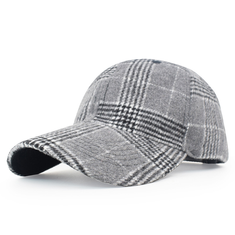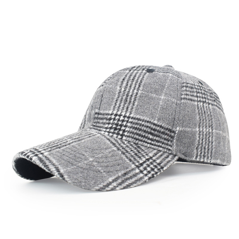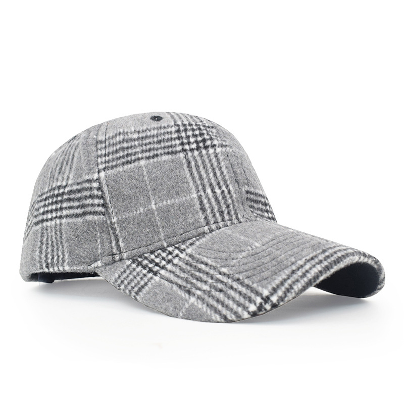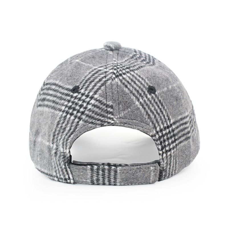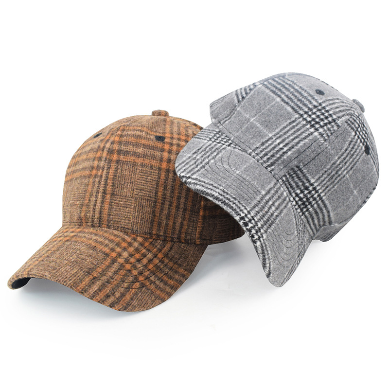欧美格子毛呢棒球帽女秋冬男士保暖鸭舌帽跨境新款时尚魔术贴帽子