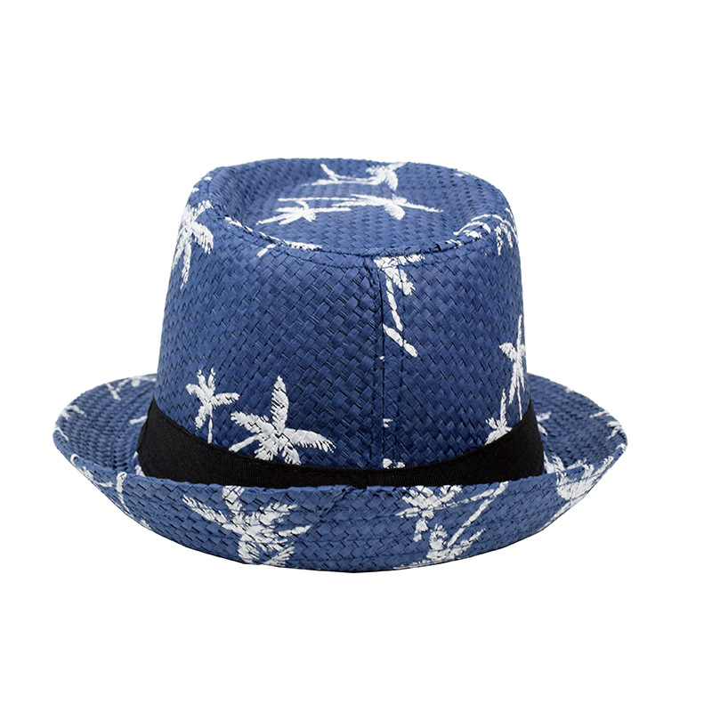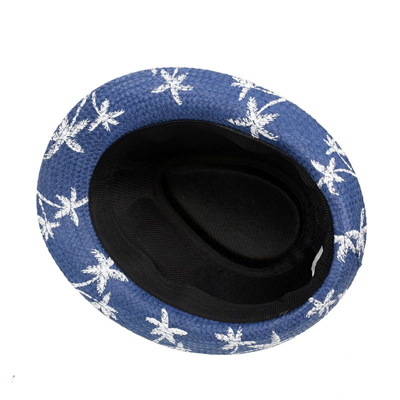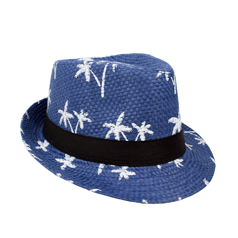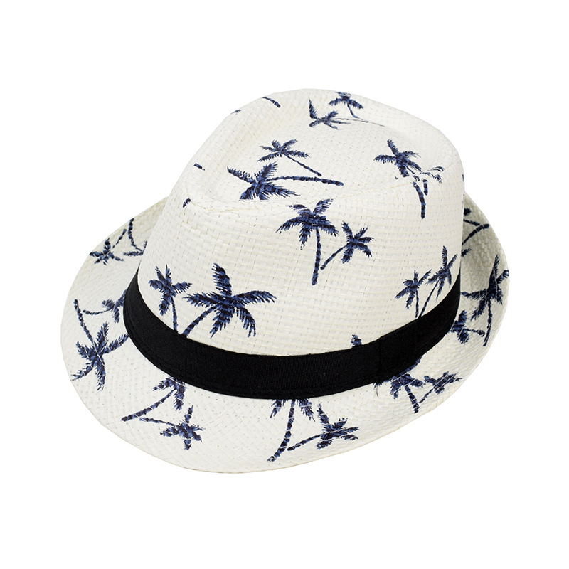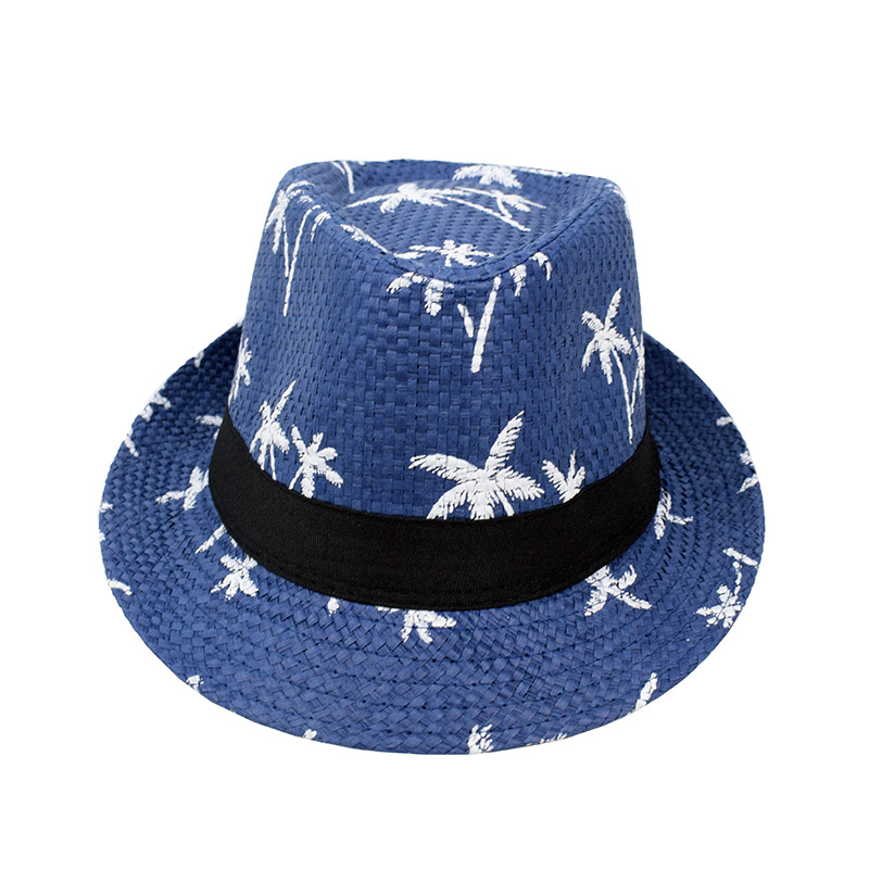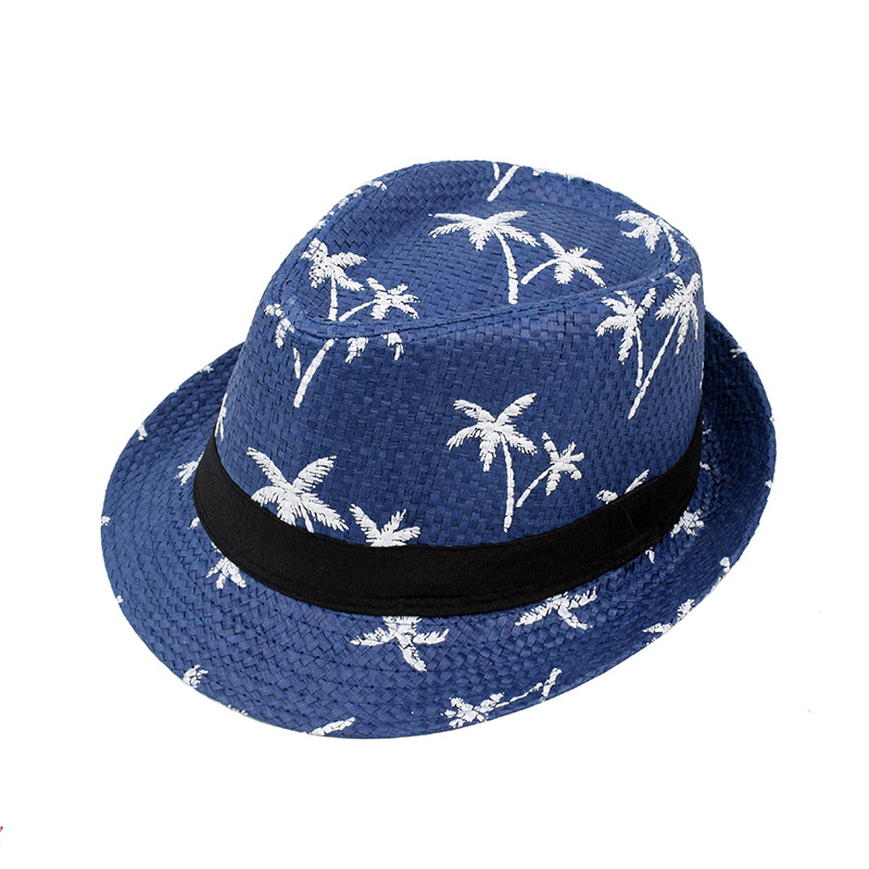 欧美热销礼帽男小檐纸草爵士帽夏季草编遮阳椰子树印刷沙滩防晒帽