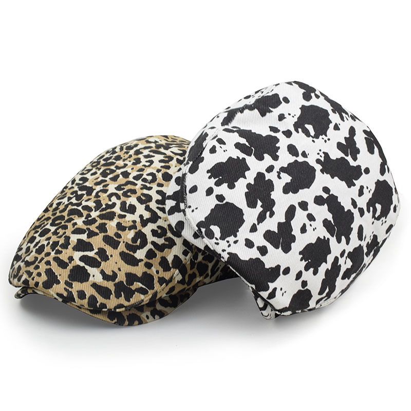 欧美豹纹前进帽复古潮搭贝雷帽女士时尚网红报童帽亚马逊跨境外贸