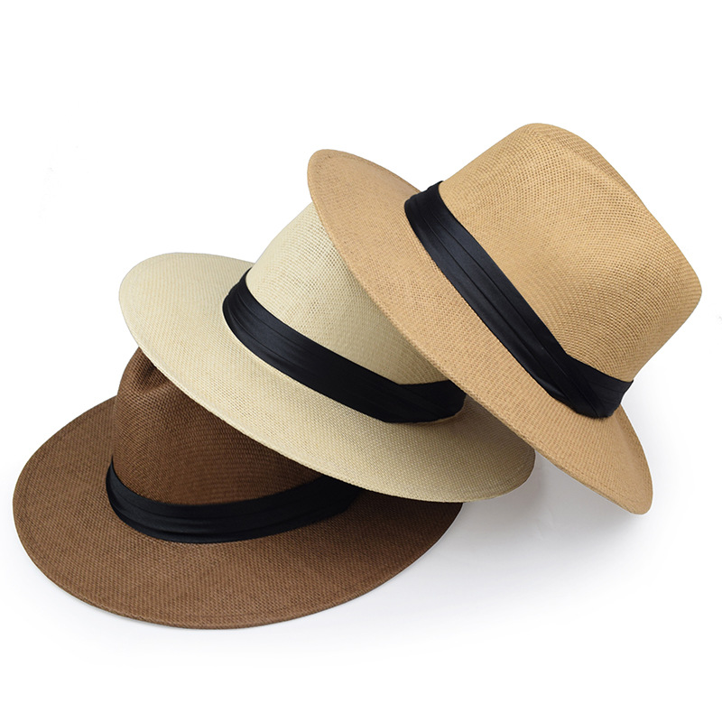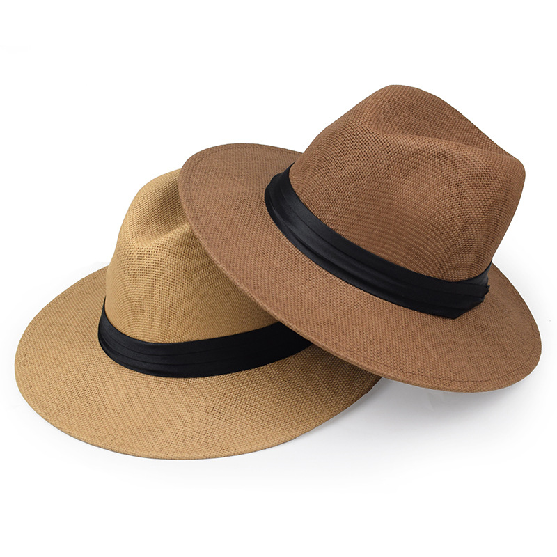 春夏大檐草帽海边旅游透气凉帽沙滩遮阳帽休闲爵士帽子爸爸钓鱼帽