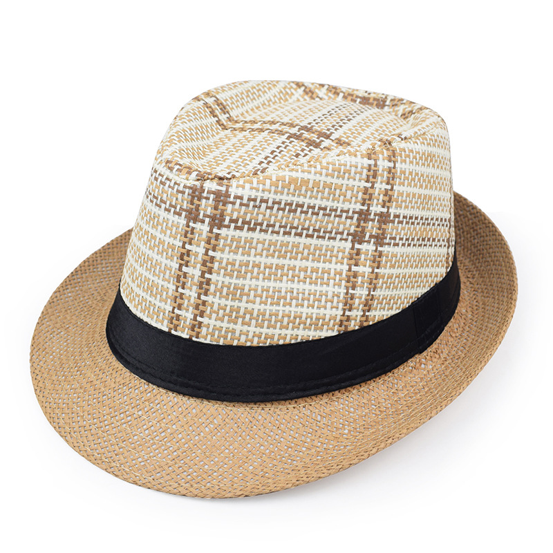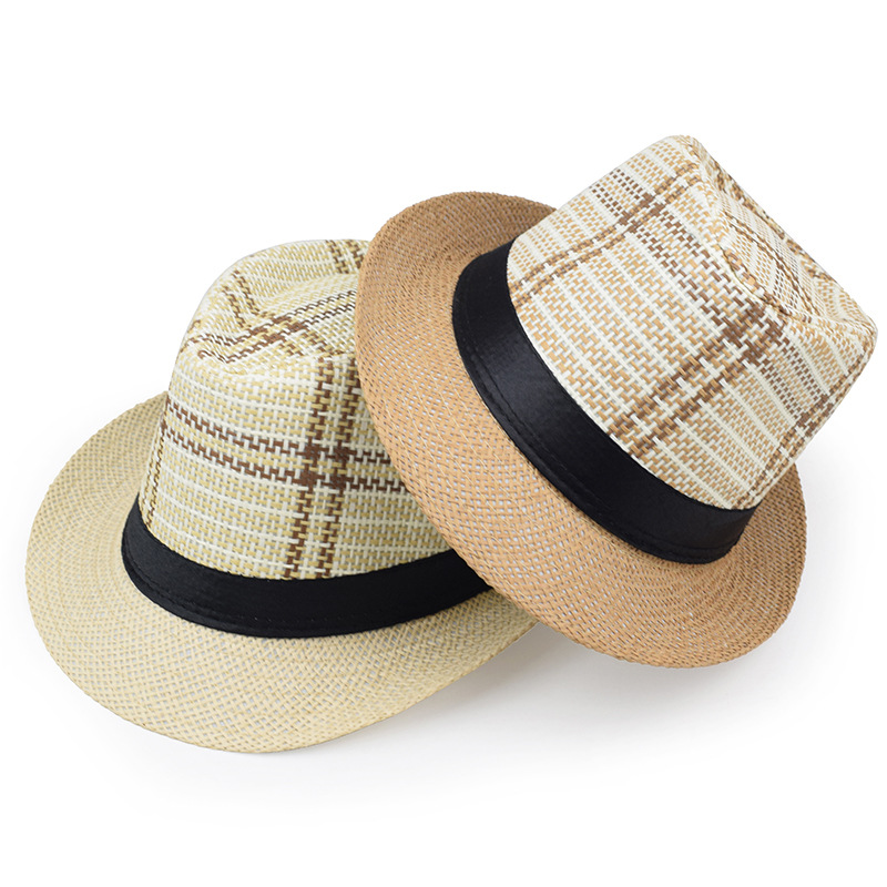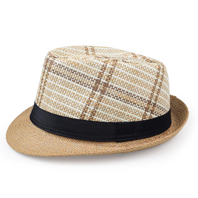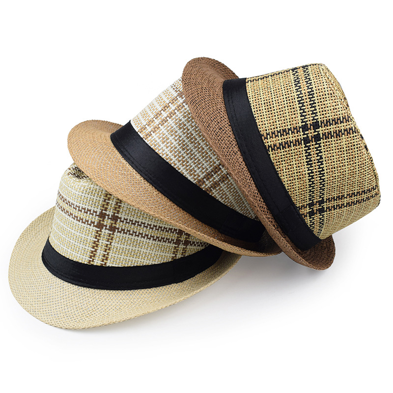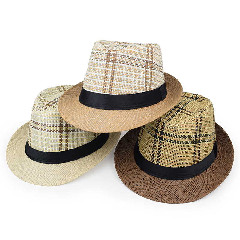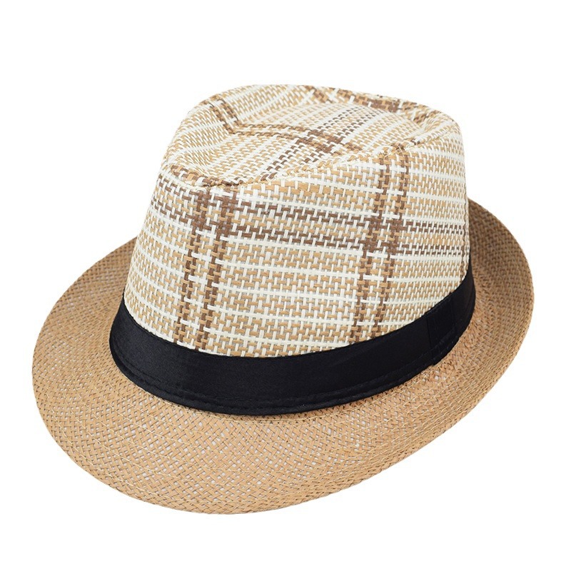 复古英伦爵士帽中老年人草帽户外遮阳休闲百搭男士格纹礼帽亚马逊