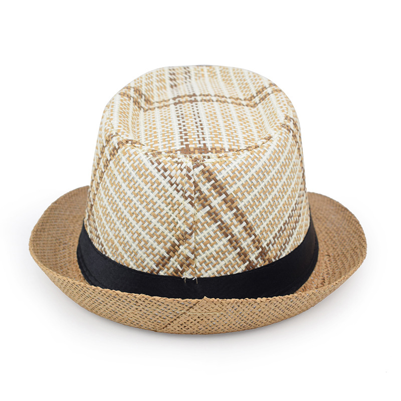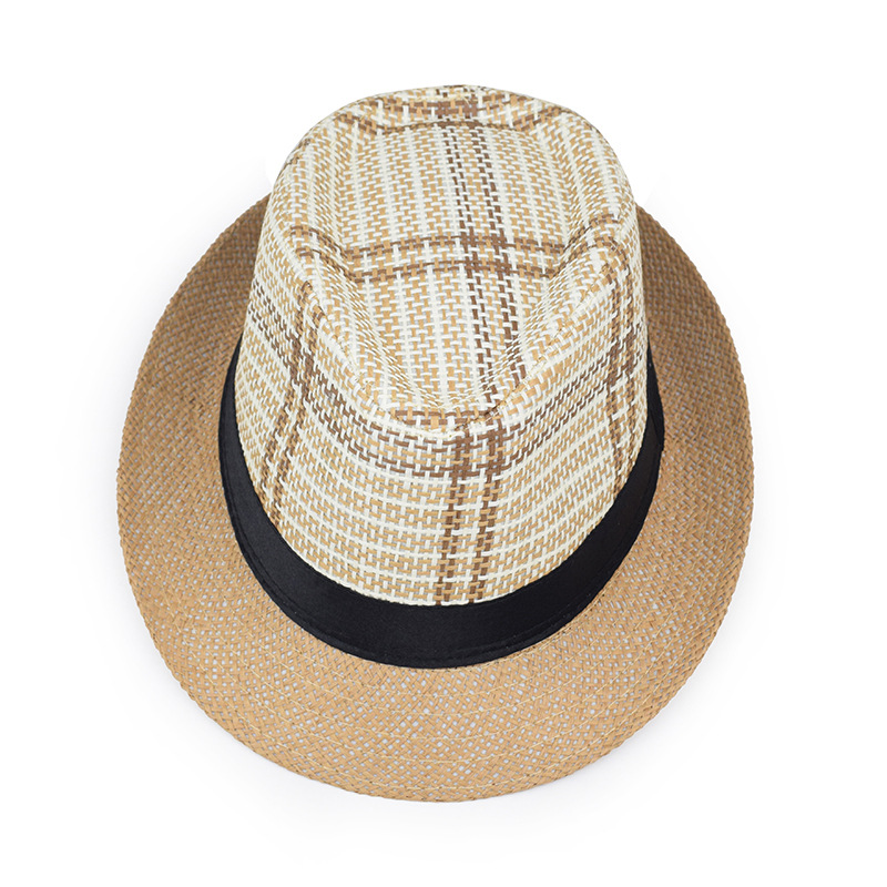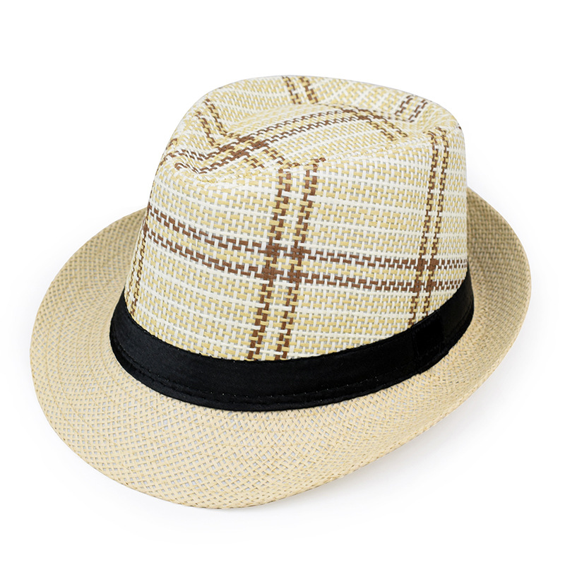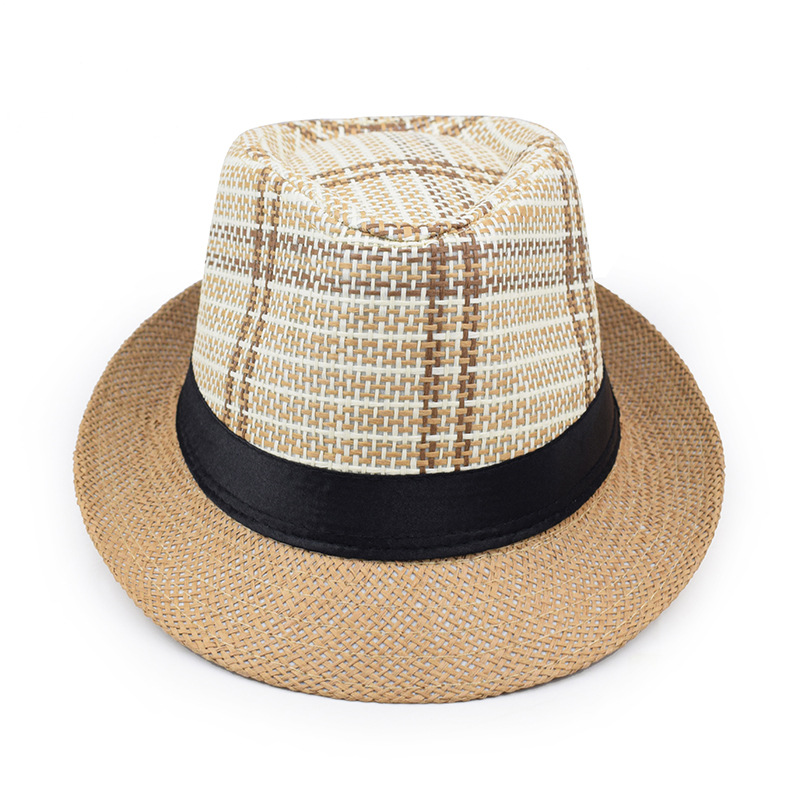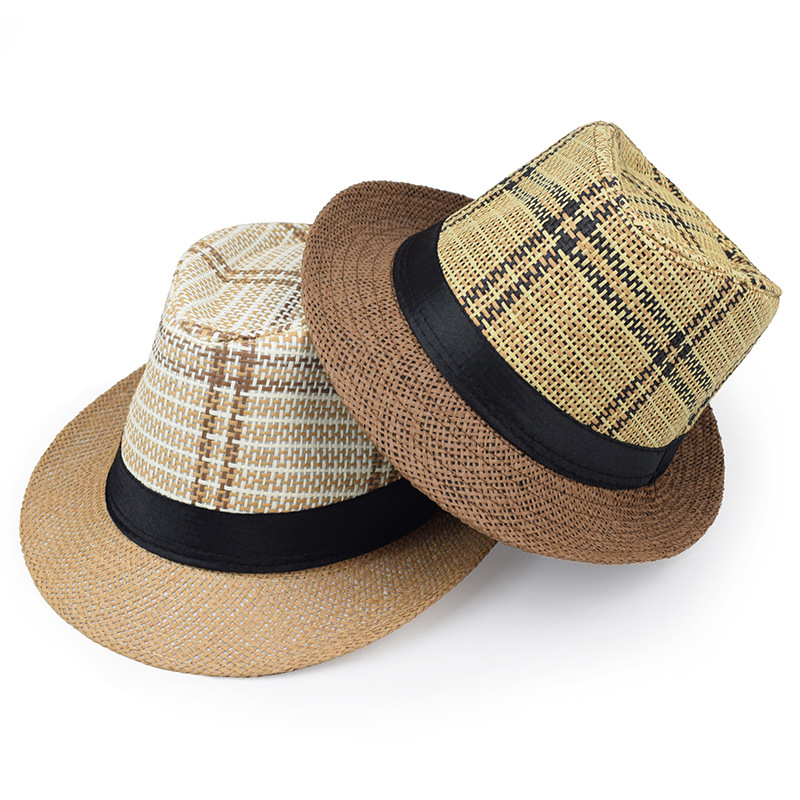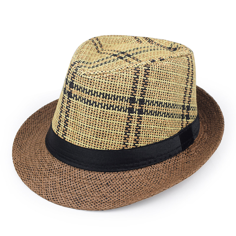 复古英伦爵士帽中老年人草帽户外遮阳休闲百搭男士格纹礼帽亚马逊