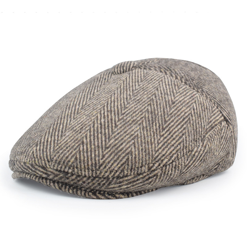 帽子男冬天户外爸爸格纹鸭舌帽中老年人毛呢帽保暖老人护耳前进帽